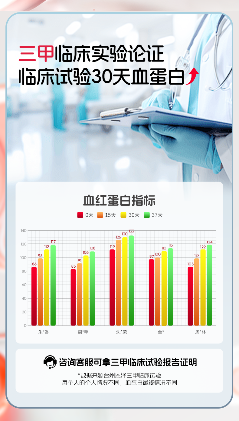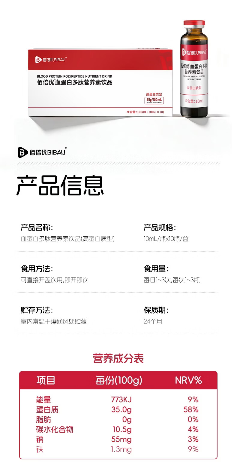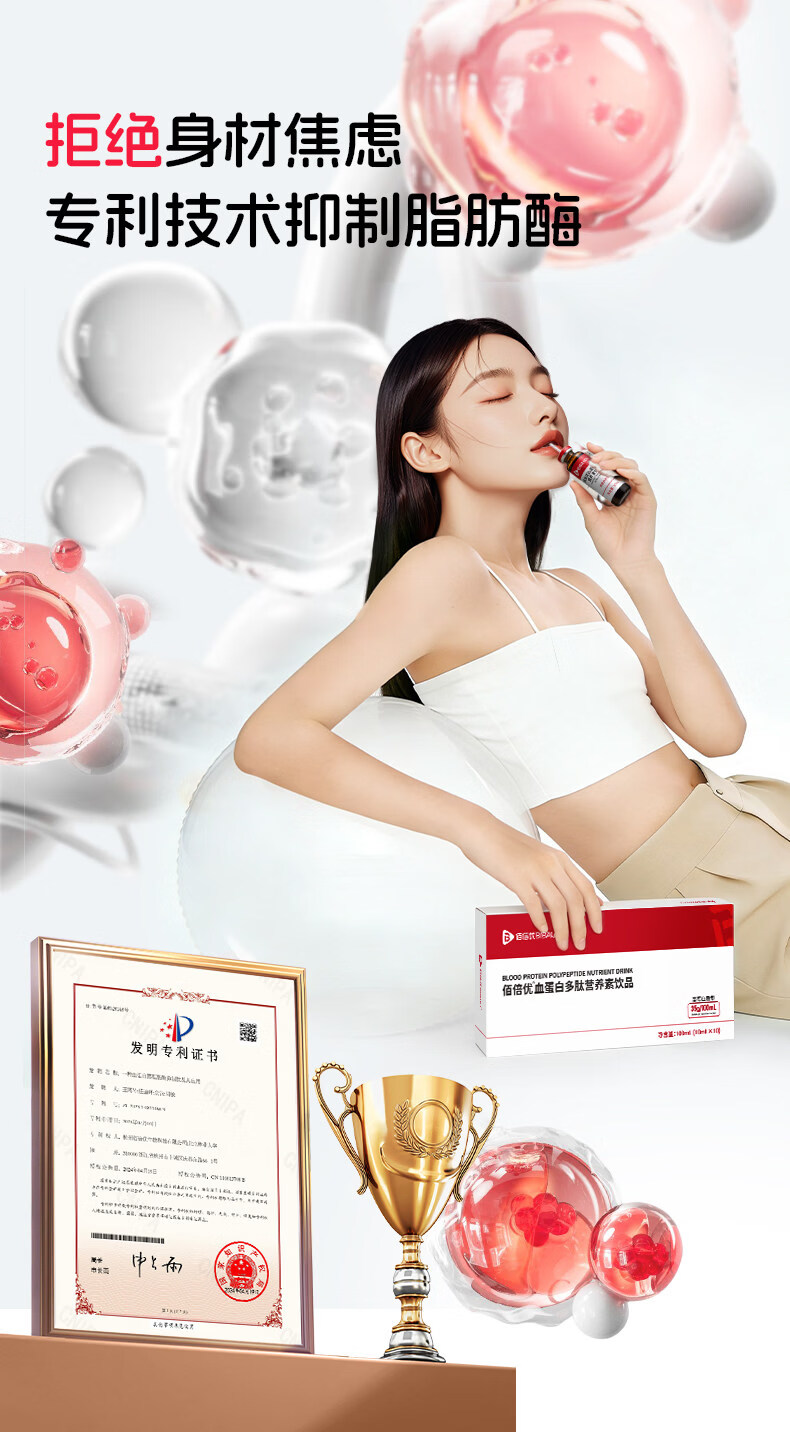 佰倍优临床级补铁补血血蛋白肽 【红润满分】富铁血蛋白肽多肽 10支*4盒