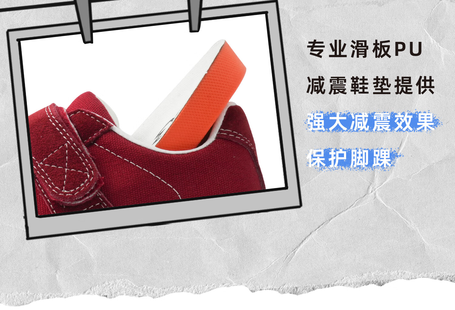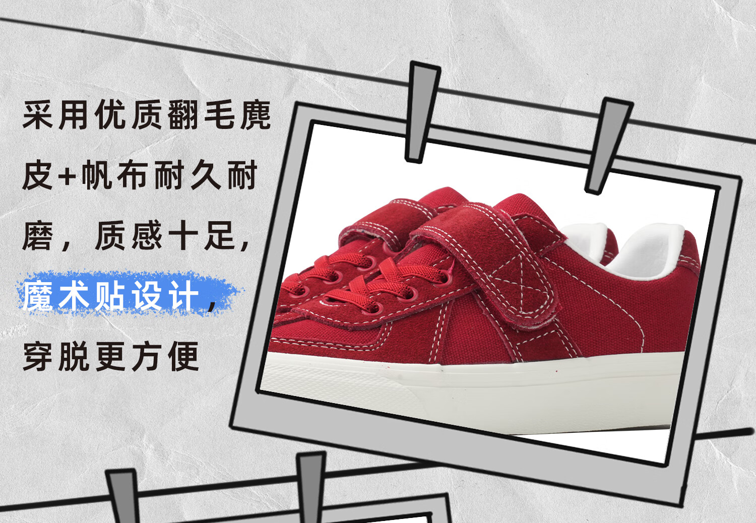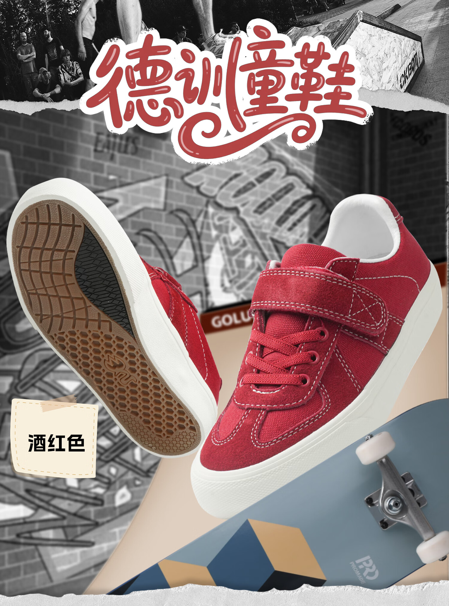 极路客新款儿童德训鞋百搭防滑舒适男童休闲鞋女童魔术贴滑板鞋 酒红色 34