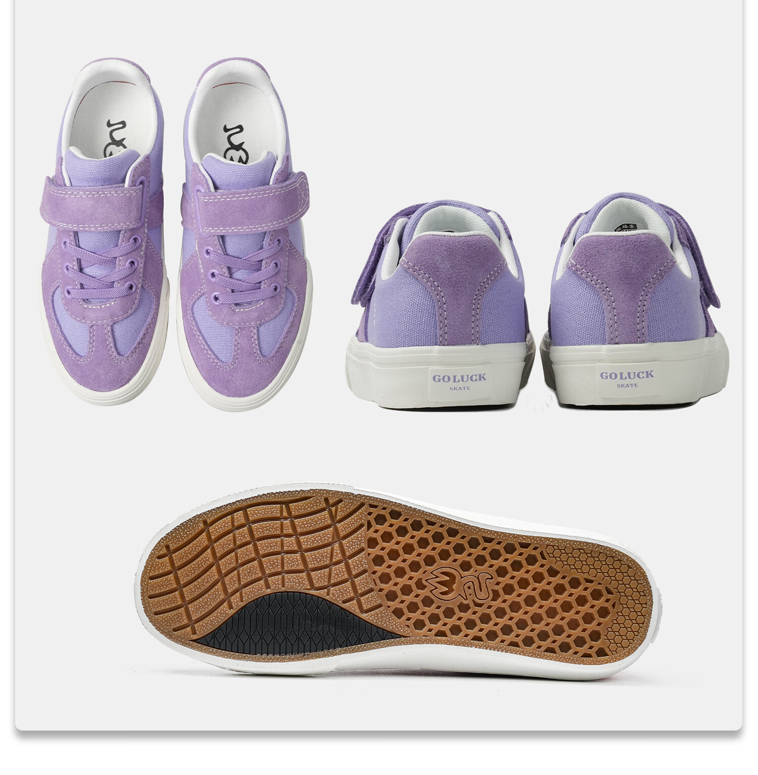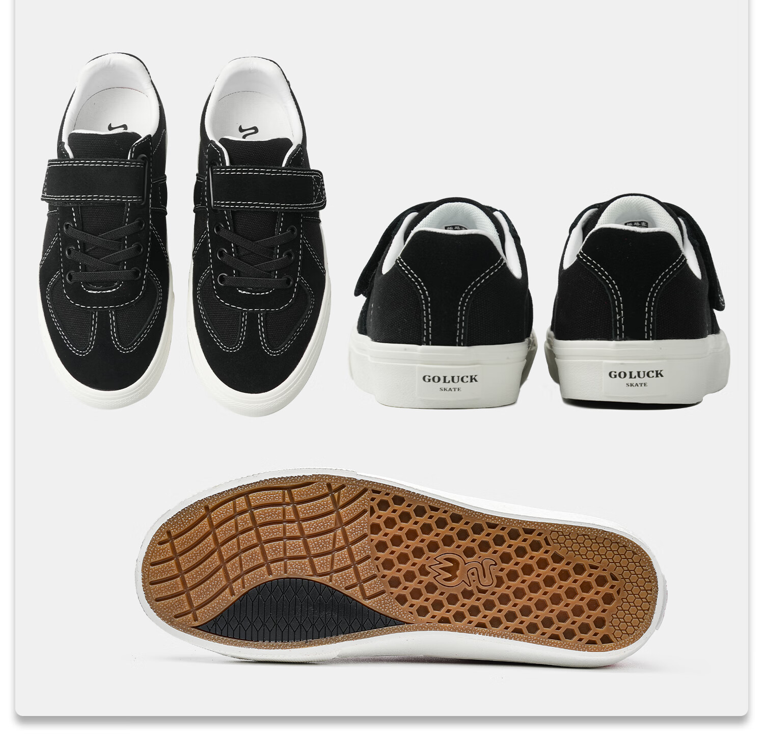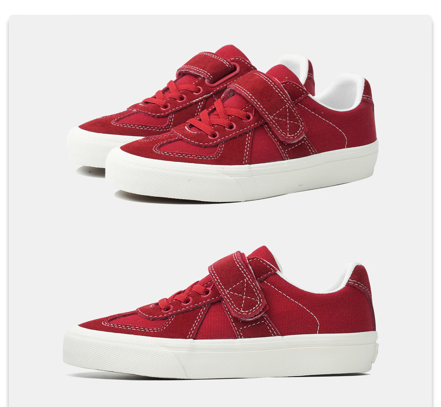 极路客新款儿童德训鞋百搭防滑舒适男童休闲鞋女童魔术贴滑板鞋 酒红色 34