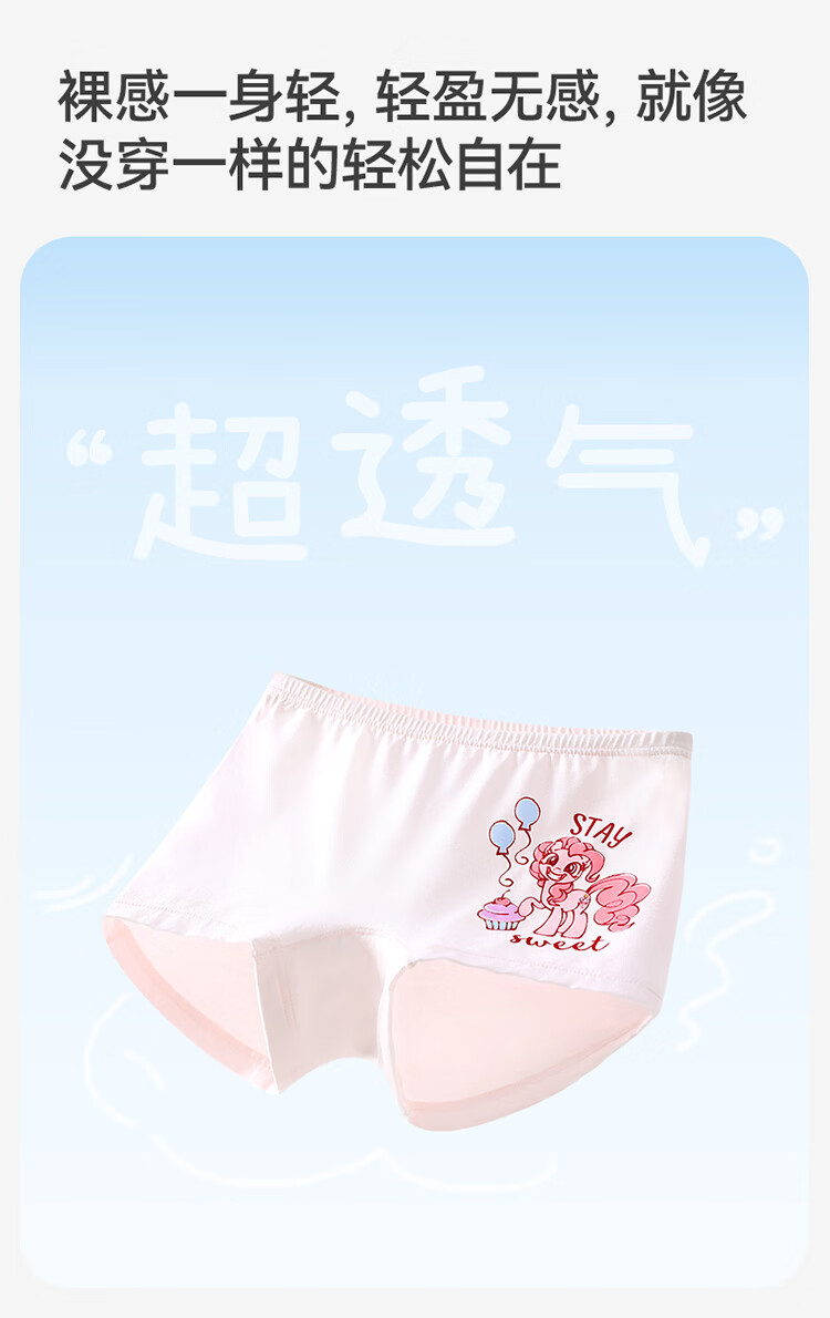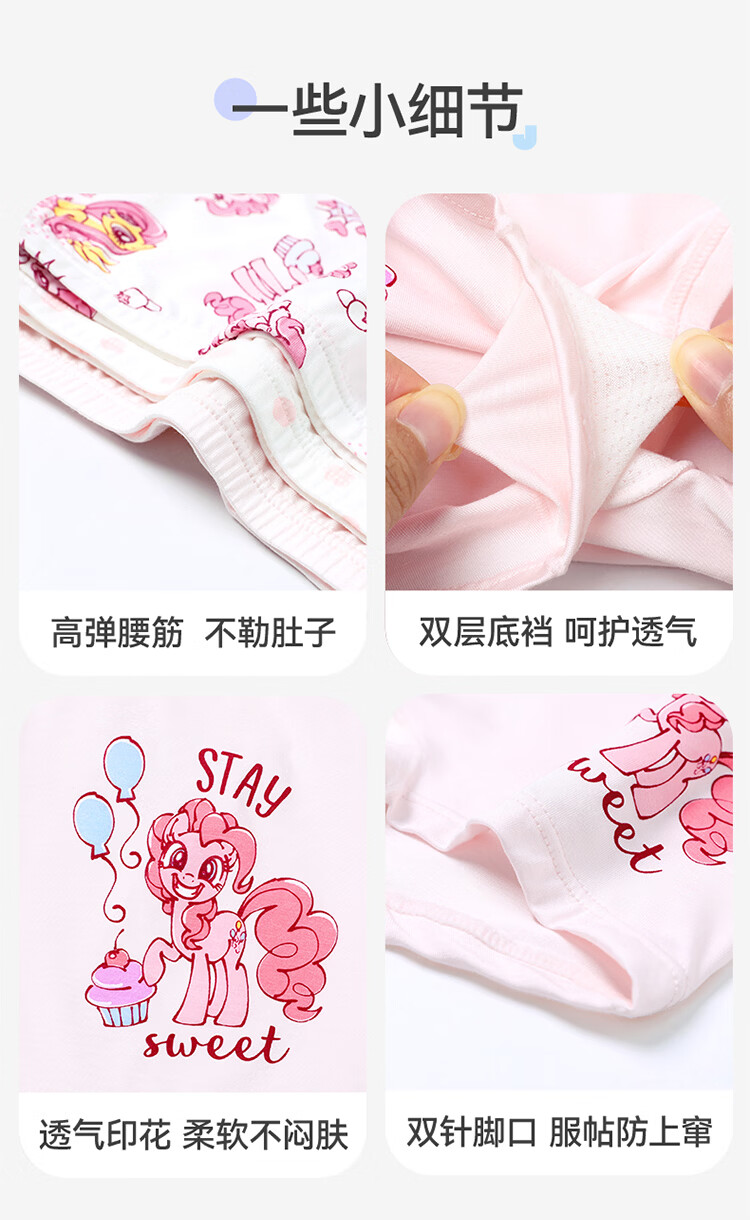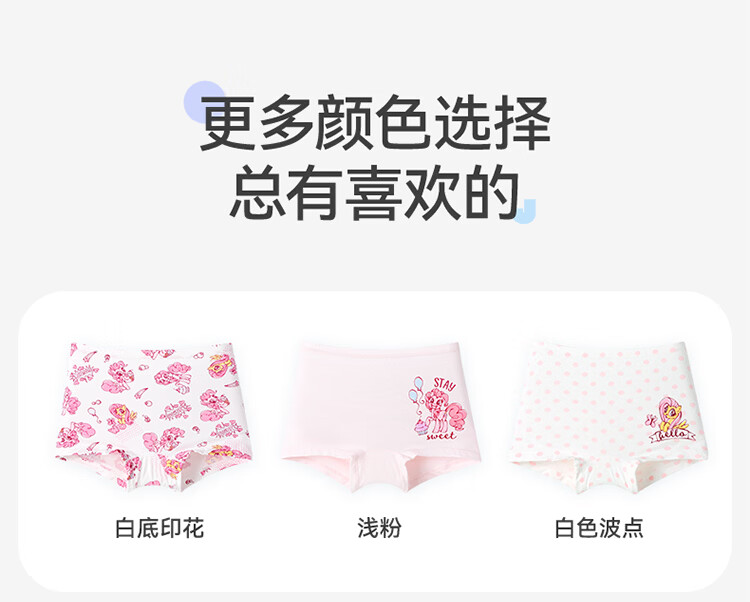 久岁伴26新款小马宝莉联名印花A类女童7A抑菌平角内裤3条透气高弹柔软 联名款平角内裤(女生款) 3条 S (110) 建议身高100-110,体重30-40斤