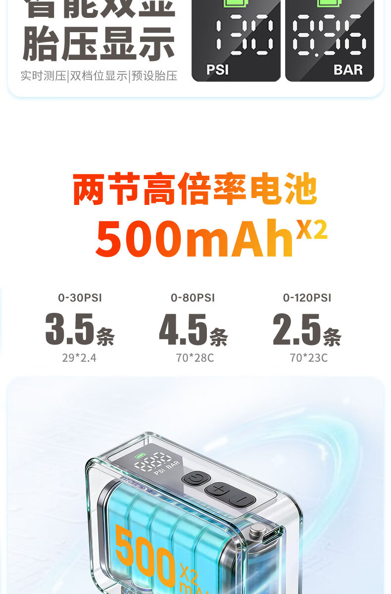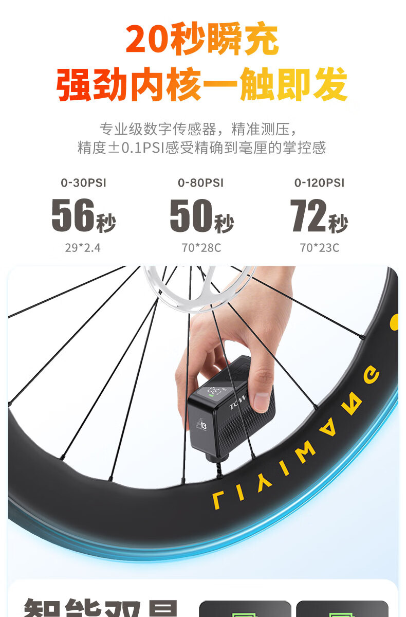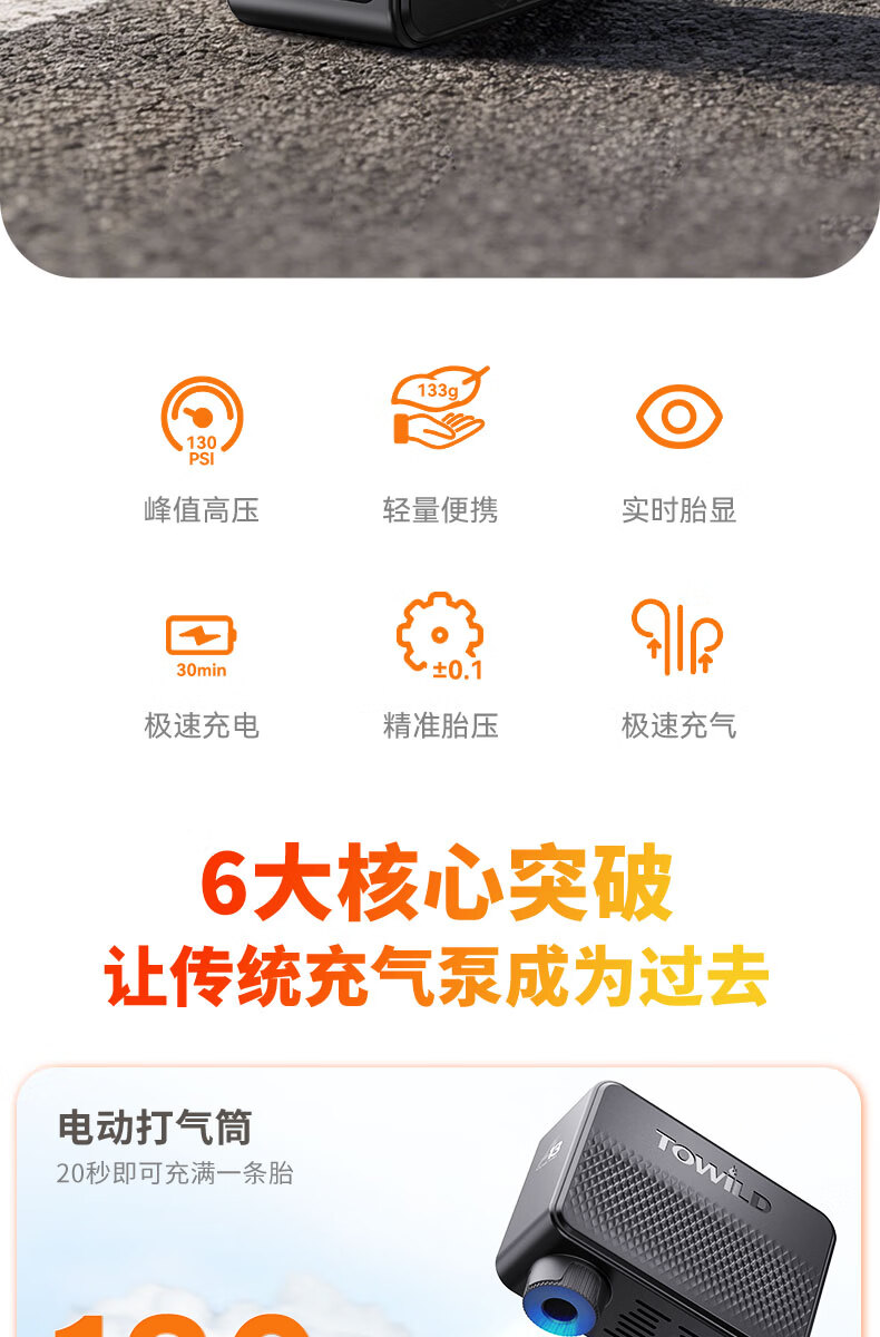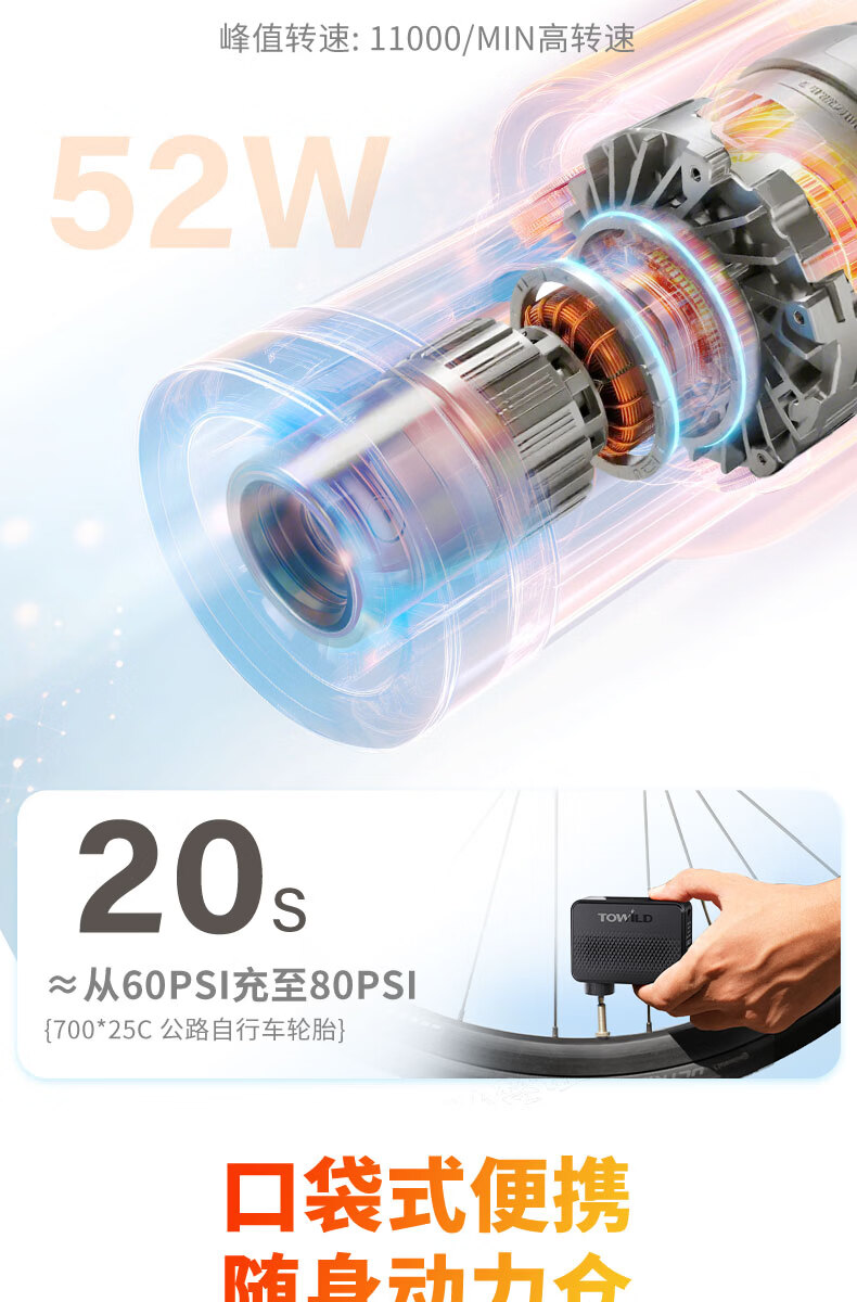 TOWILD拓野A13自行车打气筒电动高压屏显LED便携无线充气泵美法嘴 A13充气泵(含美嘴法嘴气针等)
