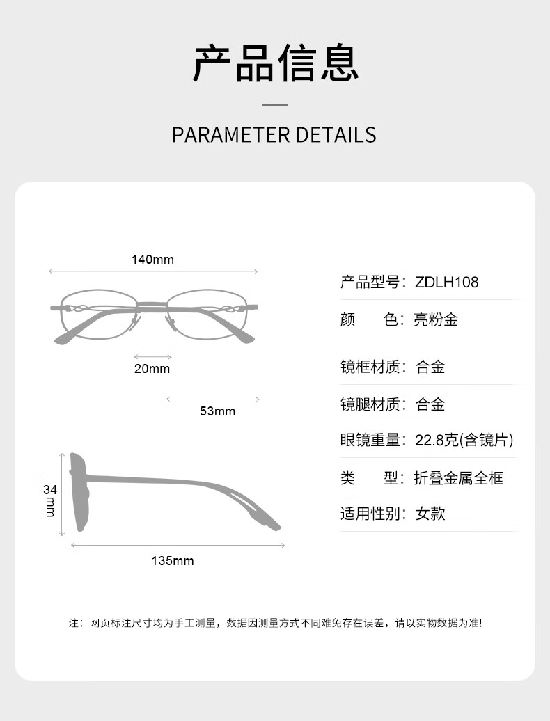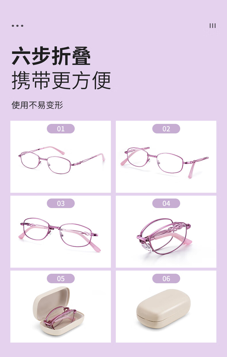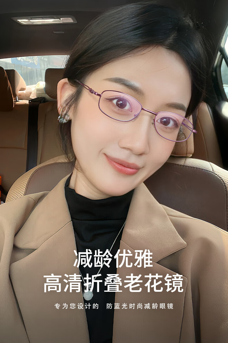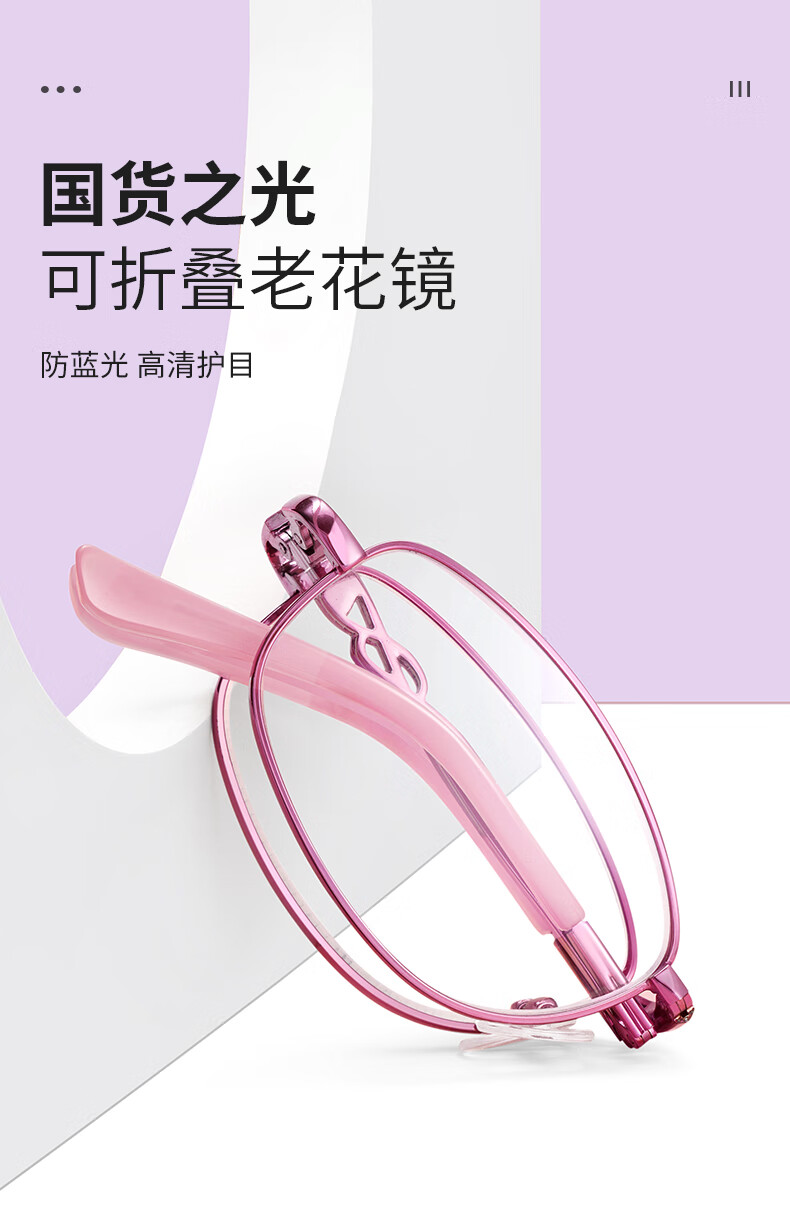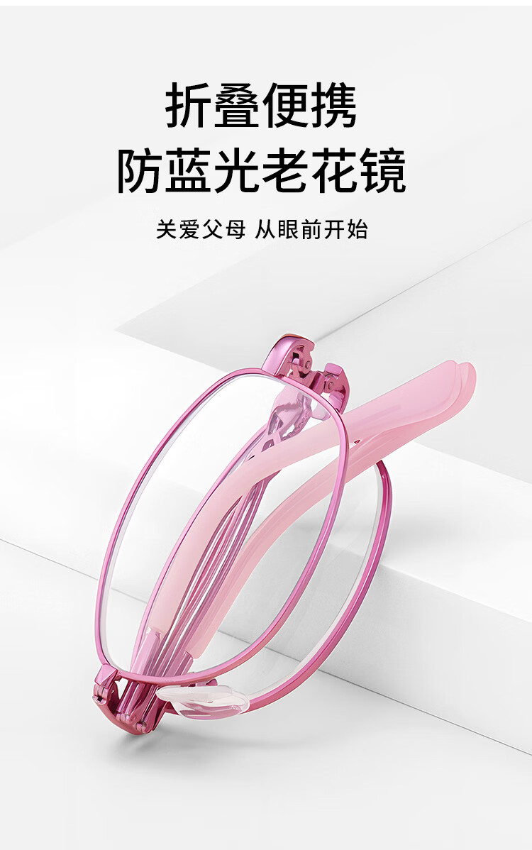 蔡司(ZEISS)折叠老花镜女高清防蓝光超轻便携式时尚显年轻老人老光老花眼镜 粉金框(超显气质) 升级colorein高清防蓝光镜片150度