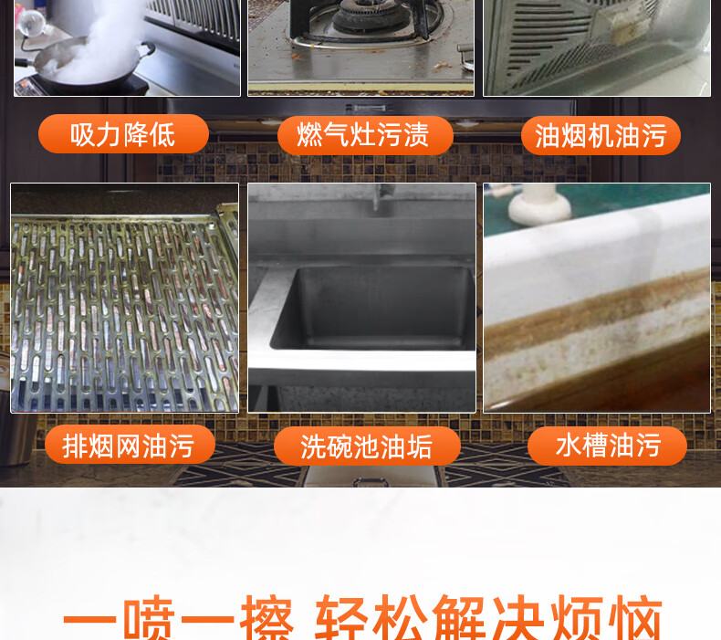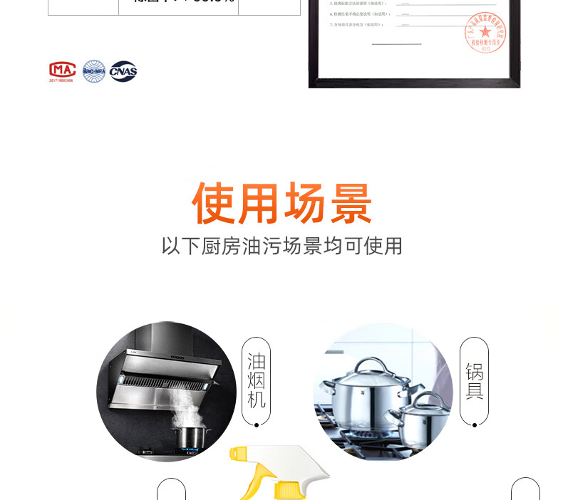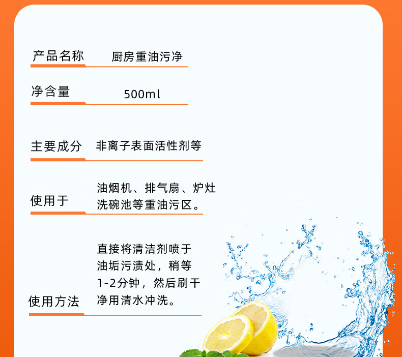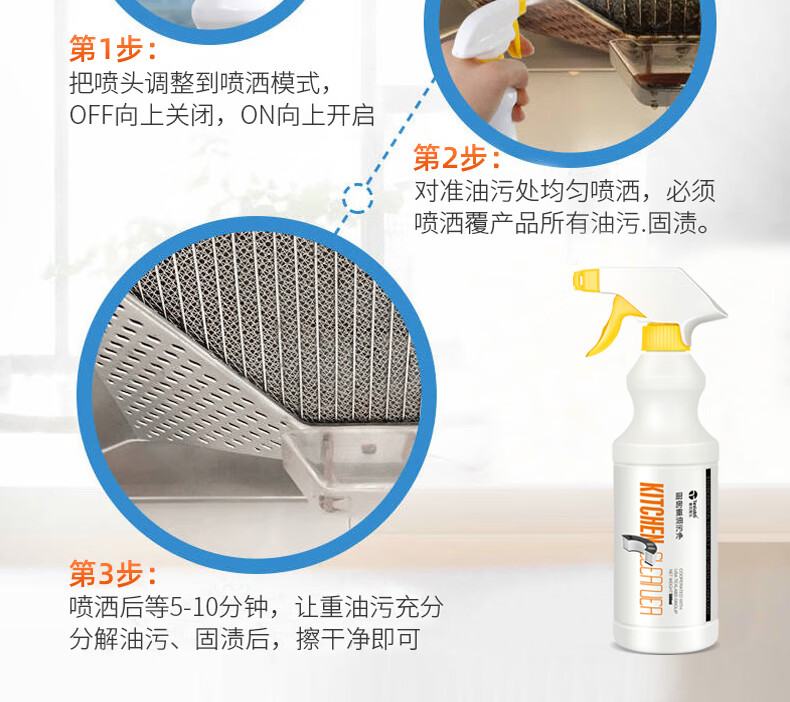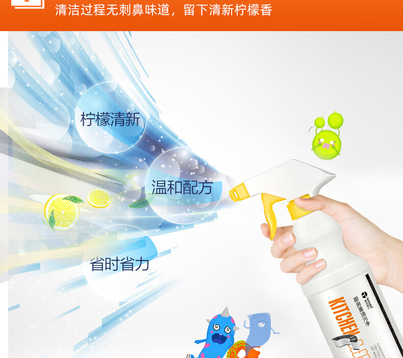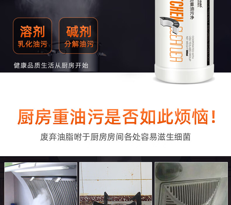 泰克斯乐(Texlabs) 厨房重油污净洗油烟机清洗剂灶台去油污油烟清洁剂除油剂去油剂 重油污清洁500ml(1个喷头) 500g