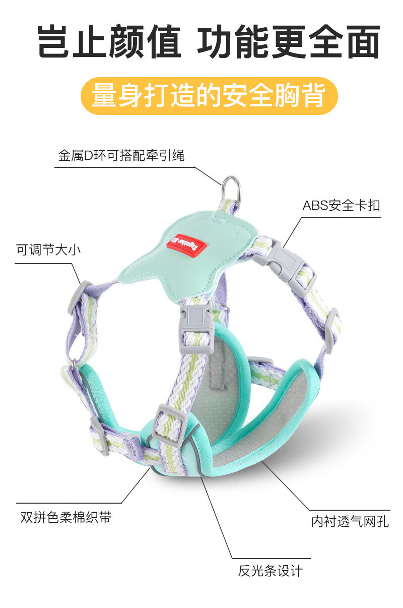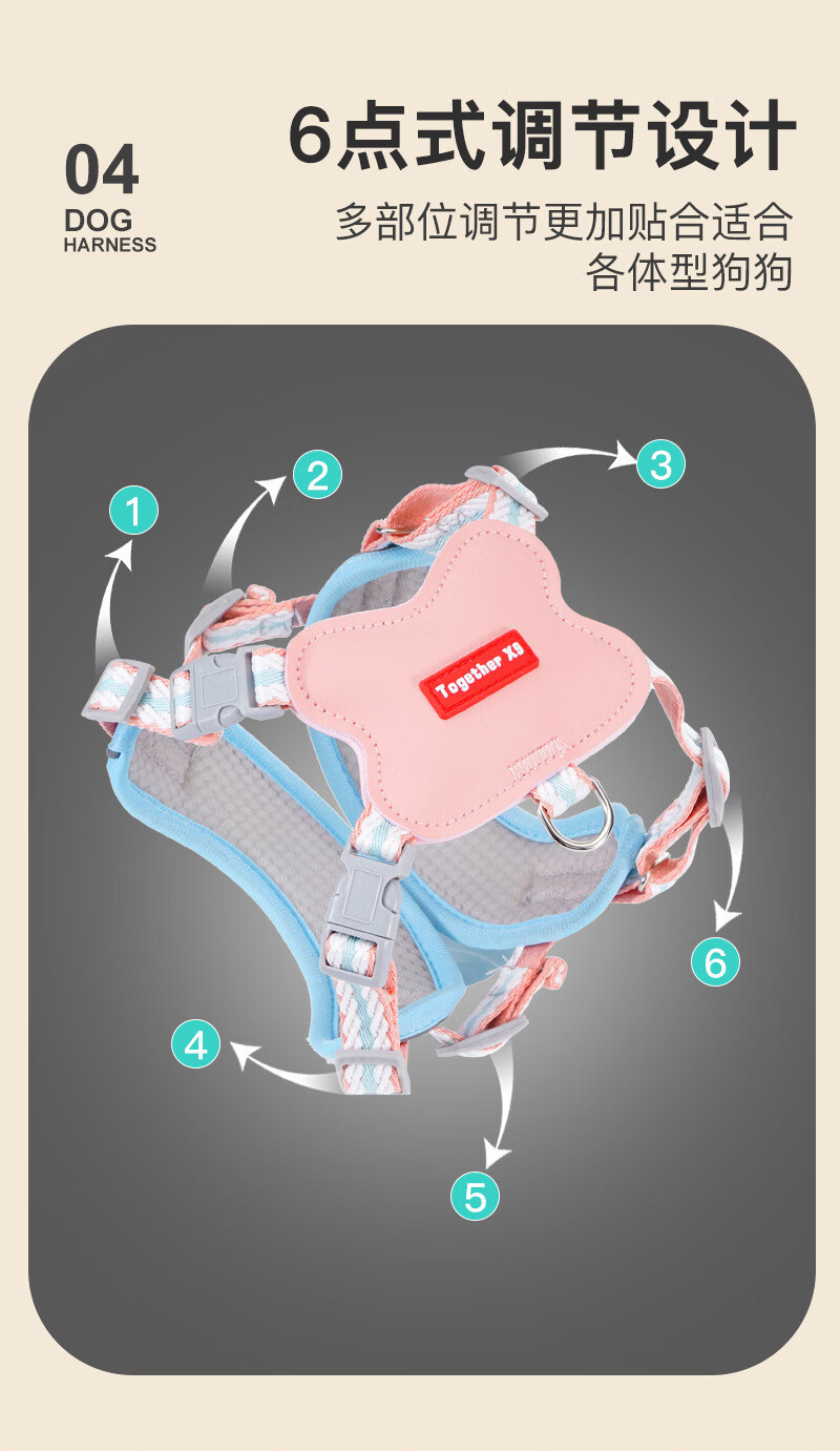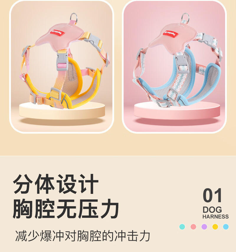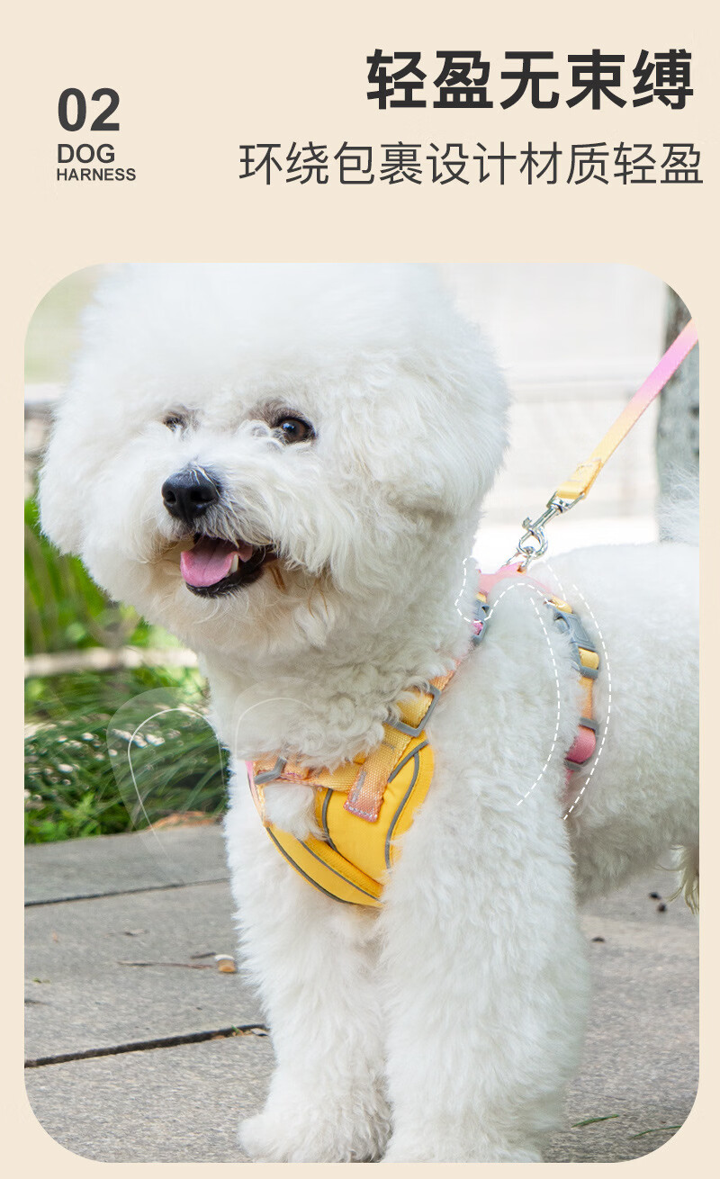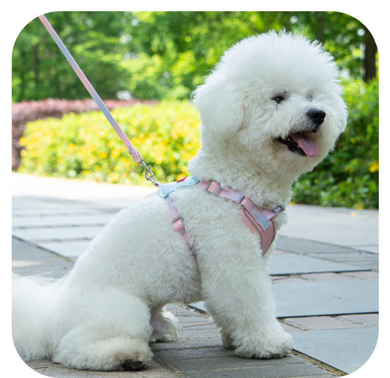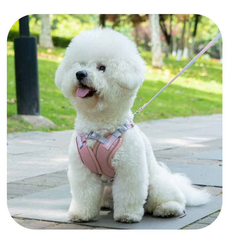 宠物用品夏季轻薄双肩带加固防挣脱胸背带狗狗专用直销批牵引绳 粉色+1.5米牵引绳 L码【建议胸围48-60cm】