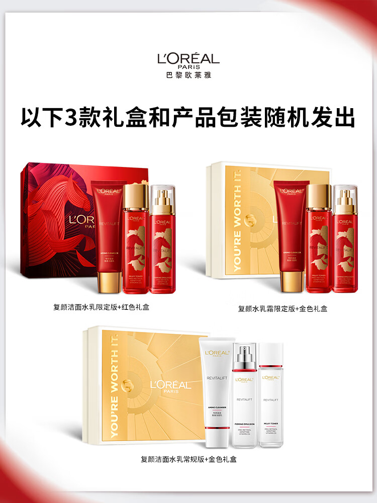 欧莱雅复颜洁面水乳限量礼盒套装补水护肤品化妆品生日女神节礼物