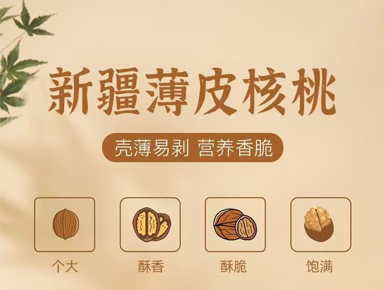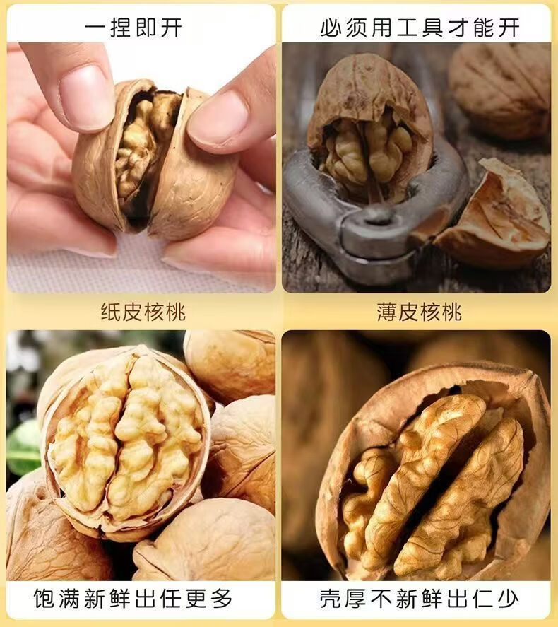 【厂家直发】纸皮核桃25年新核桃原色无漂白袋装手捏即开阿克苏薄 新疆纸皮核桃大果-1斤