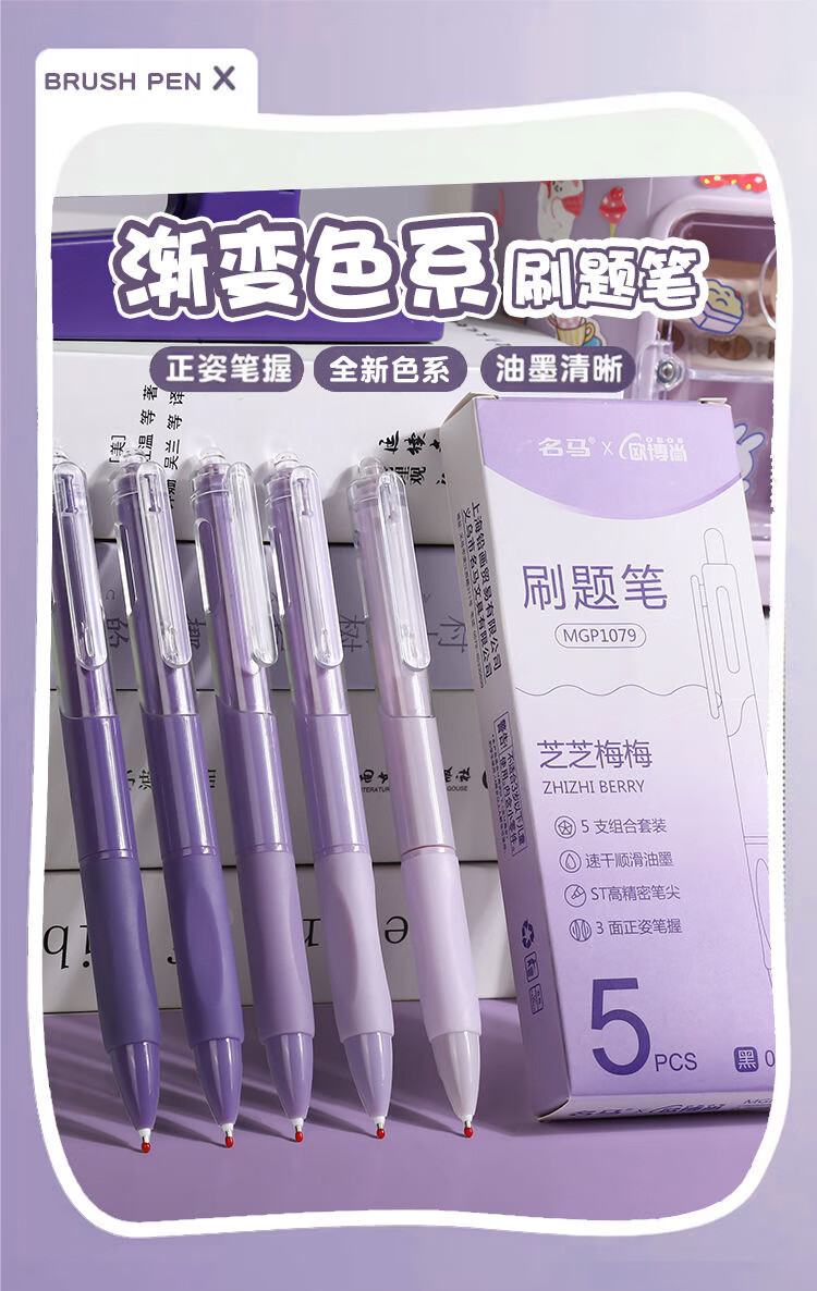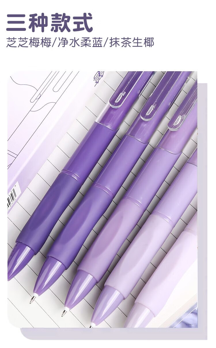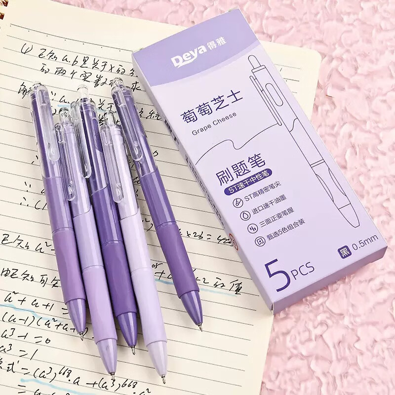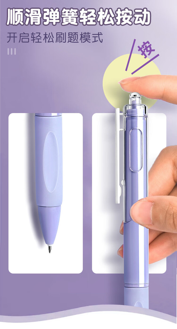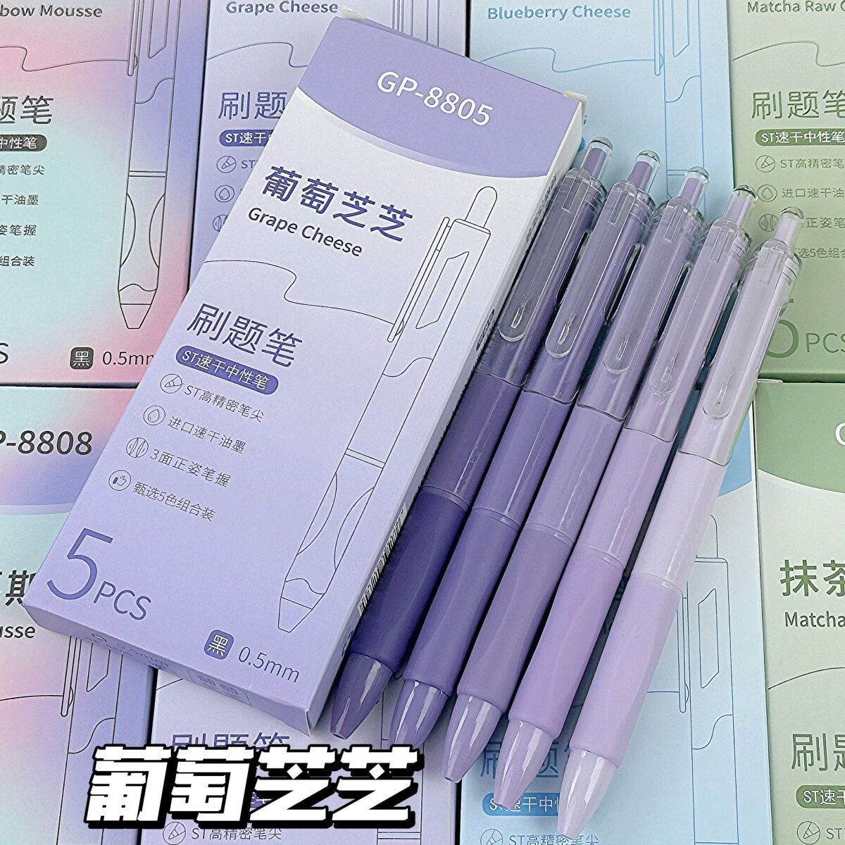 刷题笔ST学生高颜值ins按动顺滑动笔中性笔速干黑笔考试0.5mm黑色水笔 葡萄芝芝1盒+10支替芯