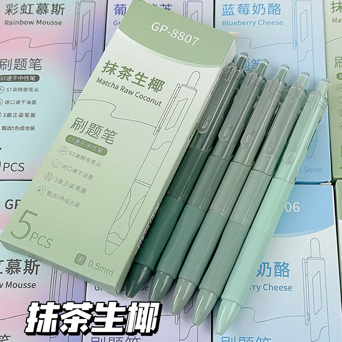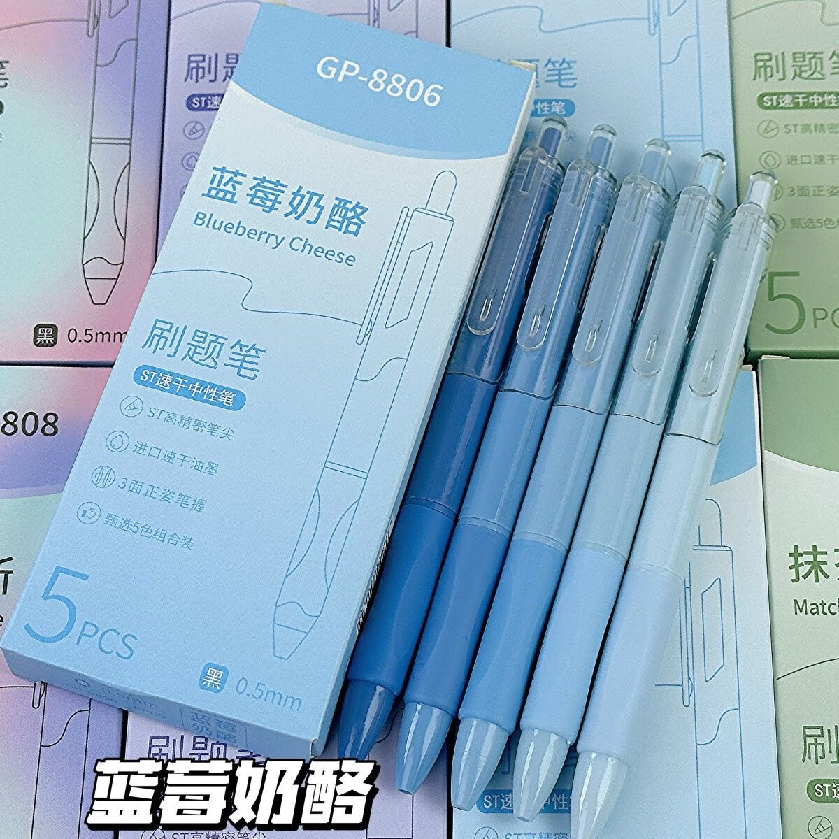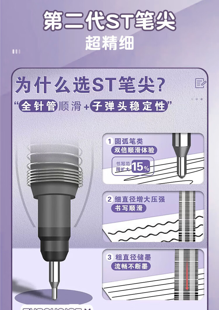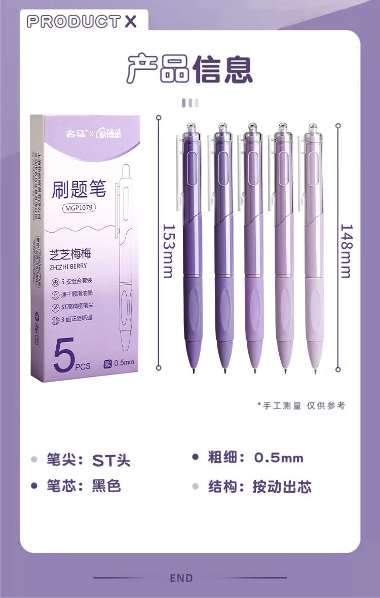 刷题笔ST学生高颜值ins按动顺滑动笔中性笔速干黑笔考试0.5mm黑色水笔 葡萄芝芝1盒+10支替芯