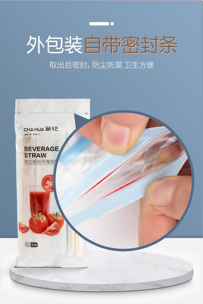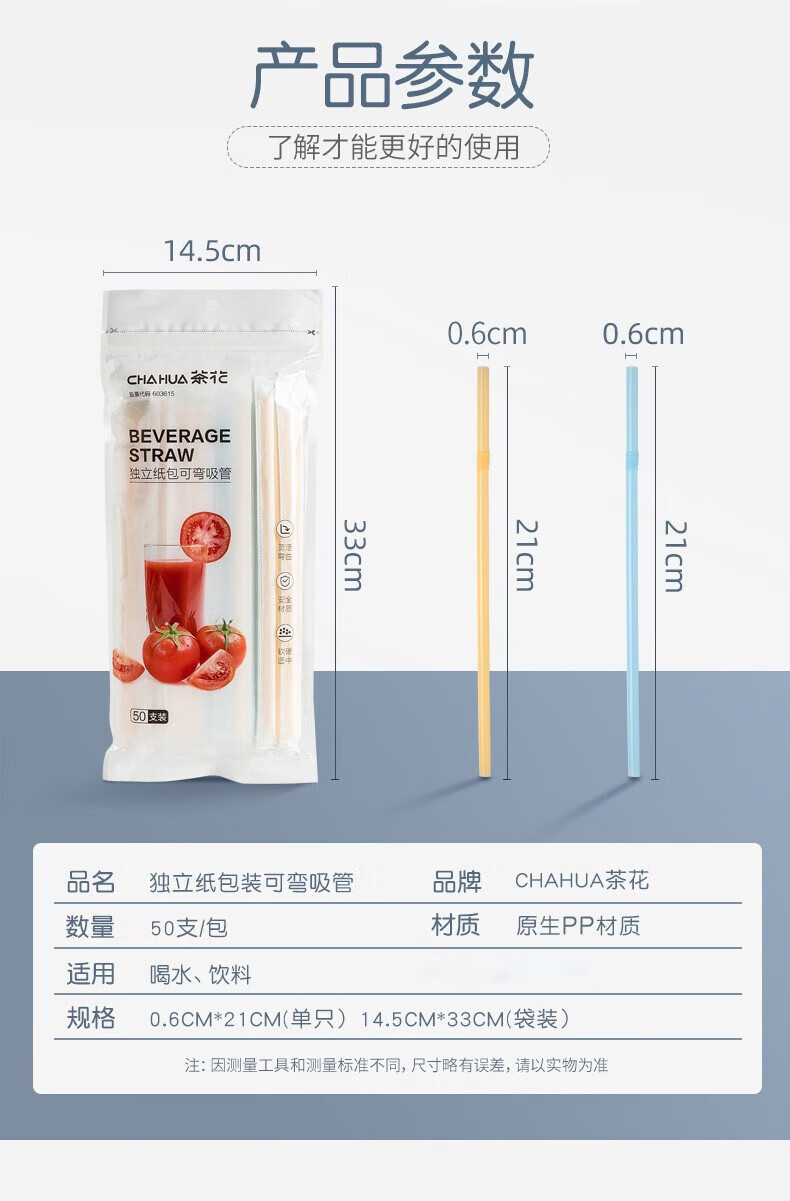 茶花 一次性吸管 独立包装可弯型奶茶咖啡搅拌食品级儿童老人孕妇50支