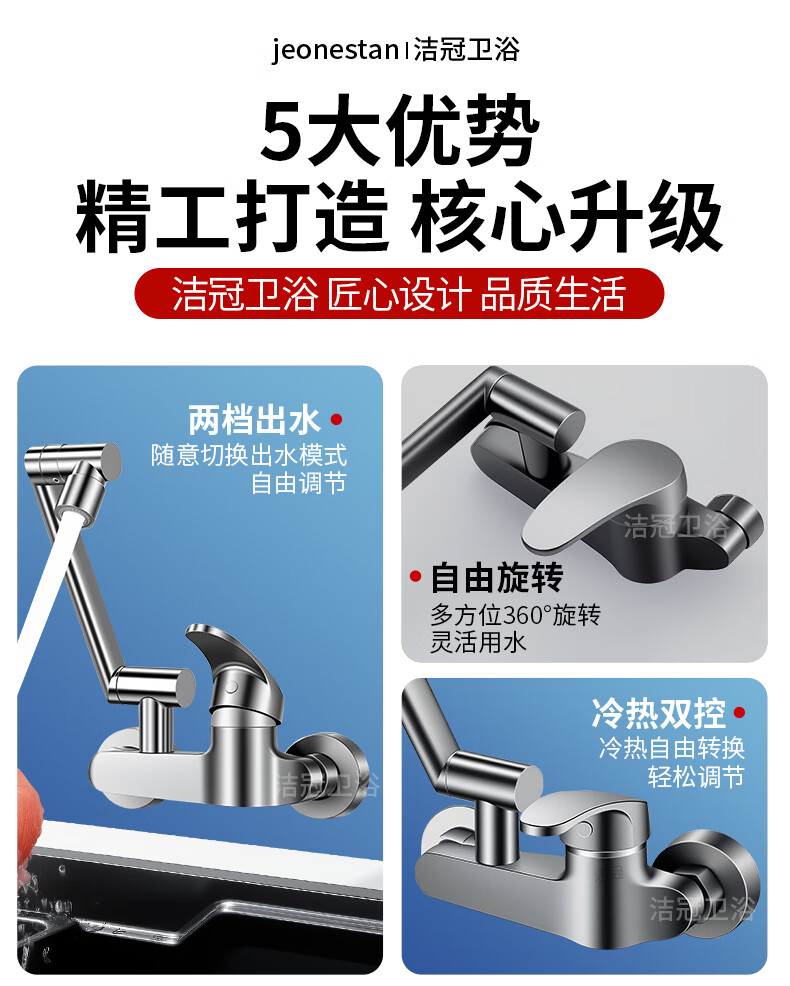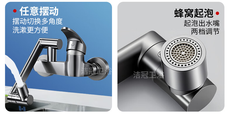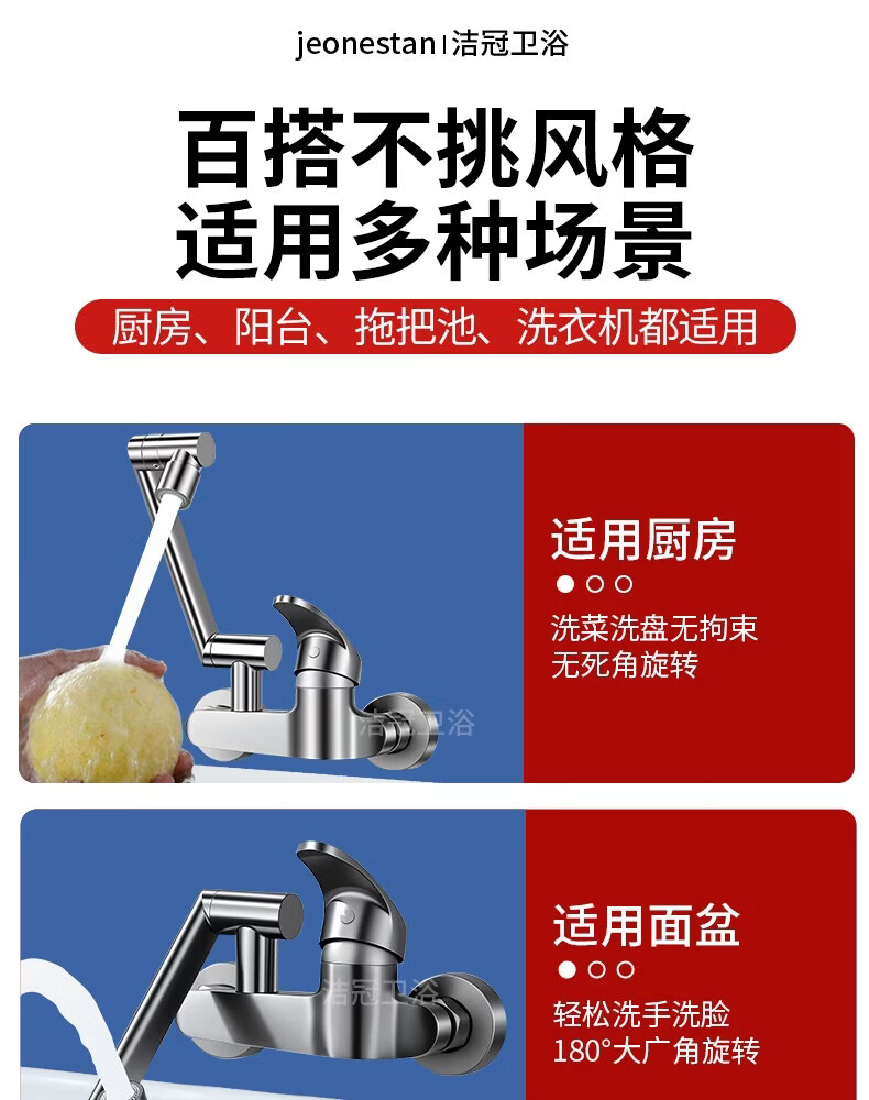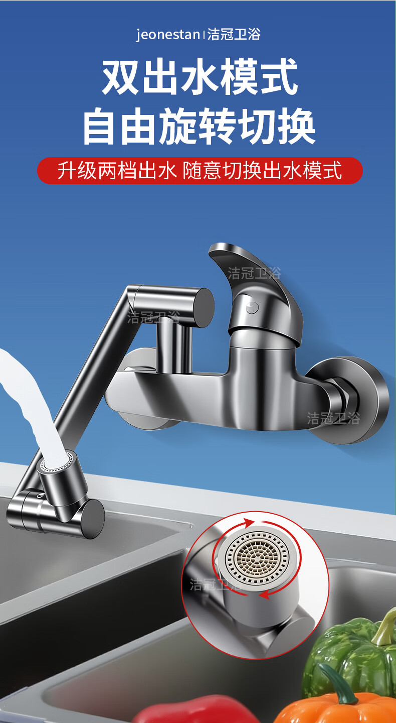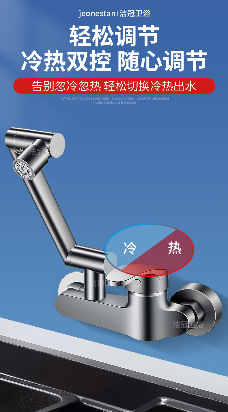 洛曲德国厨房冷热水龙头入墙式洗衣池阳台洗衣池全铜主体菜盆混水阀 双档出水龙头带机械臂