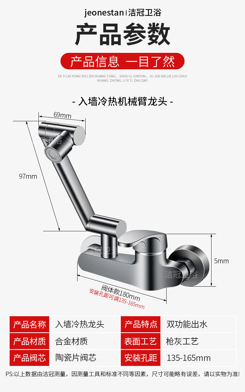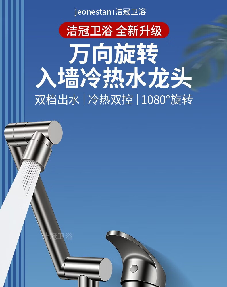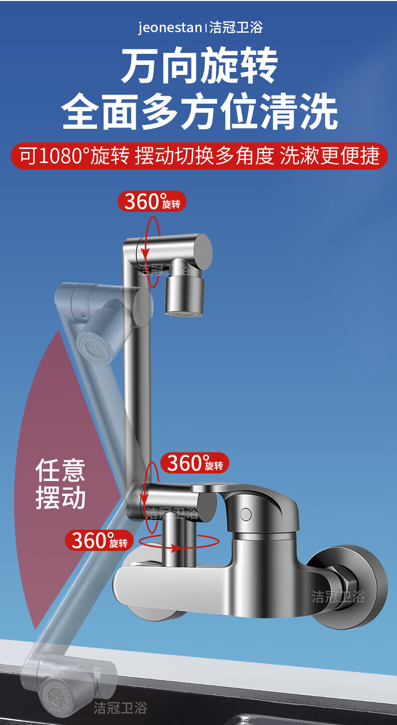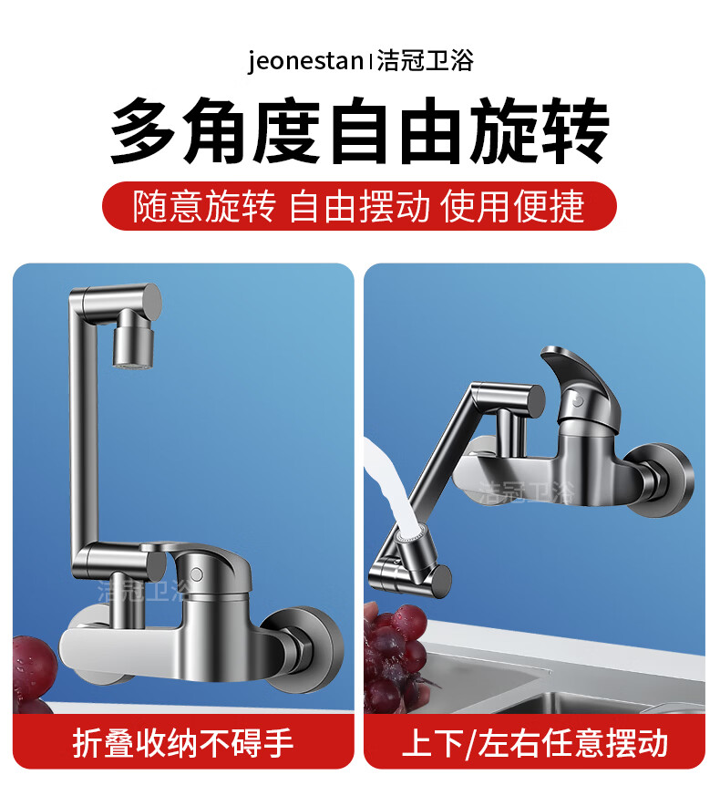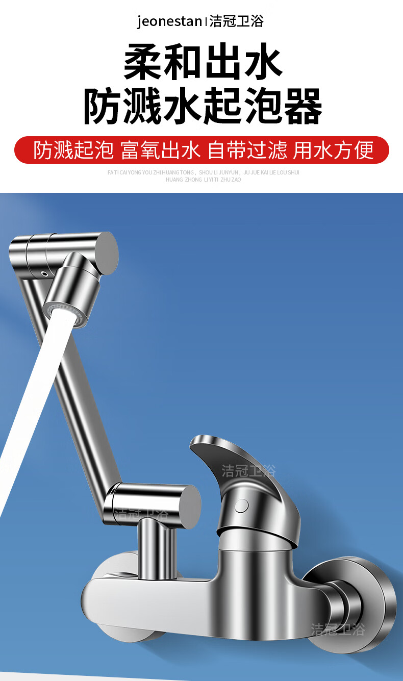 洛曲德国厨房冷热水龙头入墙式洗衣池阳台洗衣池全铜主体菜盆混水阀 双档出水龙头带机械臂