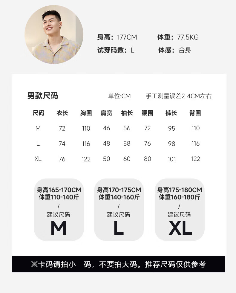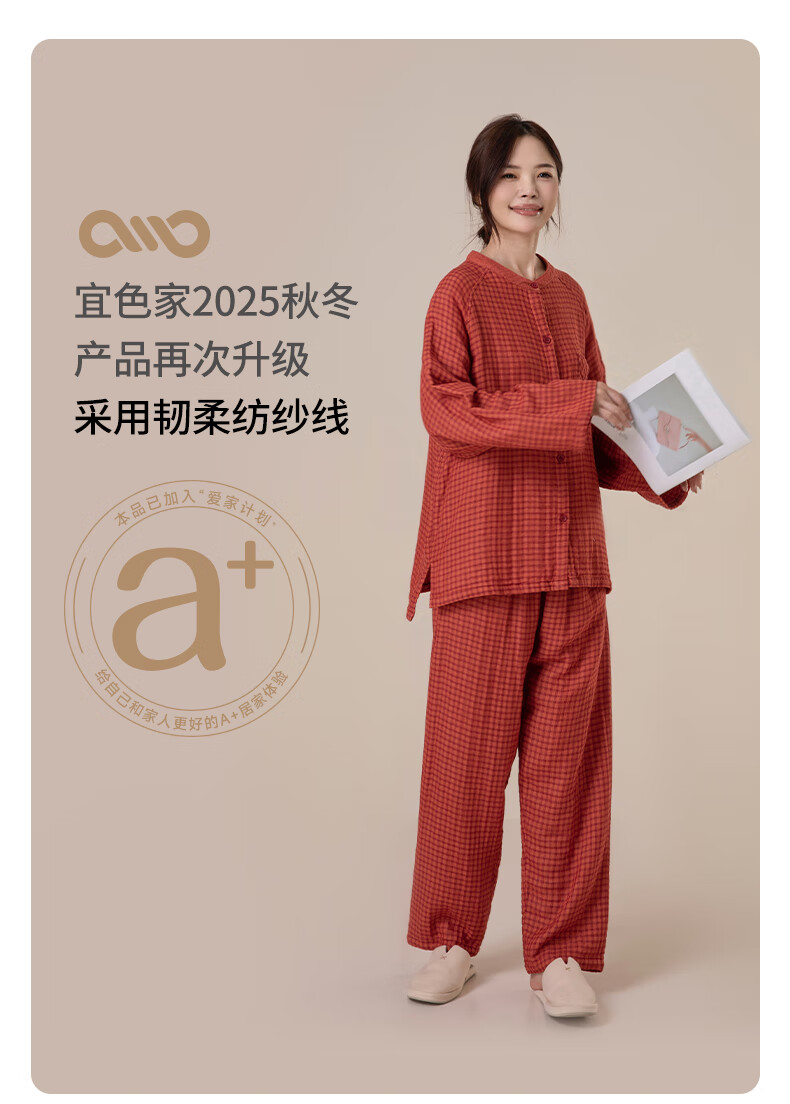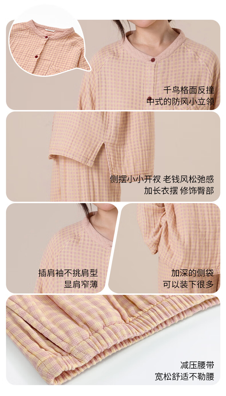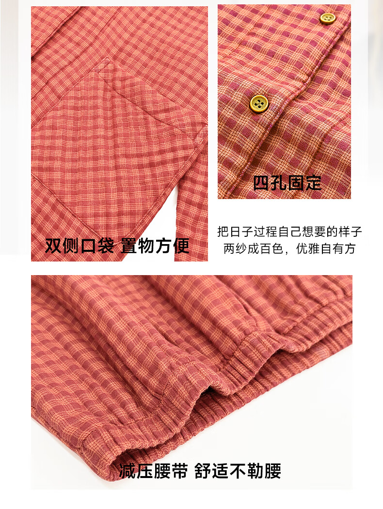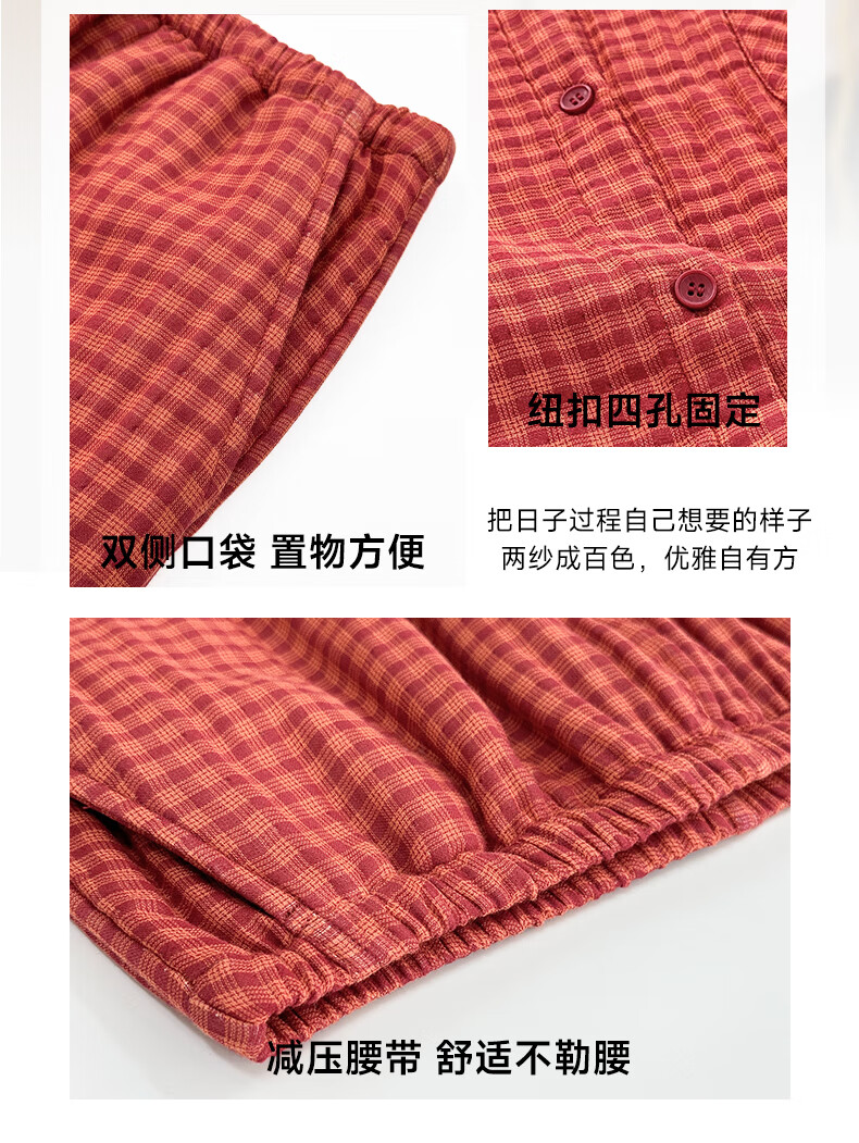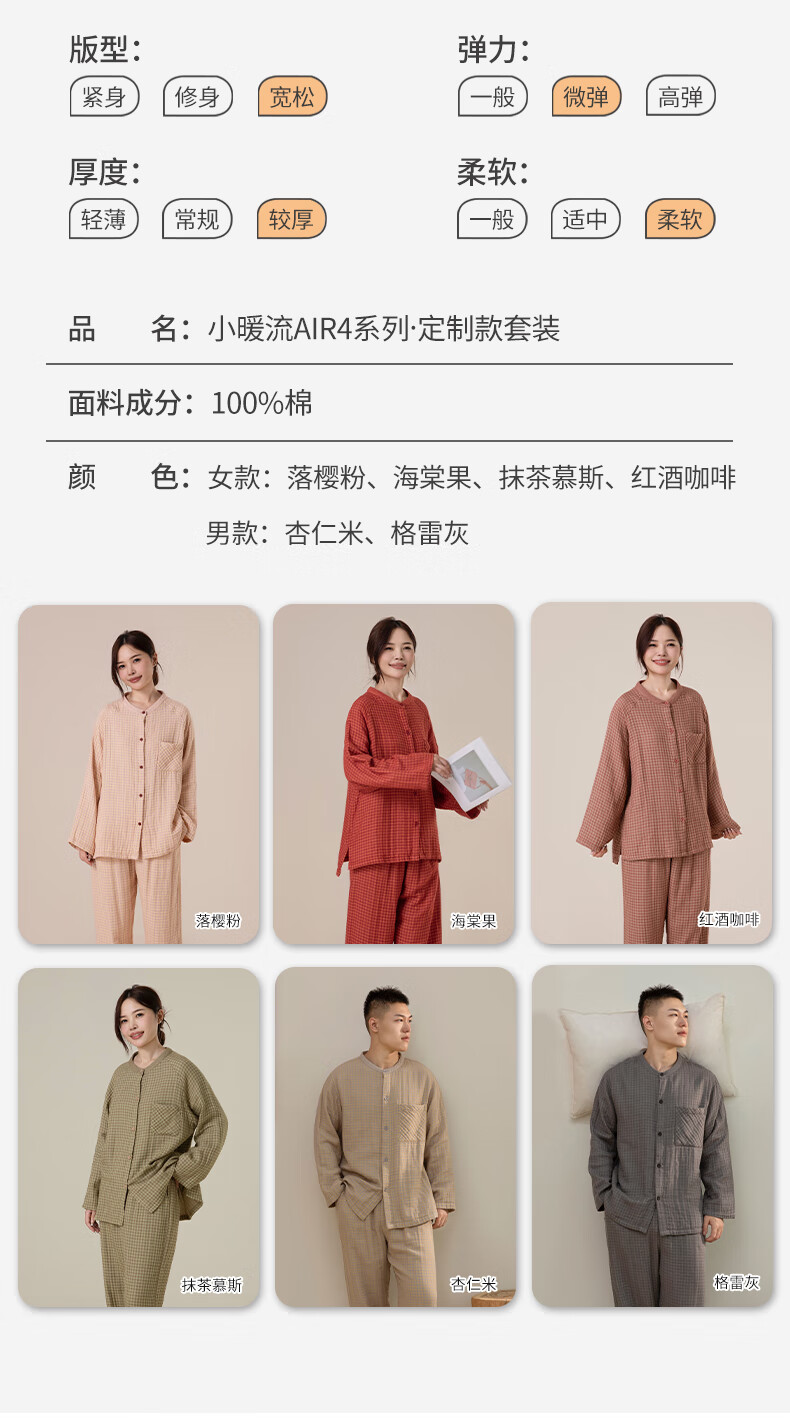 宜色家纯棉睡衣四层棉纱家居服 春季长袖长裤男女士情侣居家服套装宽松 四层纱立领-杏仁米 男款 M