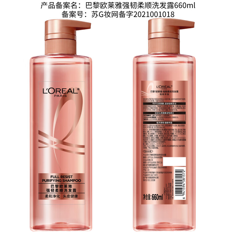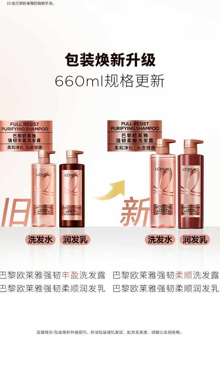 欧莱雅(LOREAL)屈臣氏 巴黎欧莱雅强韧柔顺洗发露润发乳 润发乳 660ml*1瓶