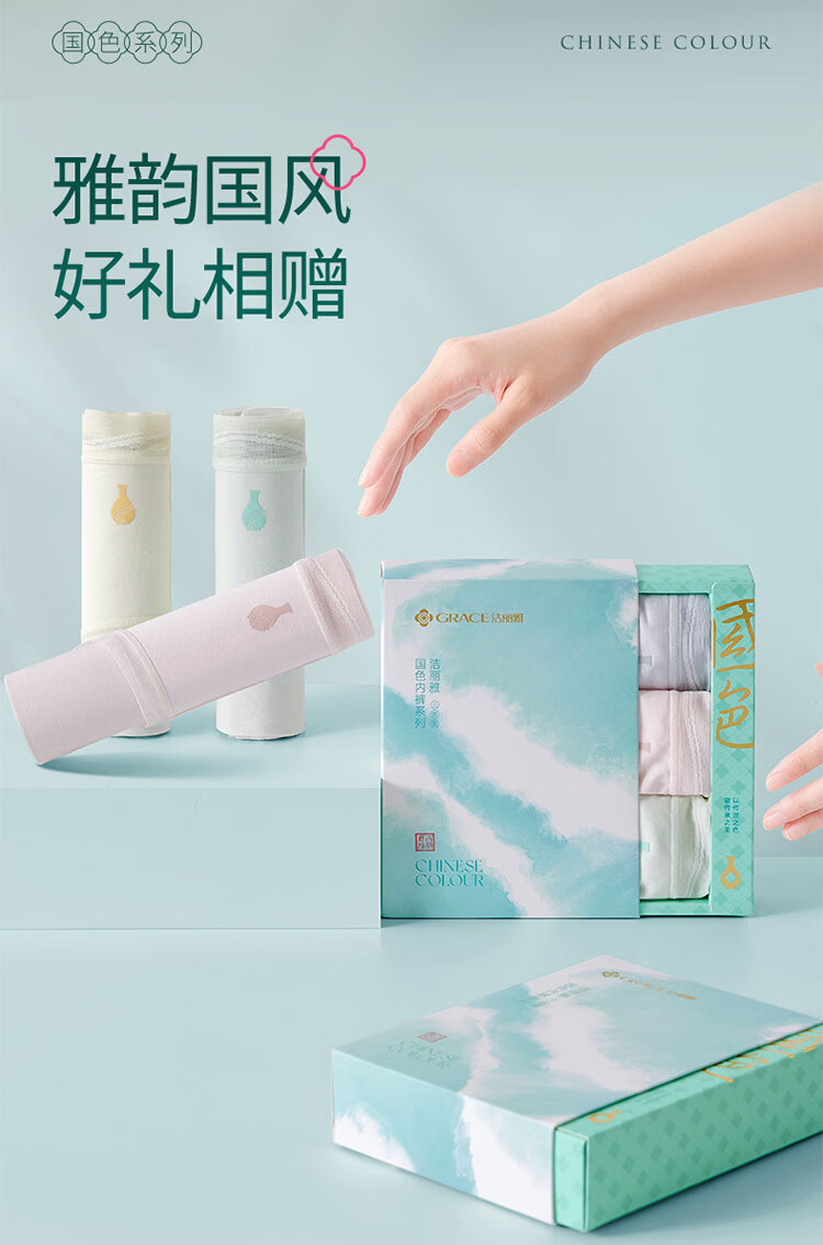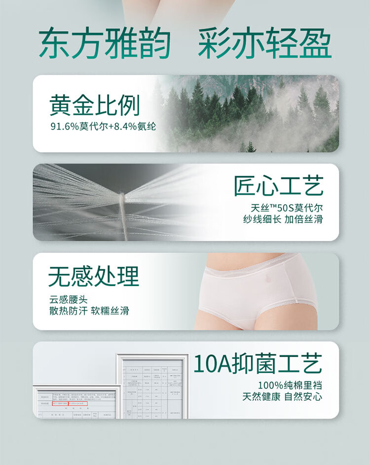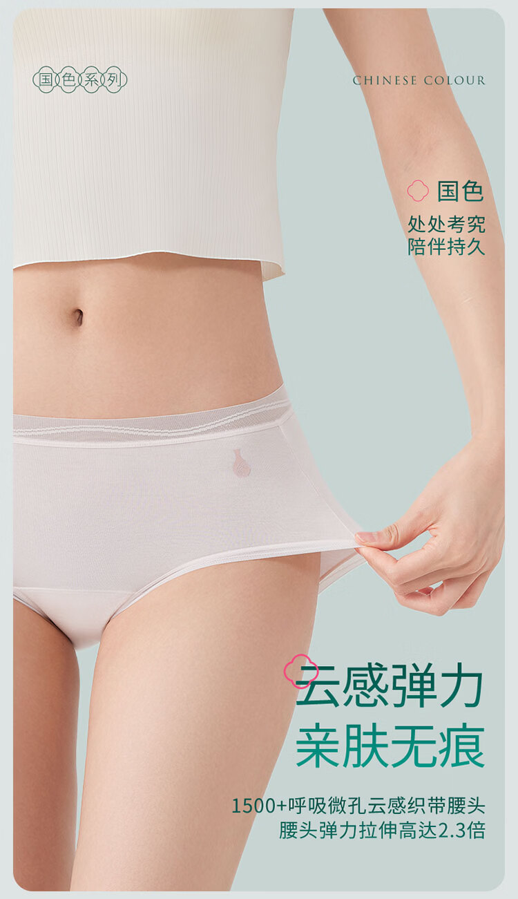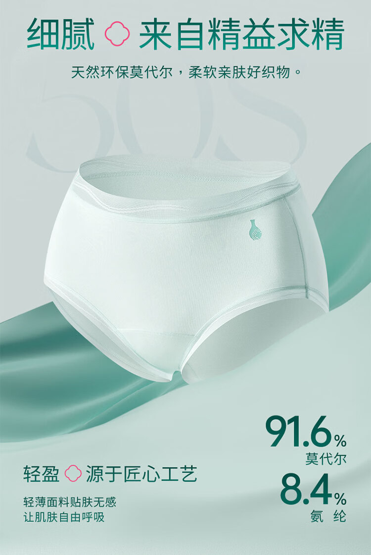 洁丽雅女士内裤女新款50S莫代尔纯棉裆夏薄款透气10A抗菌三角短裤 明黄+天青绿+桃夭粉【国色系列3条装】 M