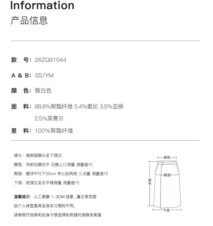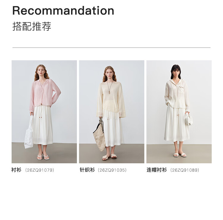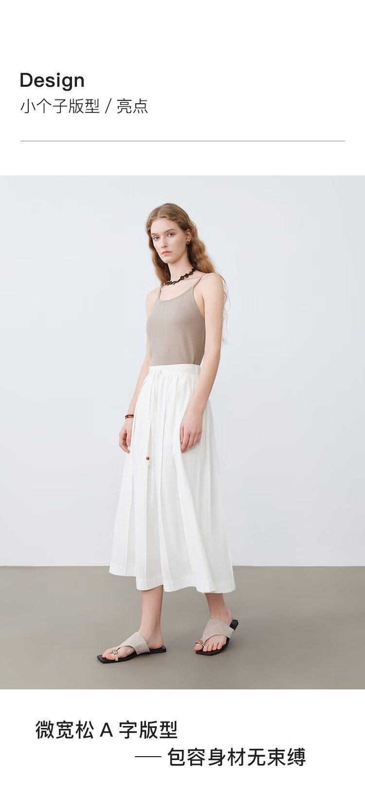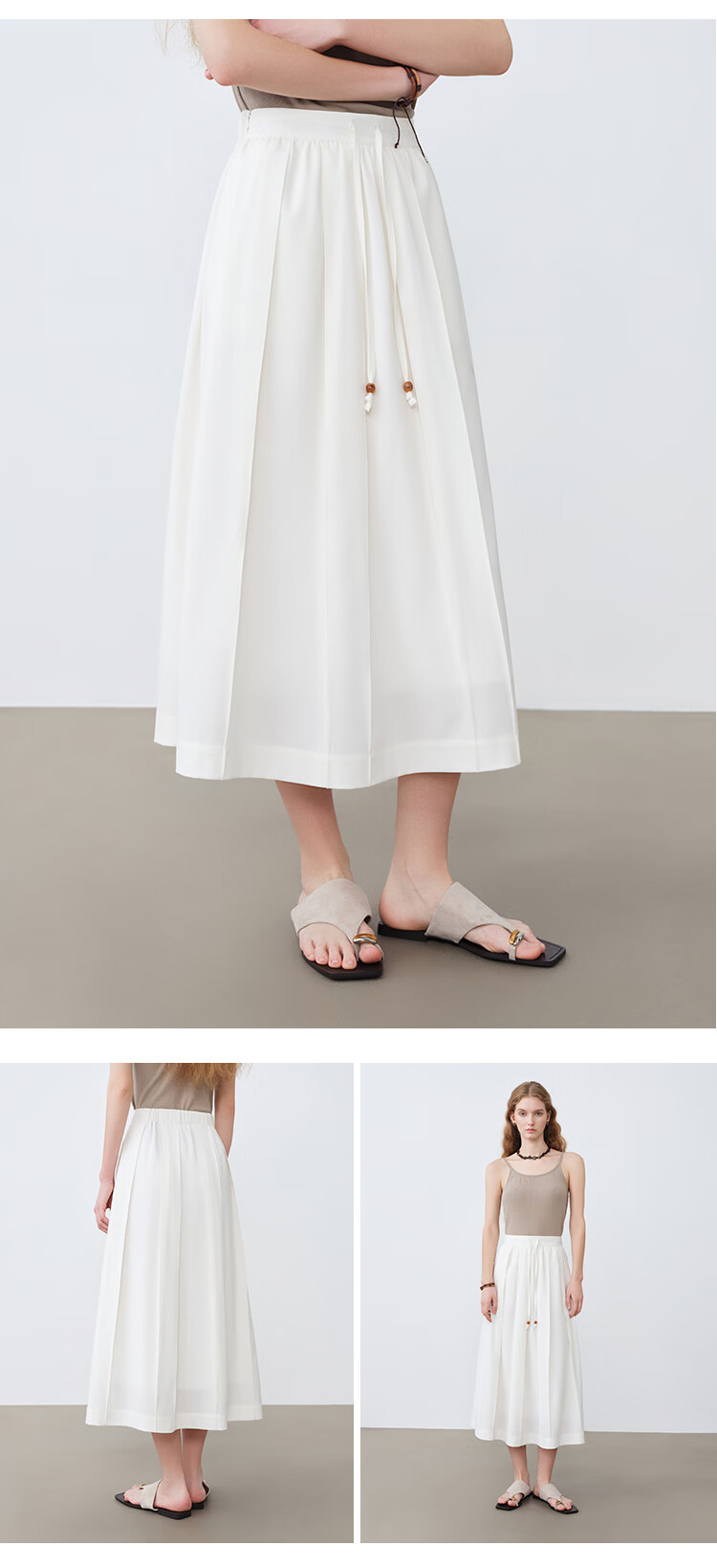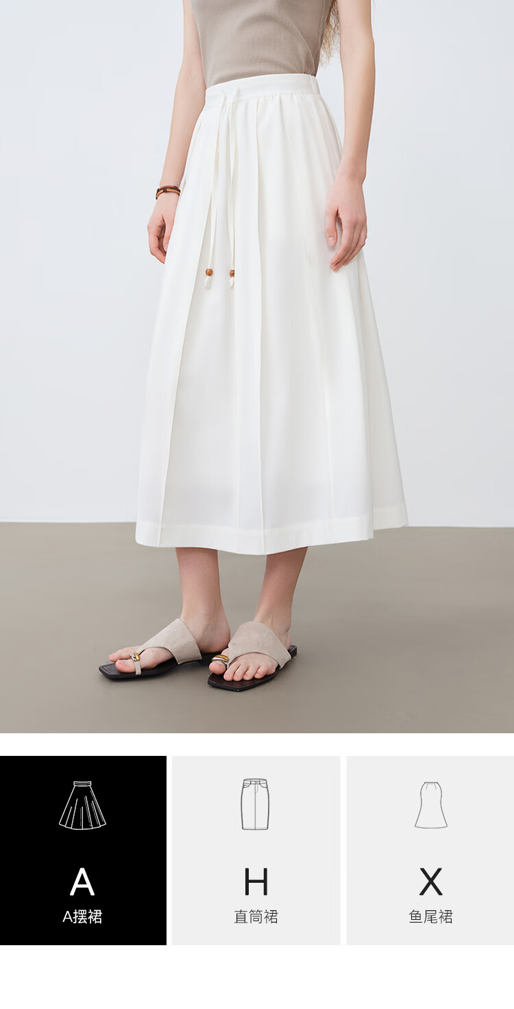 自巧小个子白色压褶半身裙女撞色珠抽绳中长裙A摆裙2026春季新品 雅白色 XXS (尺码:1)