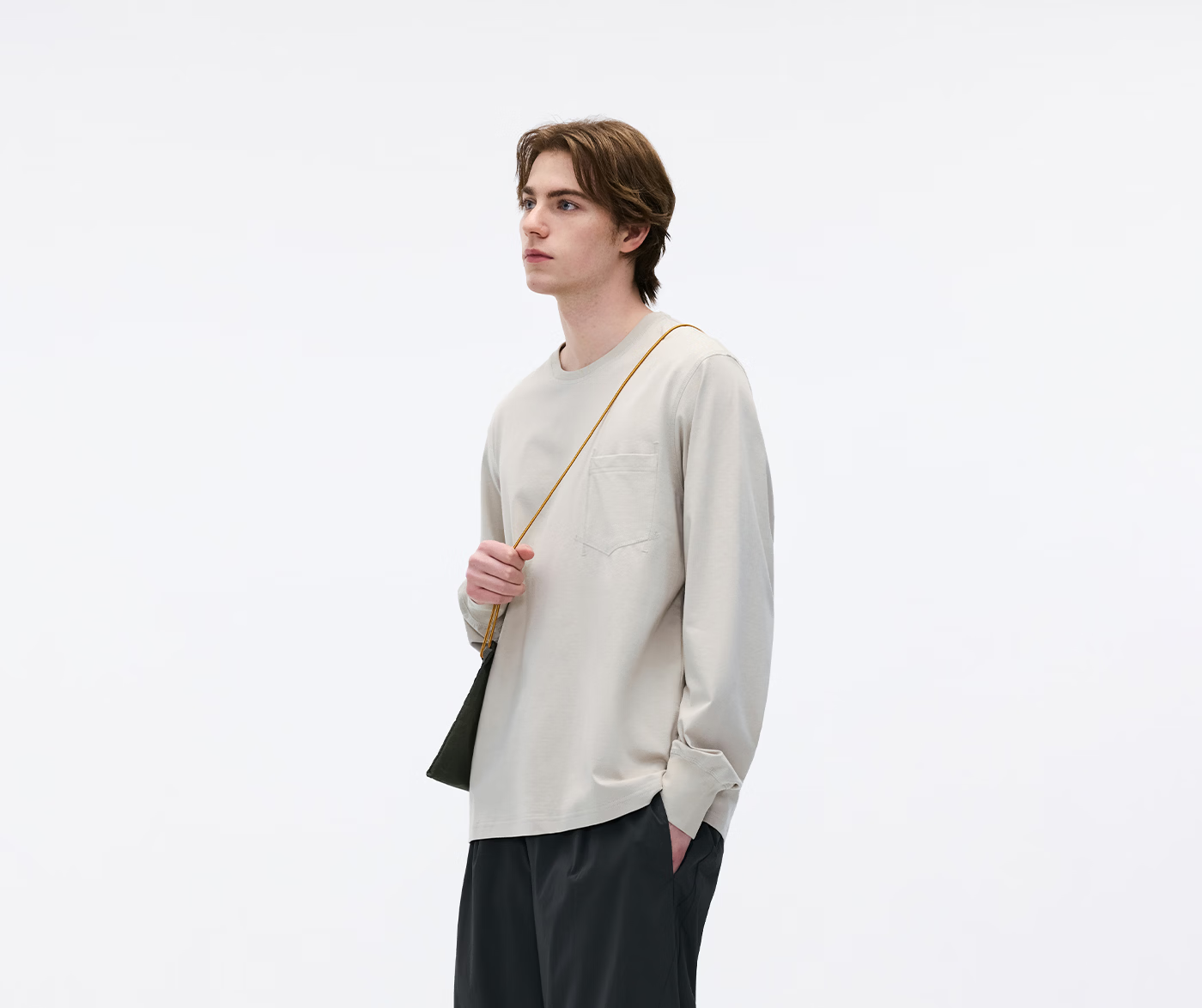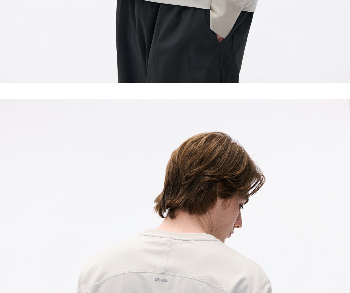熊猫·本(ben.panda)圆领运动速干长袖T恤男宽松透气打底衫上衣2026春季新款 米灰色 M