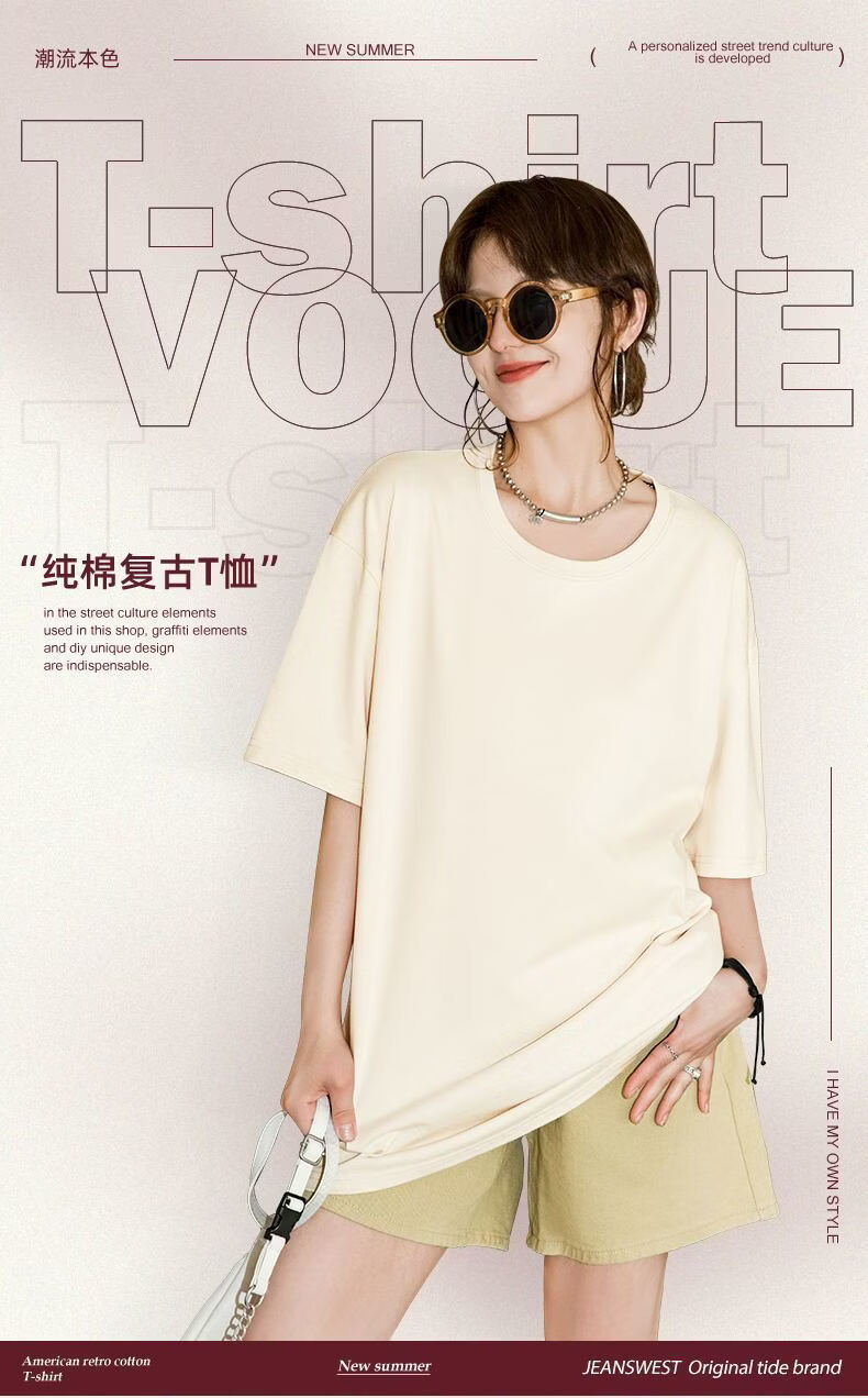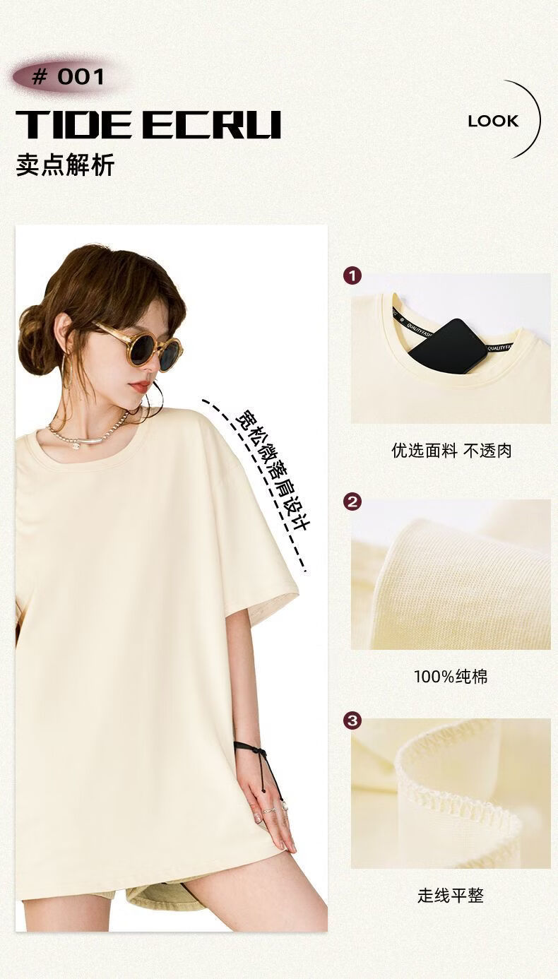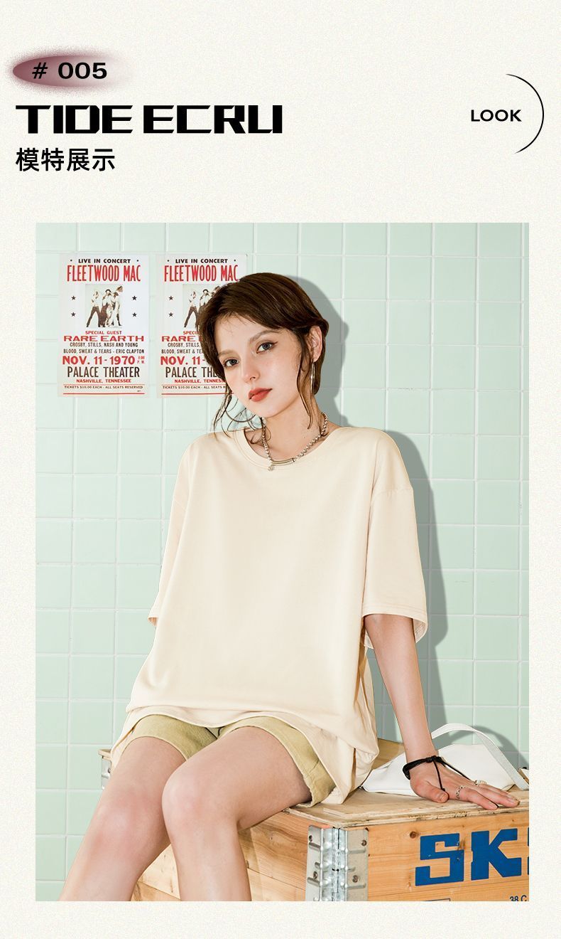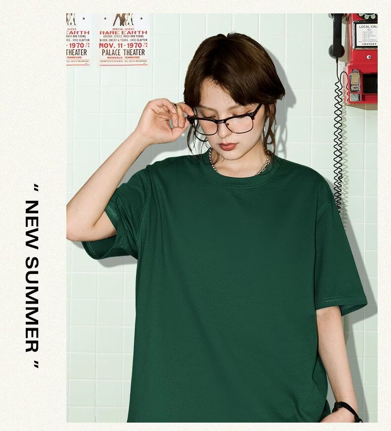 晚白【新品】2026年春款圆领落肩上衣全棉宽松休闲短袖T恤衫女 嫩绿色 S