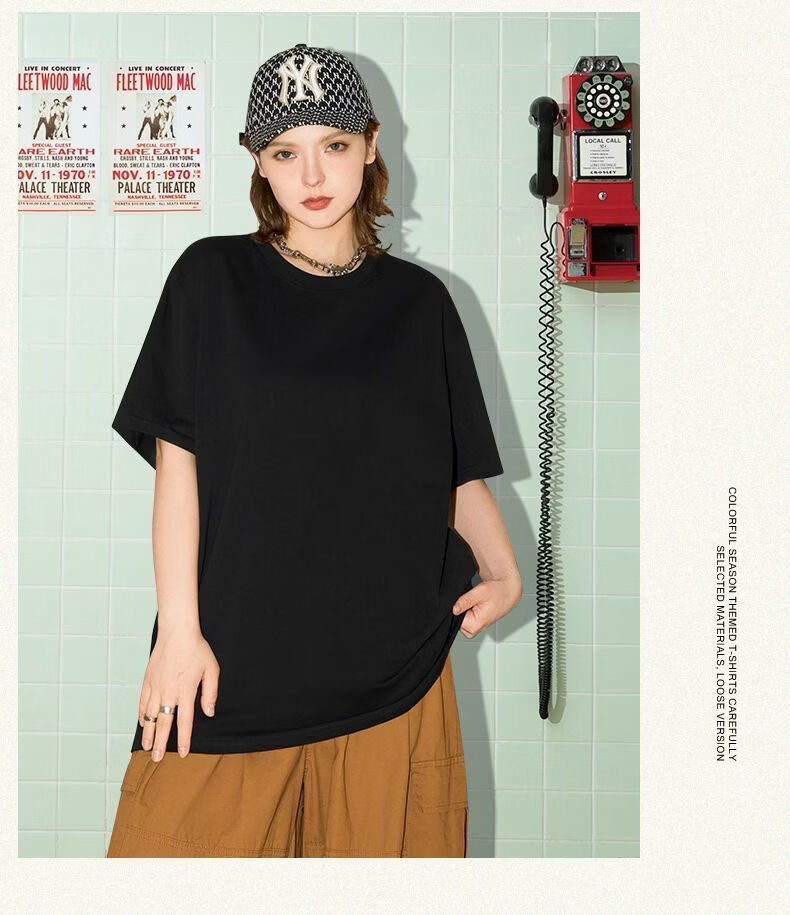 NEW OR MODE美式高街印花短袖t恤男夏季新款重磅潮牌宽松纯棉休闲半袖体恤衫 黑色【高品质】 M 【建议90-110斤】