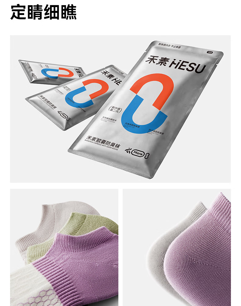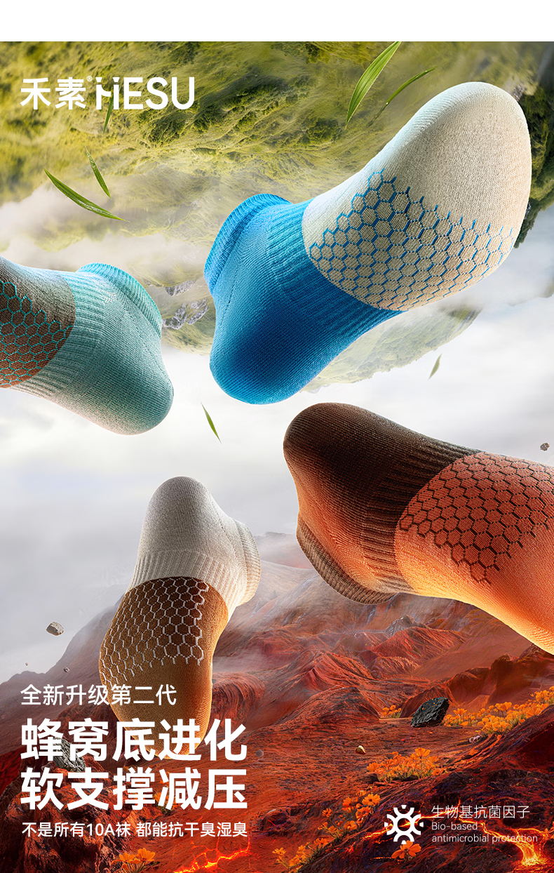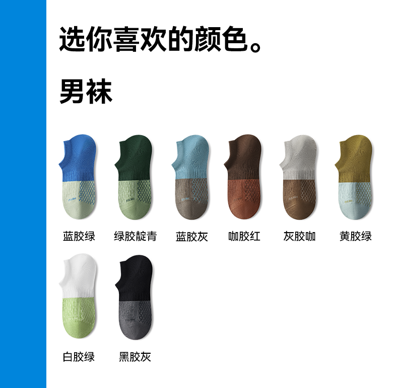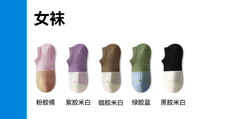 禾素时代【More拼色胶囊】船袜春夏抗干臭湿臭10A抗菌防臭袜网眼棉袜 (男)黄胶绿+灰胶咖+咖胶红+白胶绿+蓝胶绿 均码