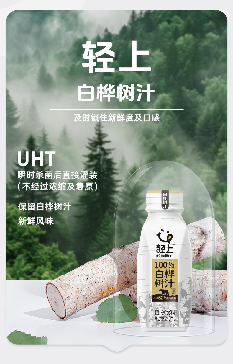 轻上(LIGHT UPPER)100%白桦树汁NFC果蔬汁 瓶装植物饮料 白桦树乌龙茶600ml*6瓶