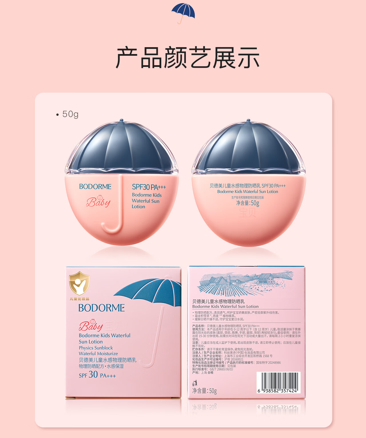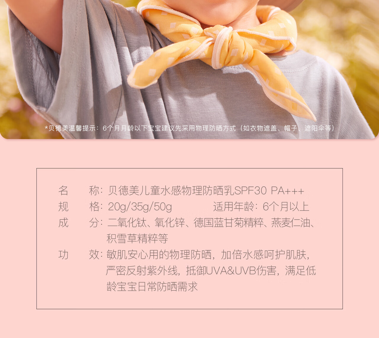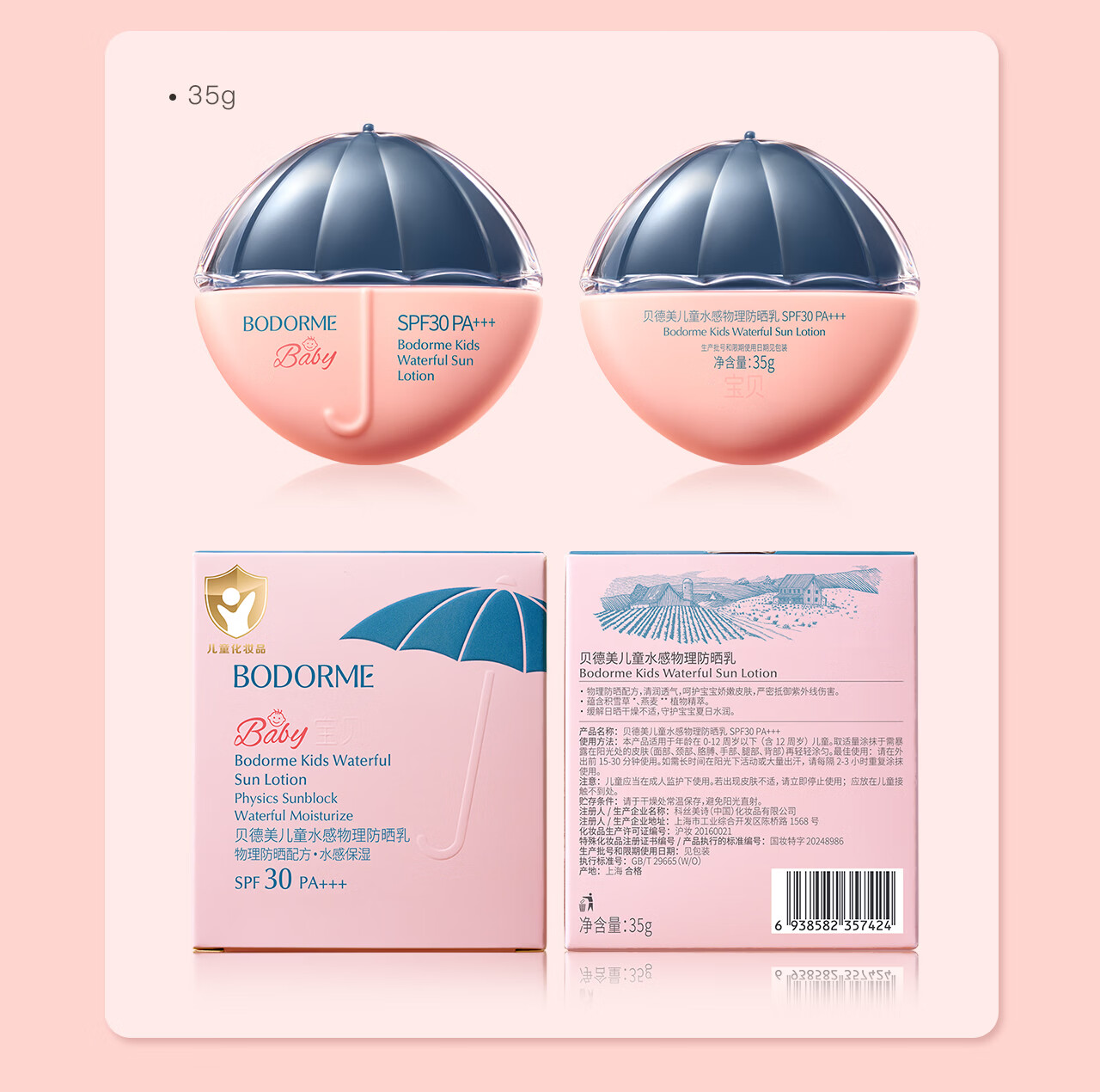 贝德美(bodcrme)蓝甘菊儿童防晒乳隔离霜35g防晒红晒黑宝宝户外润肤霜SPF30 PA+++