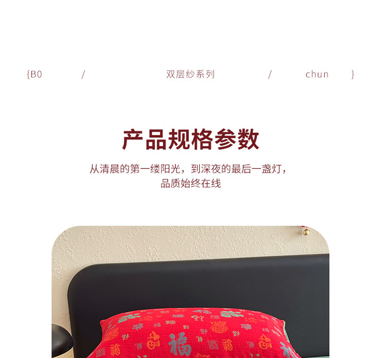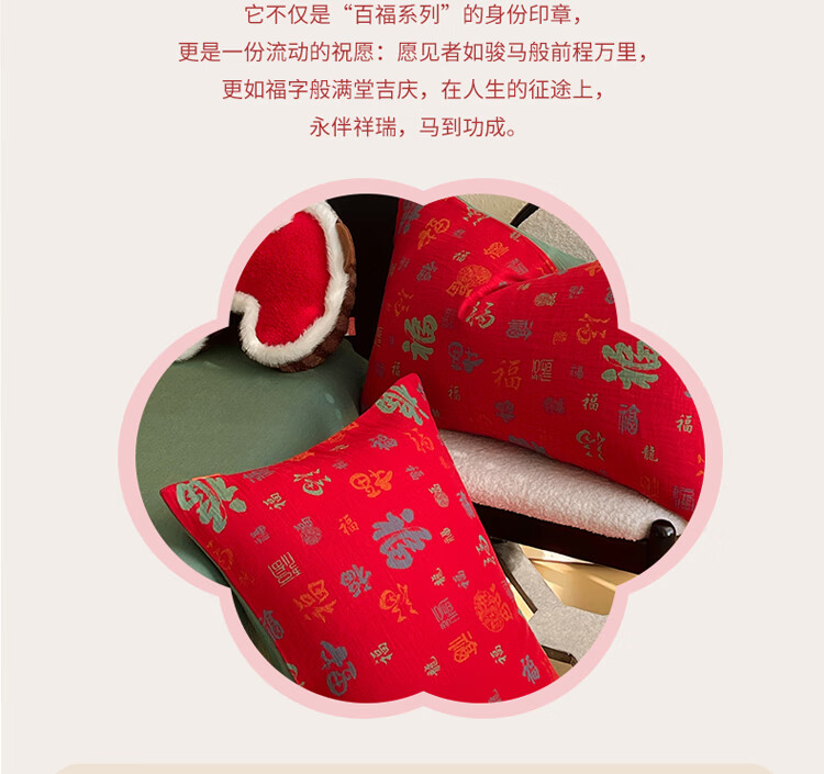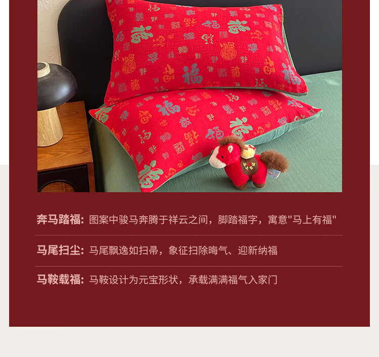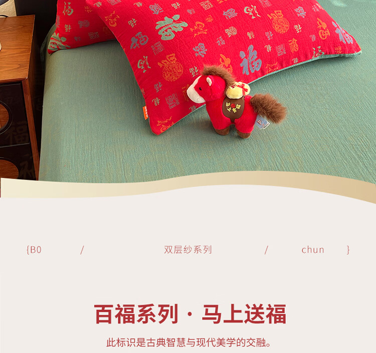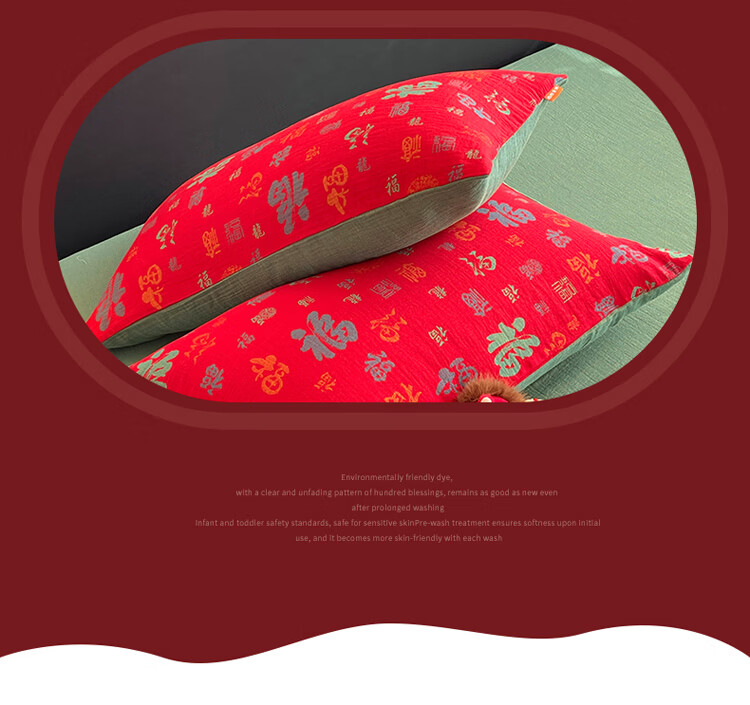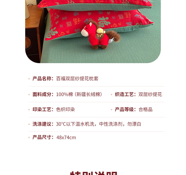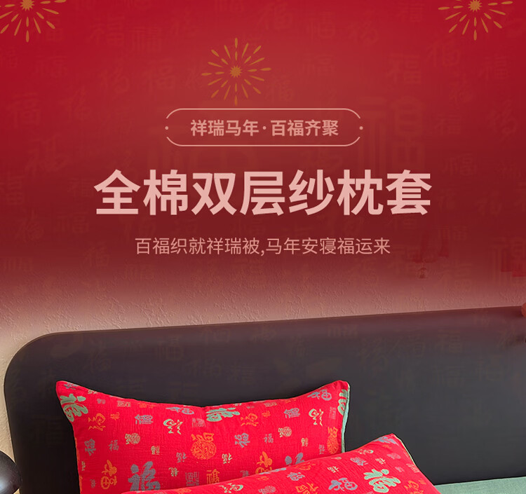 ROLAND LIVE全棉色织双层纱提花百福单枕套马上送福纯棉枕头套一对装48*74cm CW 百福双层纱单枕套-红百福 一对装 48*74cm