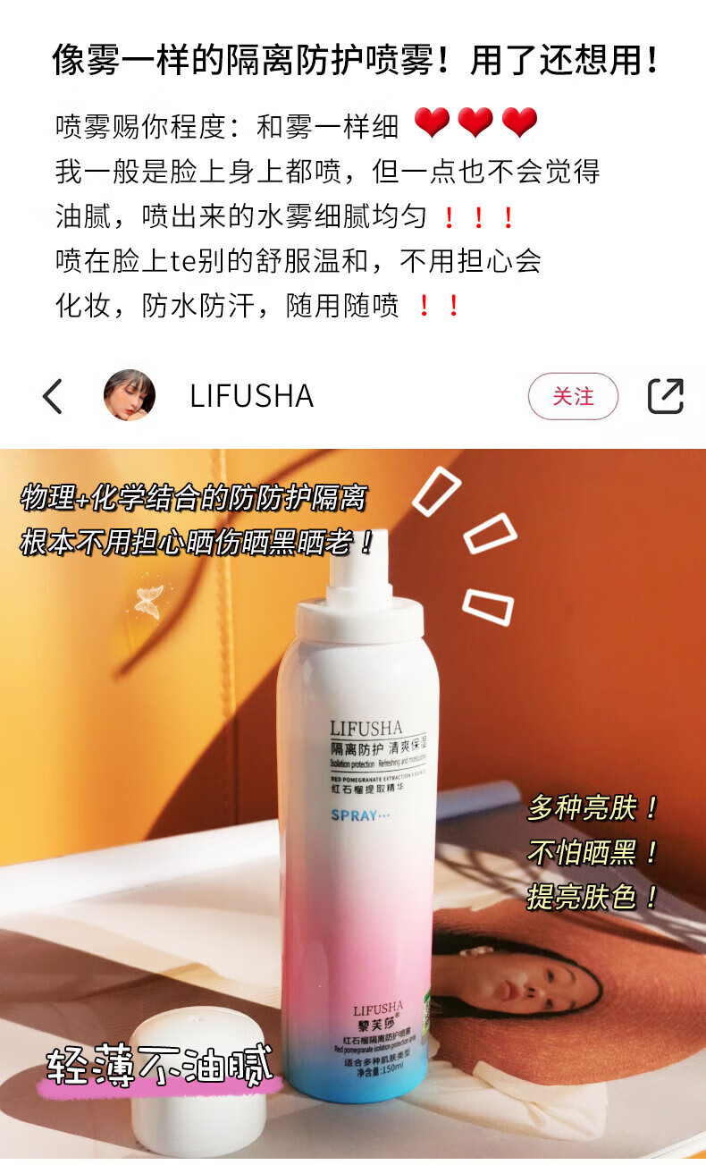 红石榴隔离防护喷雾保湿控油日常防护防隔离清爽保湿补水喷雾 红石榴隔离防护喷雾150ml*1