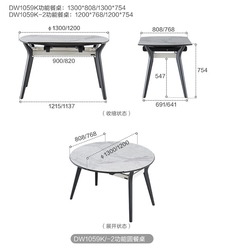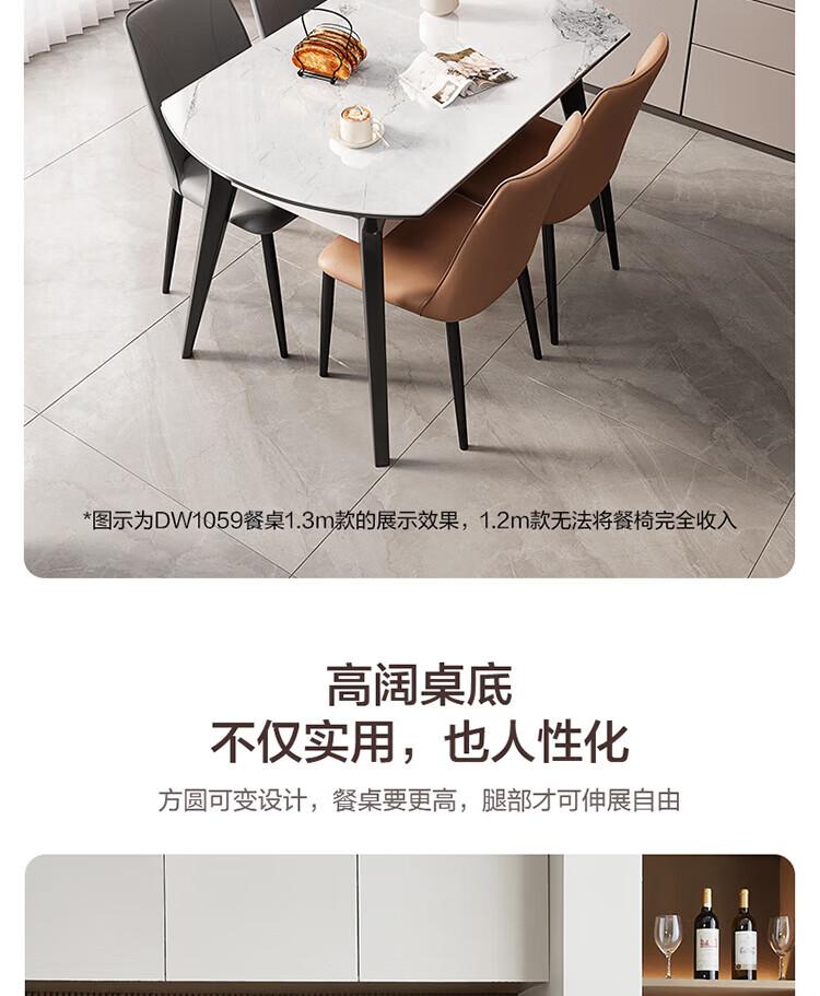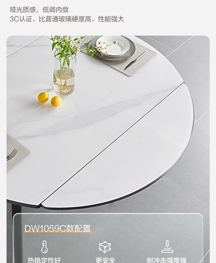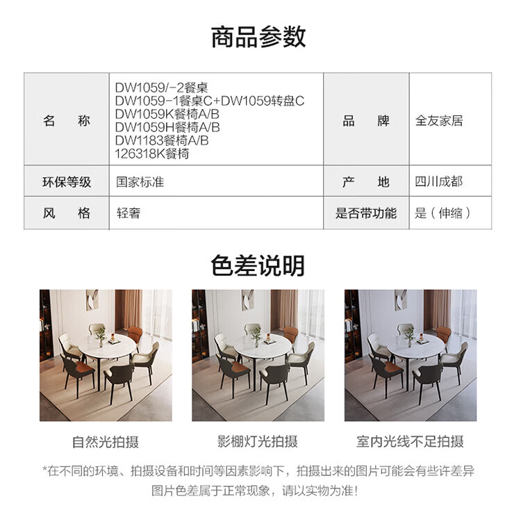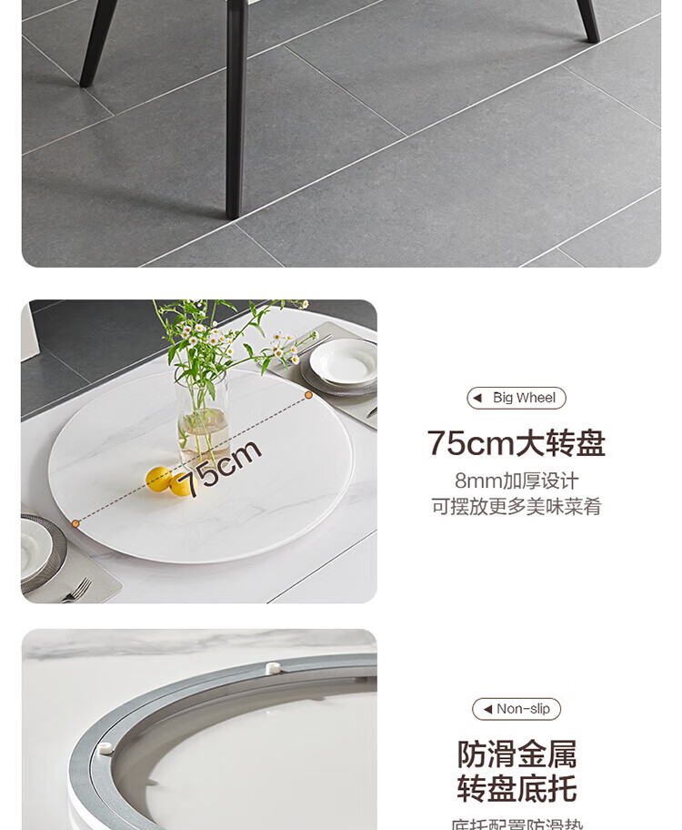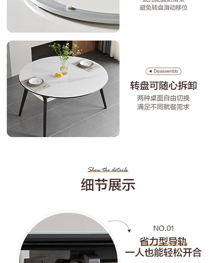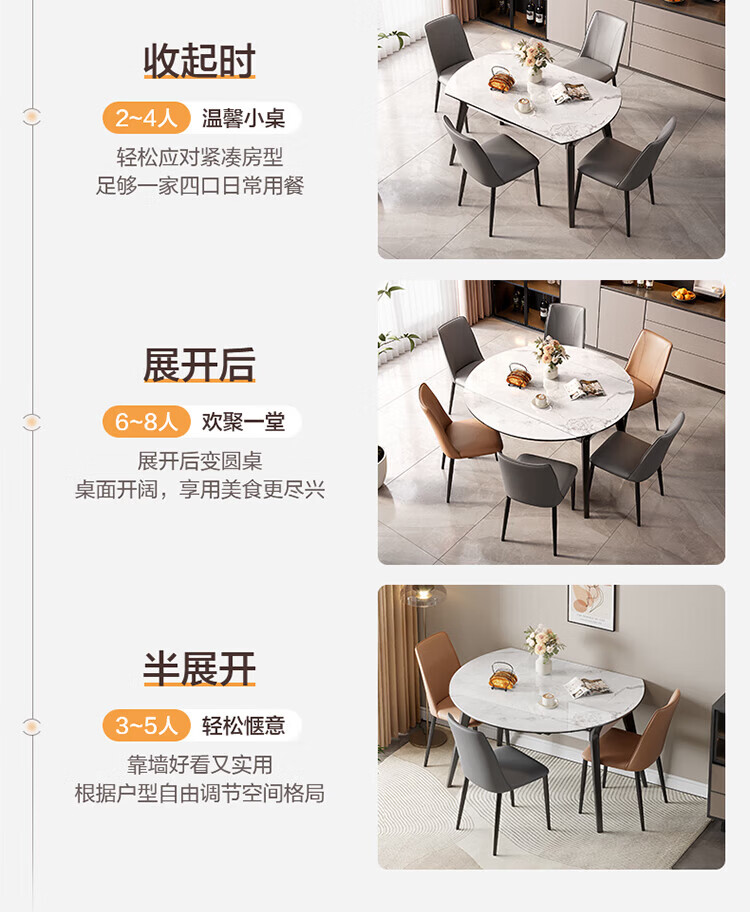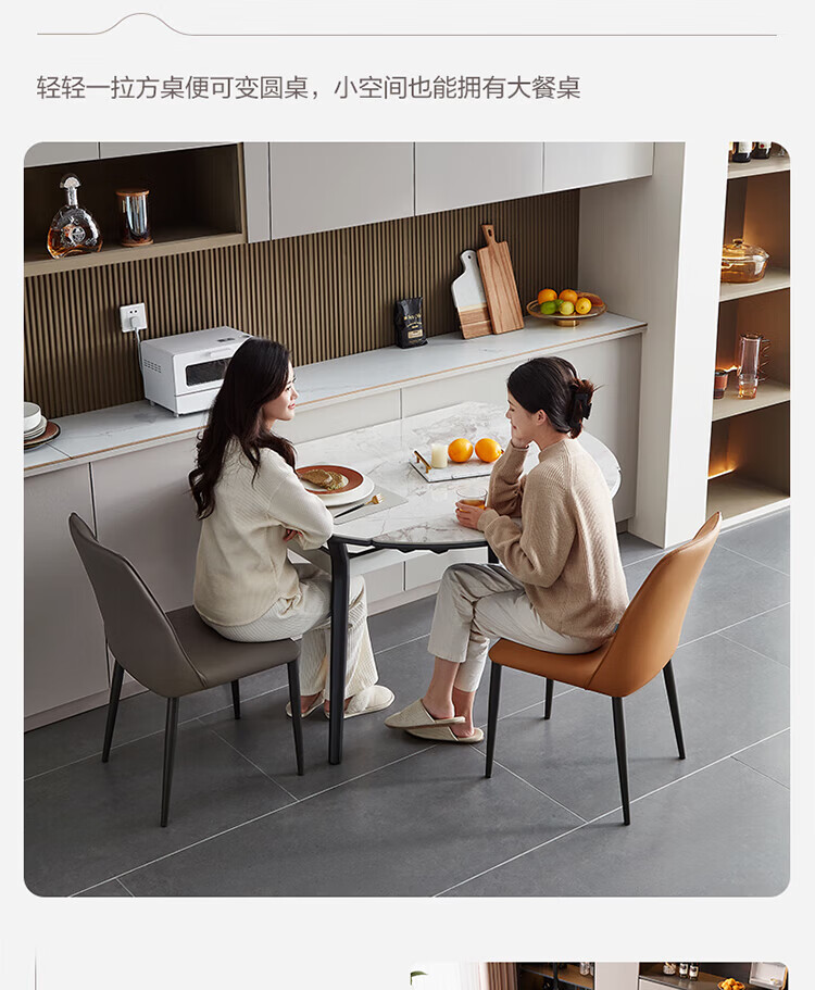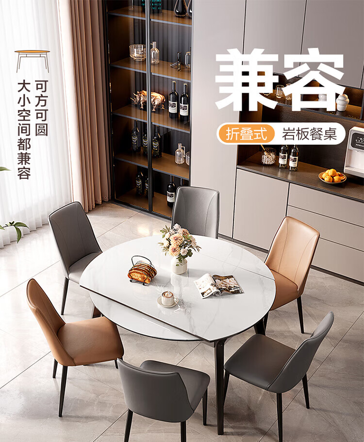 全友家居餐桌现代轻奢家具高端岩板可折叠家用客厅圆餐桌休闲吃饭桌椅 云纹纱|1.5m桌+灰椅*4