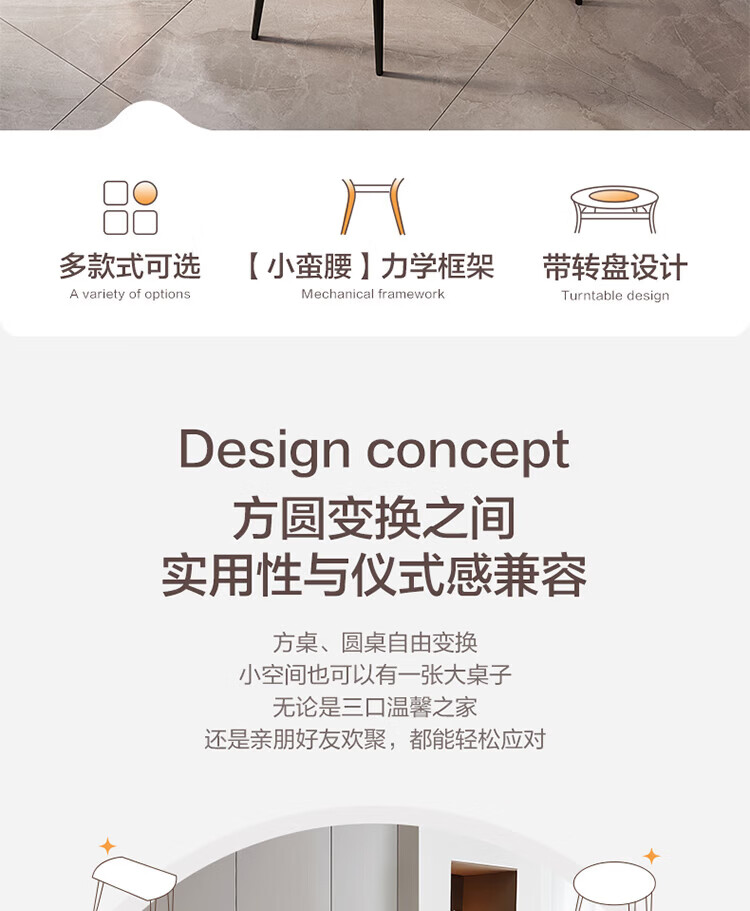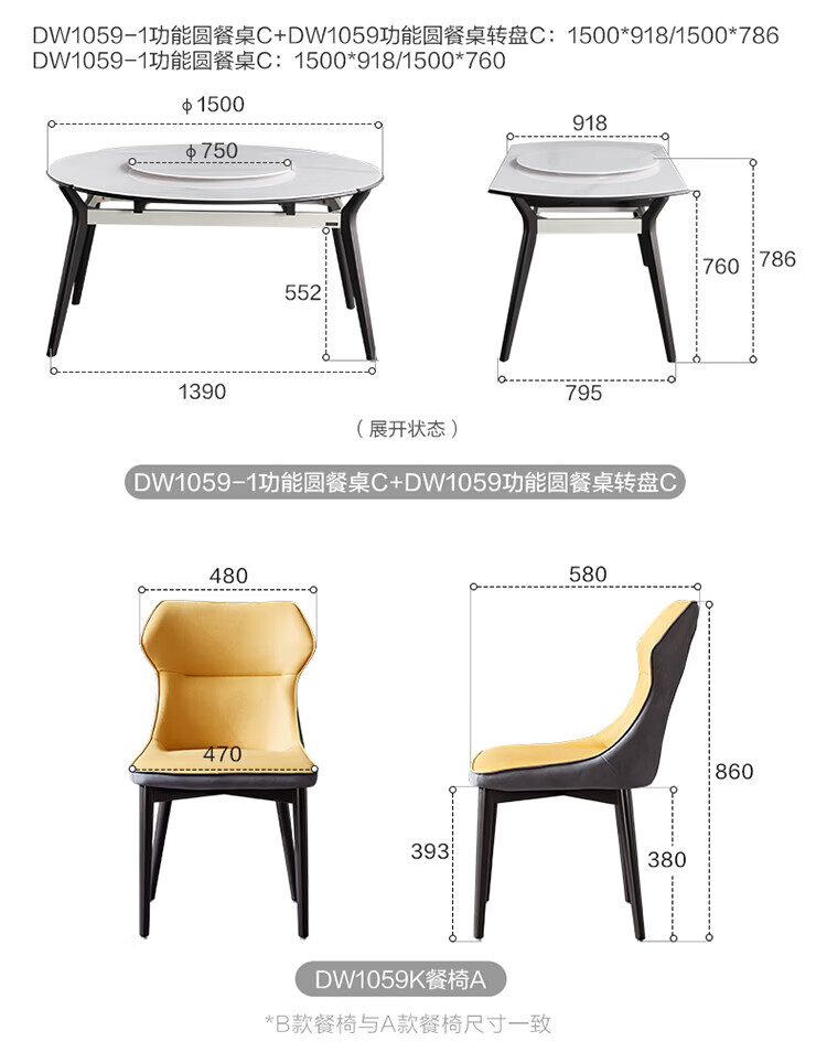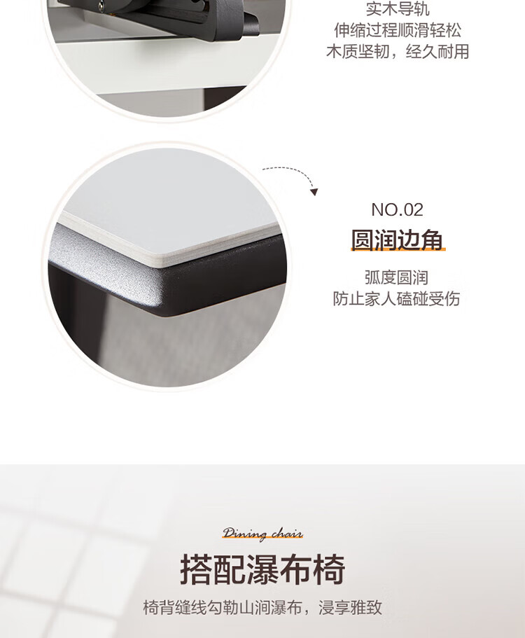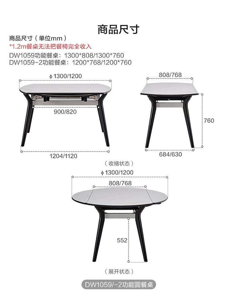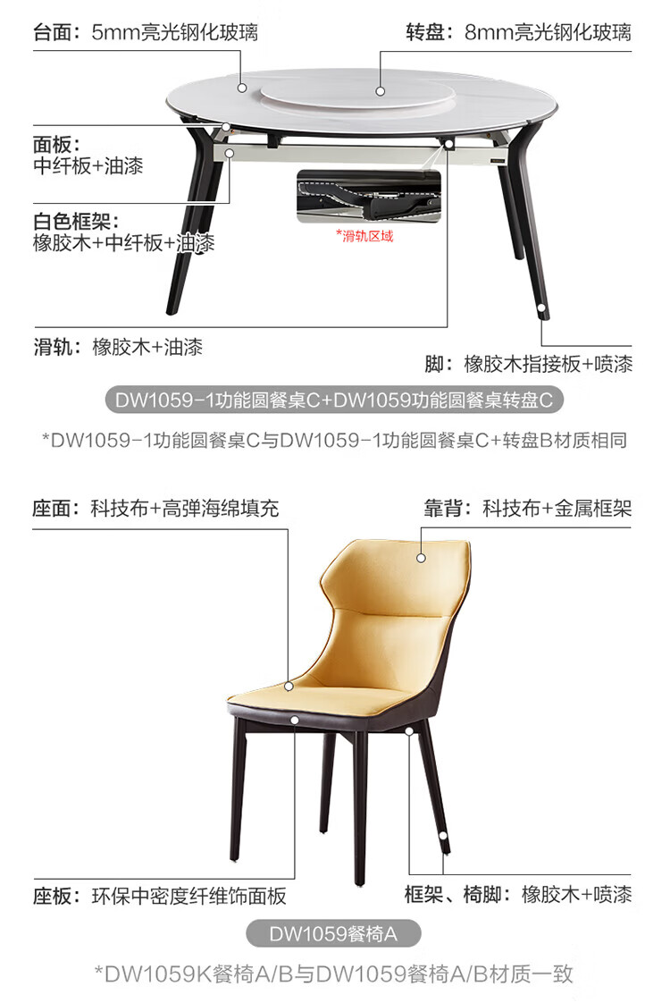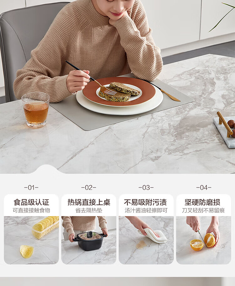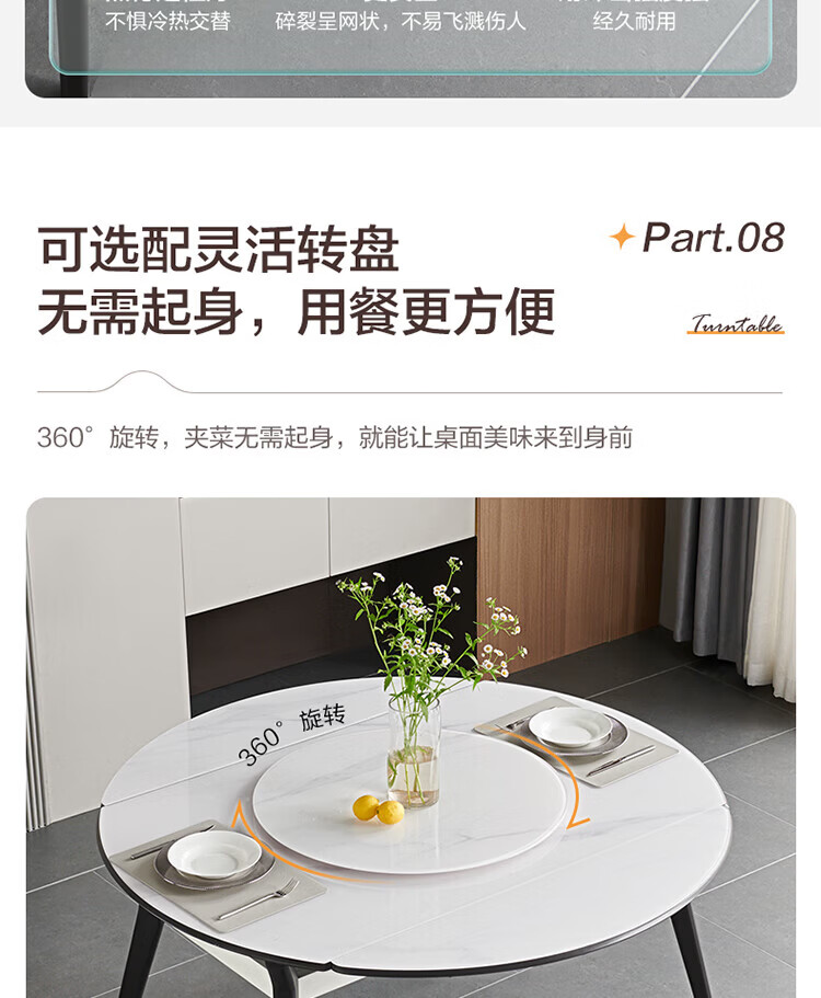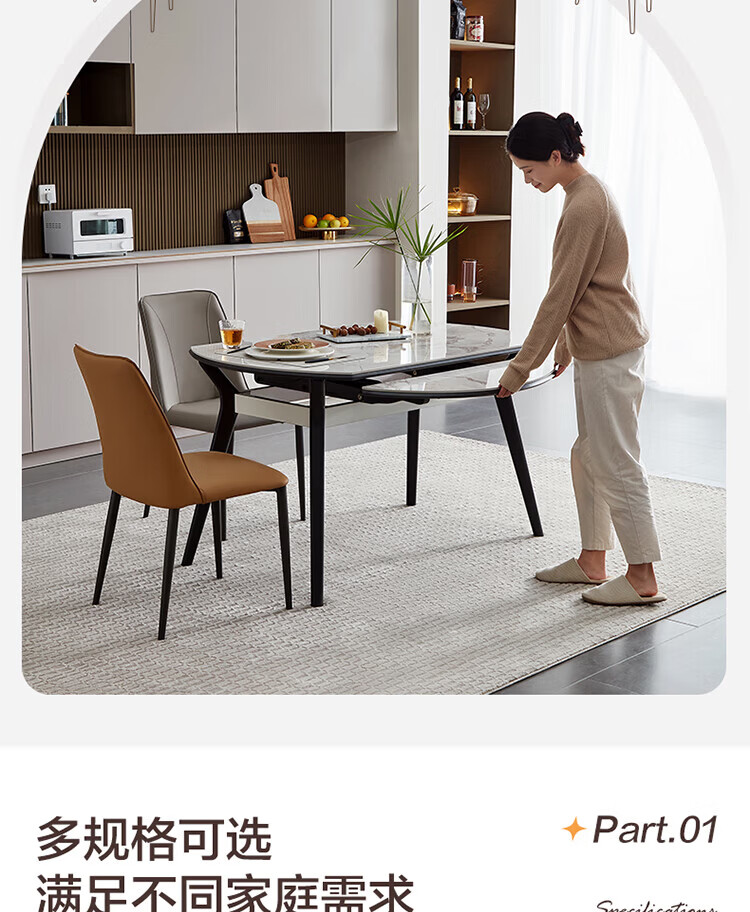 全友家居餐桌现代轻奢家具高端岩板可折叠家用客厅圆餐桌休闲吃饭桌椅 云纹纱|1.5m桌+灰椅*4