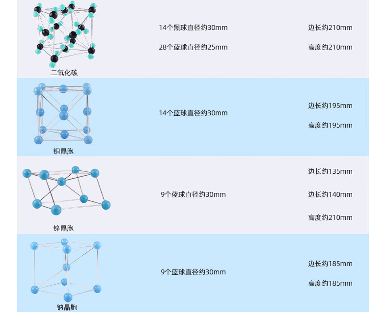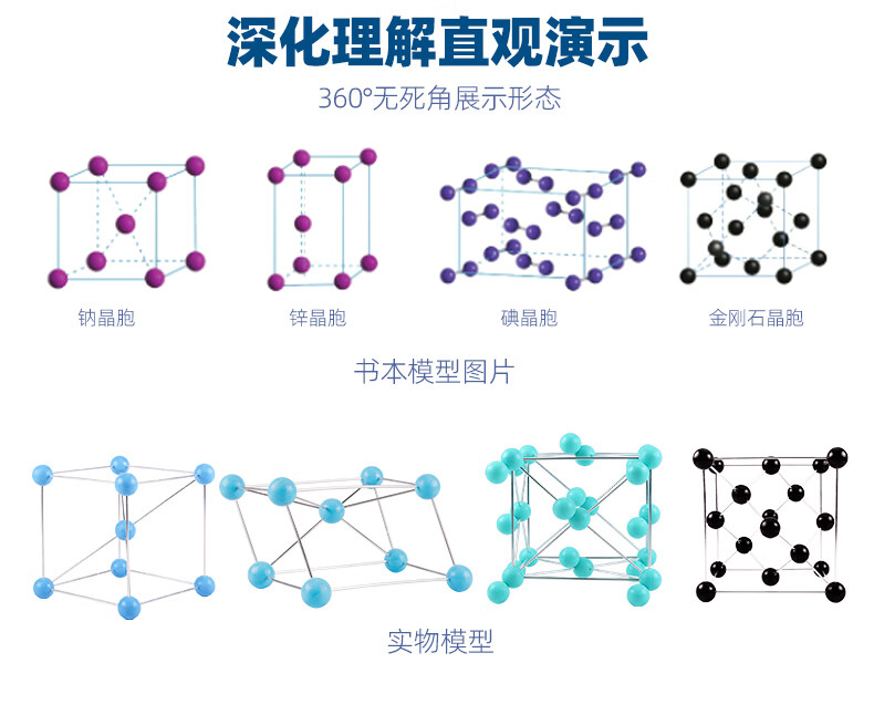 可普(kepu)分子有机结构模型大号锌晶胞上下各9晶胞演示教具金属链接杆一体式立体晶胞模型23mm原子球
