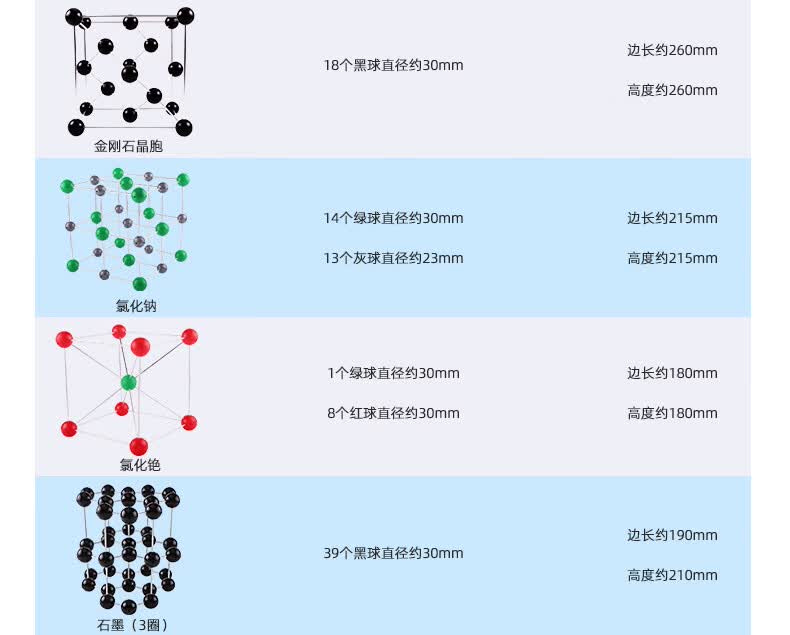 可普(kepu)分子有机结构模型大号镁晶体上下各5个晶胞演示教具金属链接杆一体式立体晶胞模型23mm原子球
