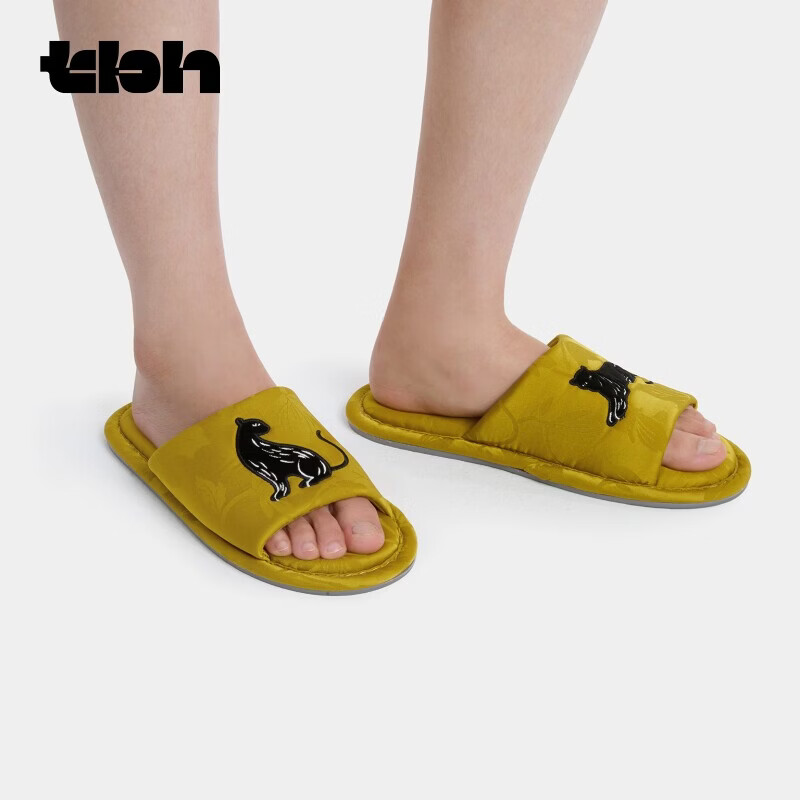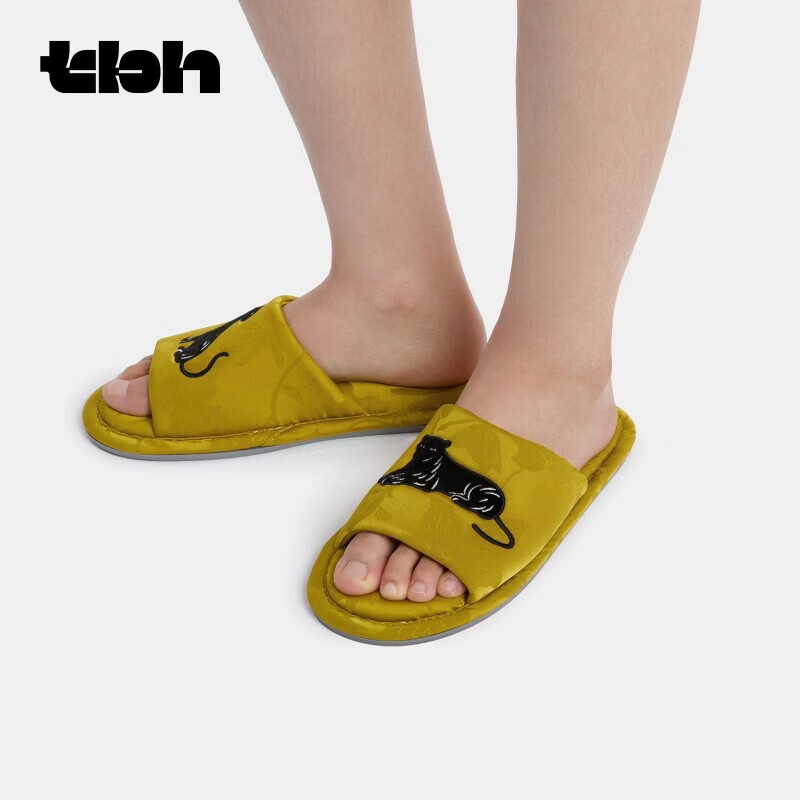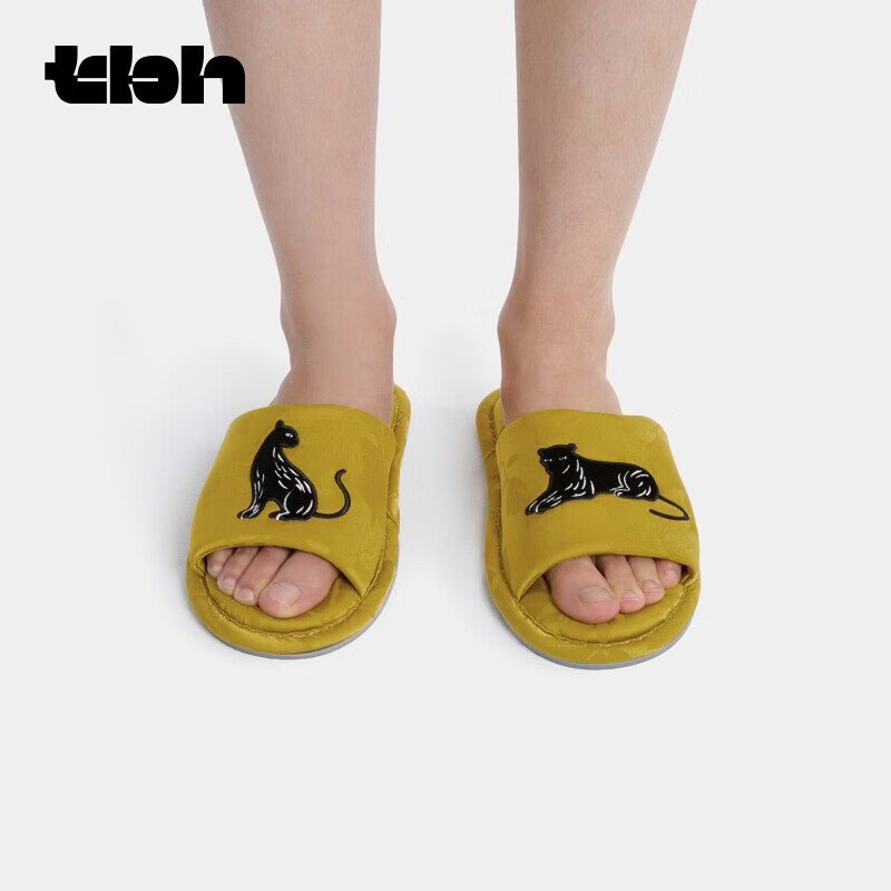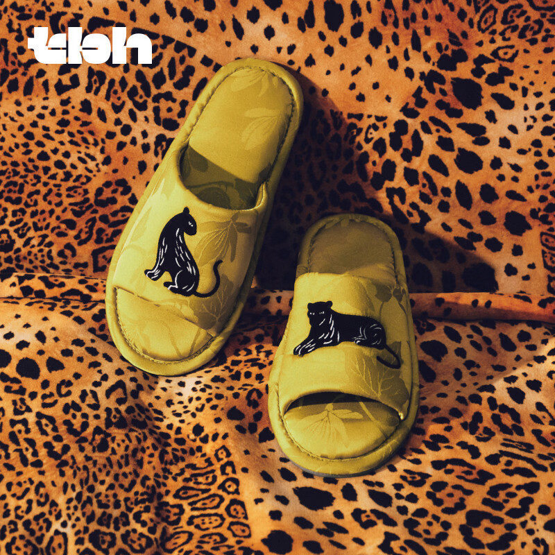 野兽派家居(tbh)都市野兽黑豹提花开口拖可外穿室内家居鞋夏季拖鞋 黑豹提花开口拖鞋 雾蓝 38-39