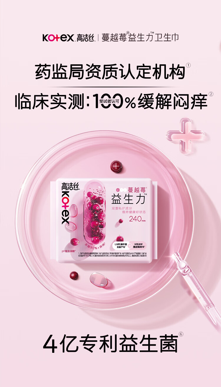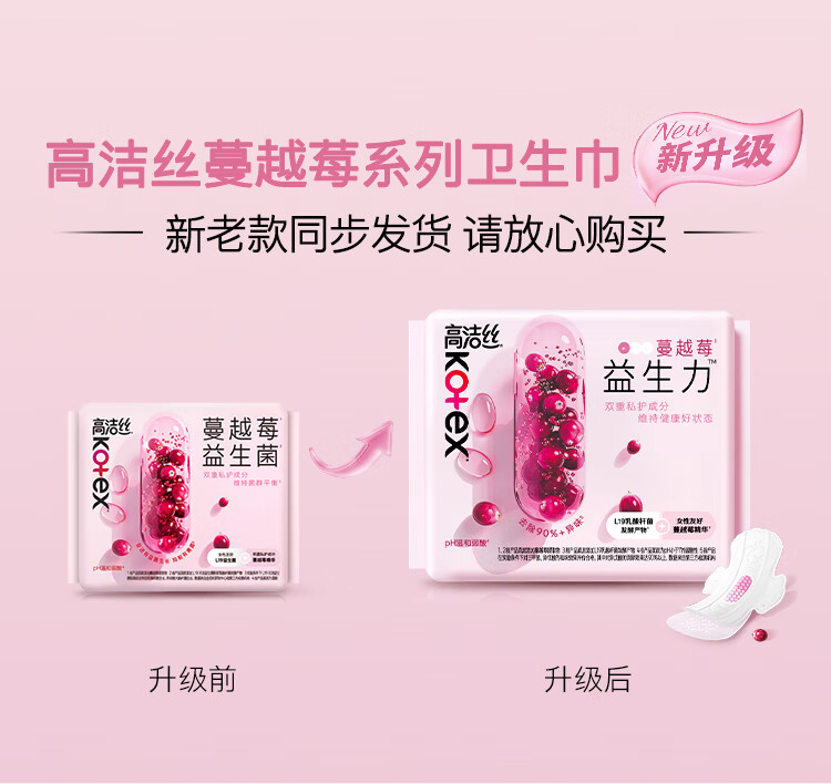 高洁丝【健康祛味】蔓越莓益生力卫生巾240mm8片日用姨妈巾京东自营