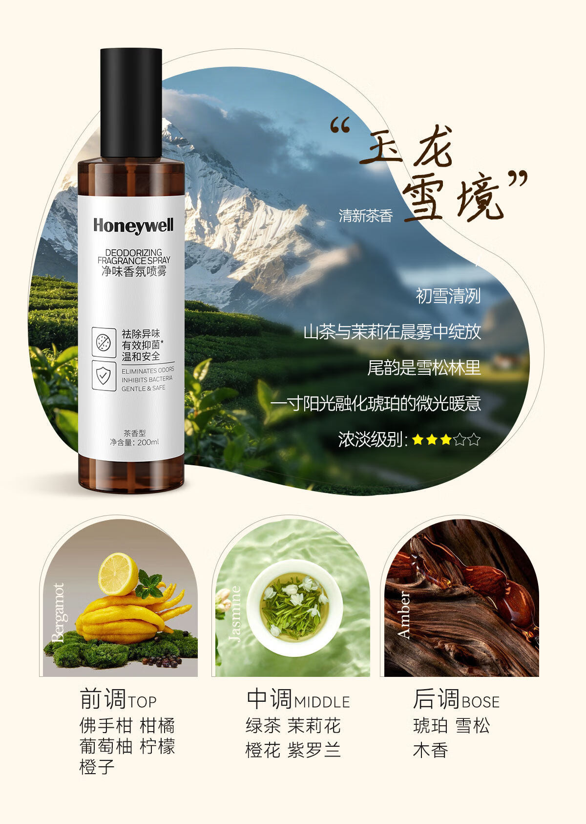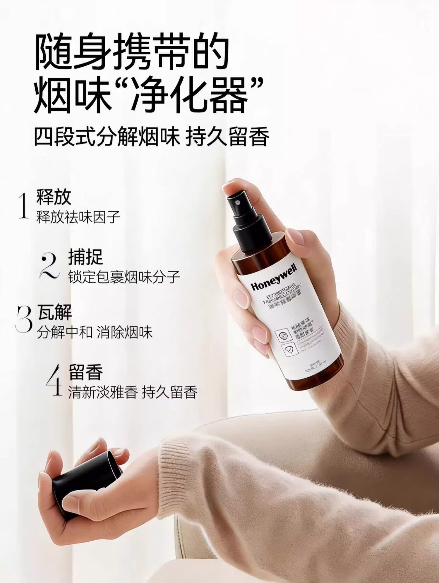 霍尼韦尔(Honeywell)除烟味喷雾室内去除烟味神器衣服除烟除火锅味车内除二手烟味 【200ml茶香调】居家超值装