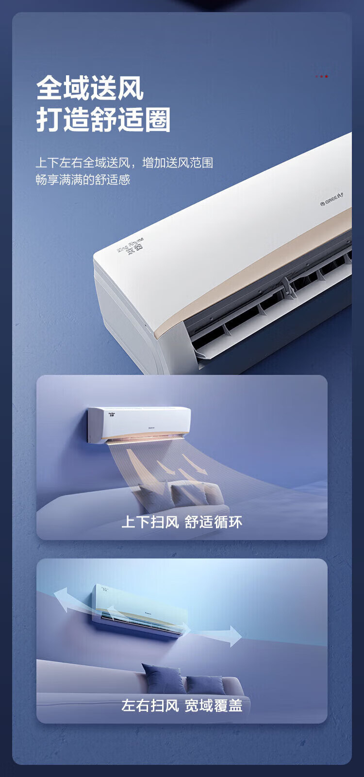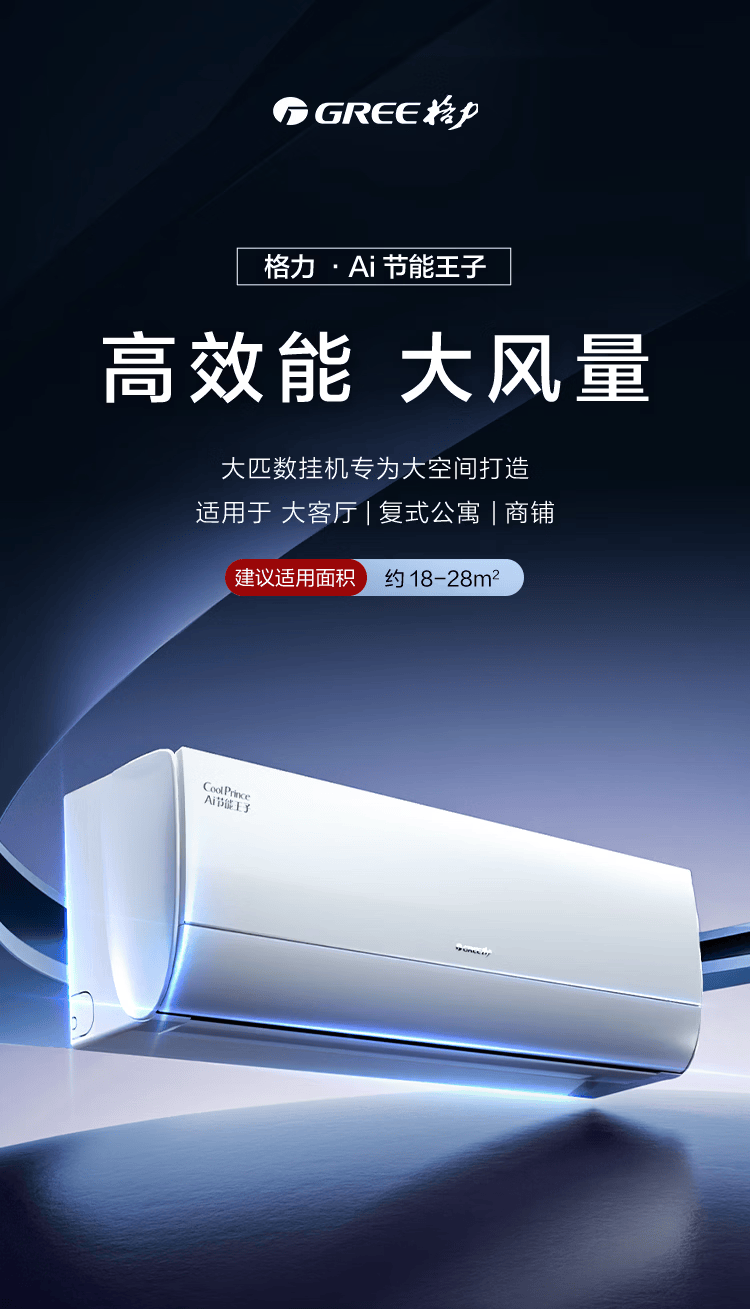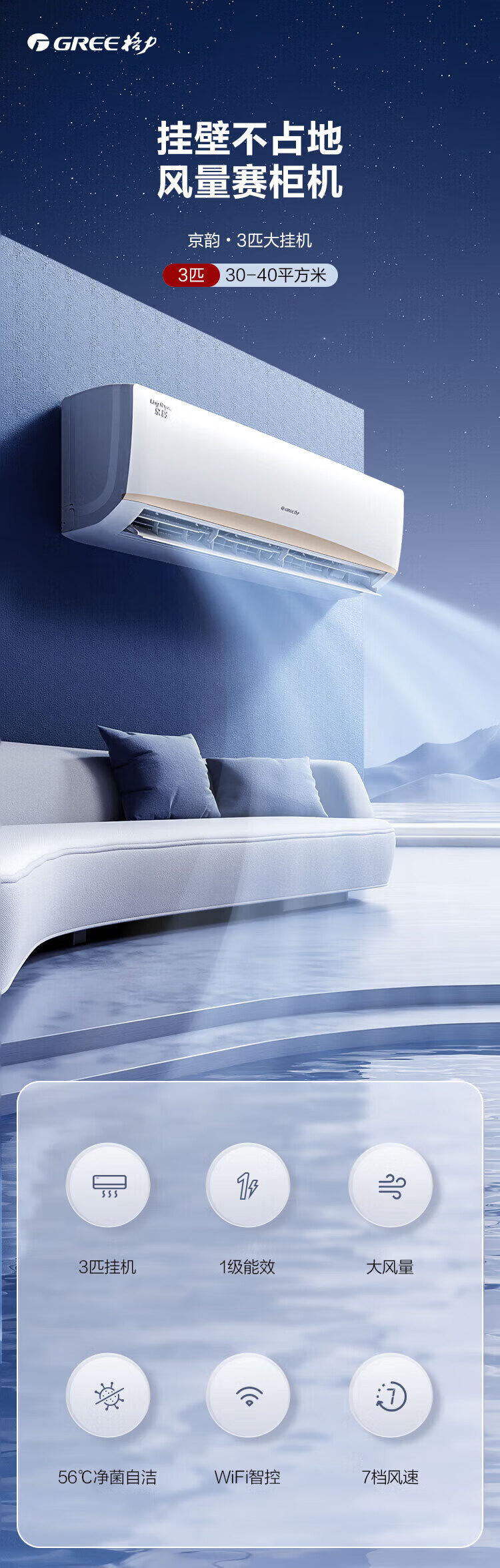 格力空调 AI节能王子/京韵 3匹/2匹 新一级能效 变频冷暖 纯铜管 客厅壁挂式式空调挂机 家电补贴 3匹 京韵新一级能效