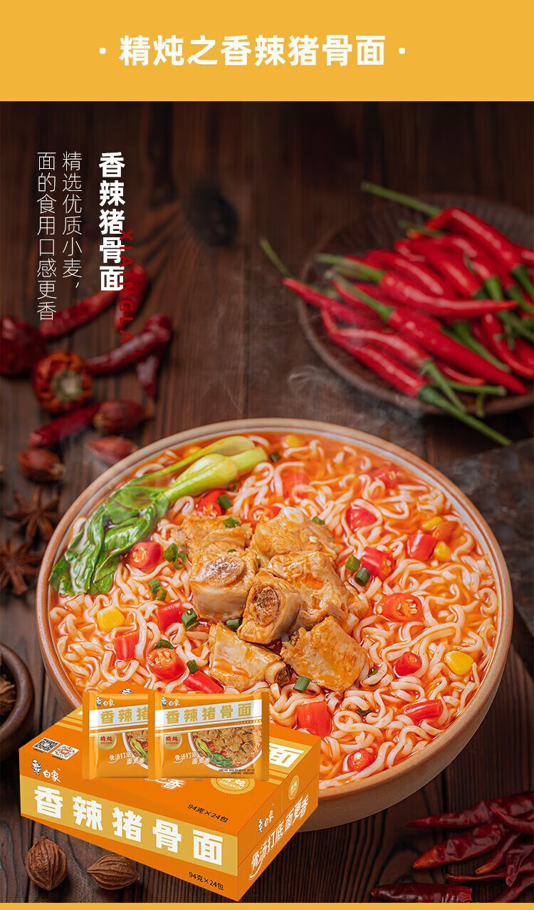 白象 方便面原汁猪骨面精炖24袋整箱装混合口味泡面夜宵香辣猪骨面 【整箱30包】麻辣牛肉味泡面