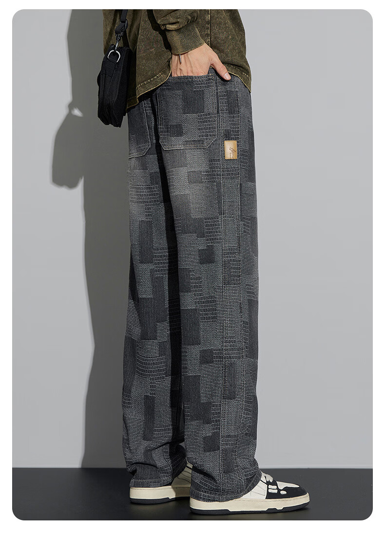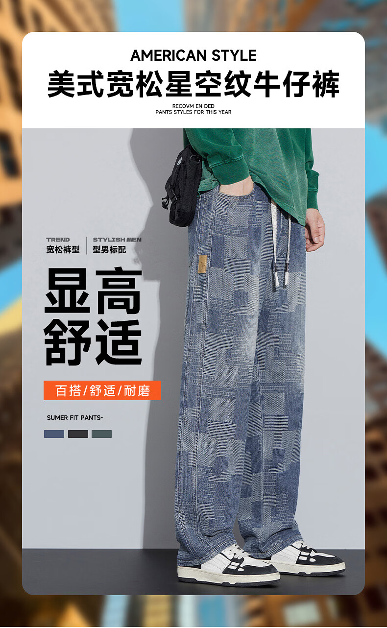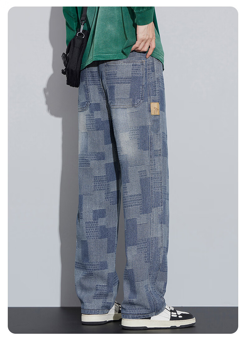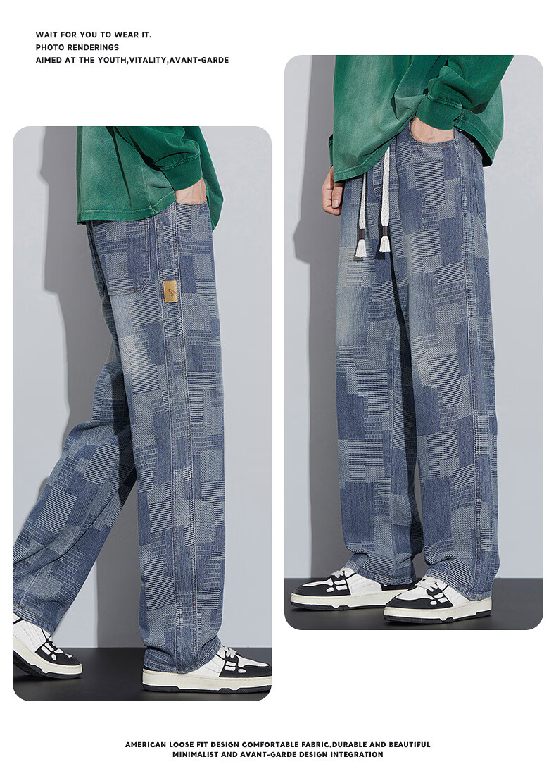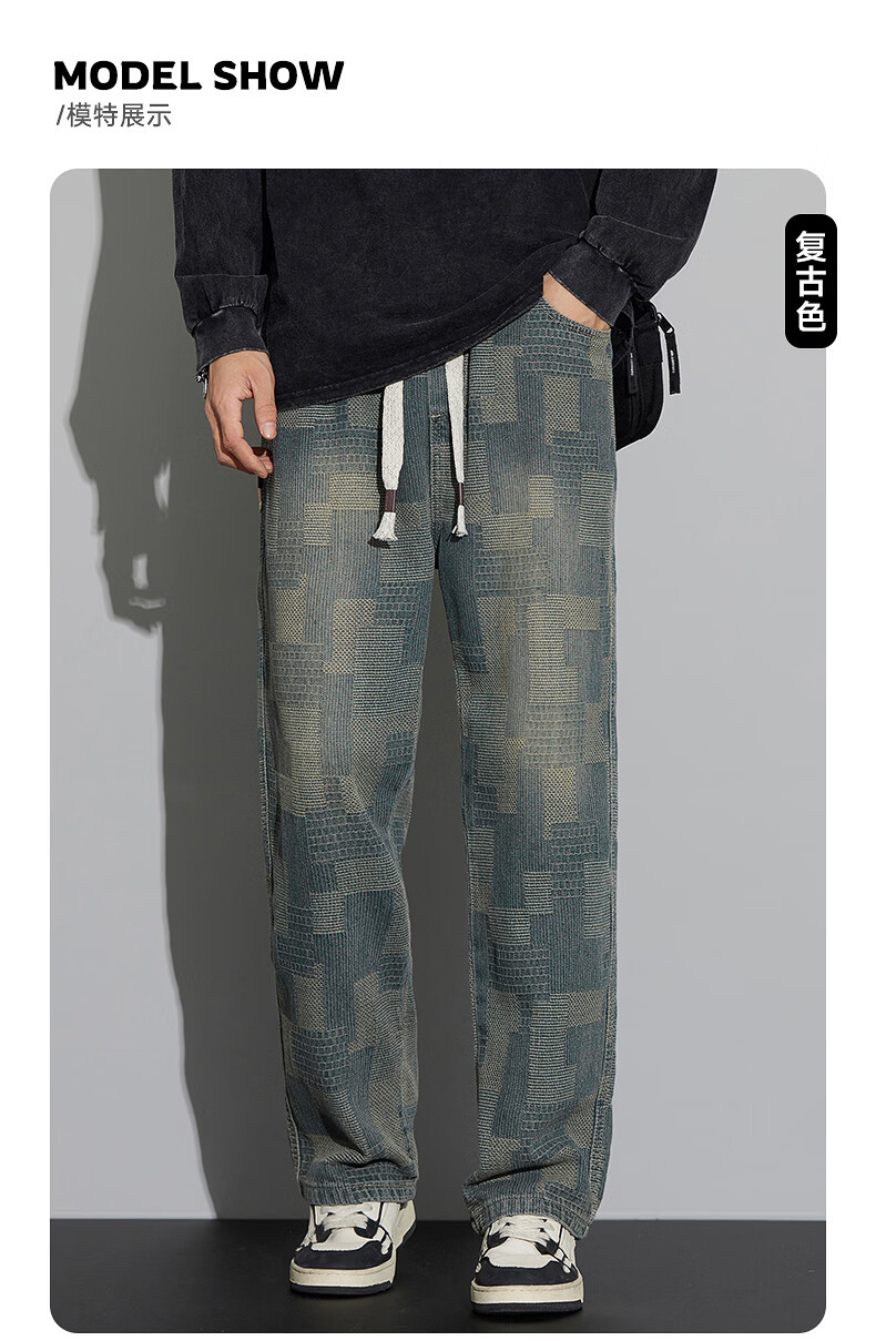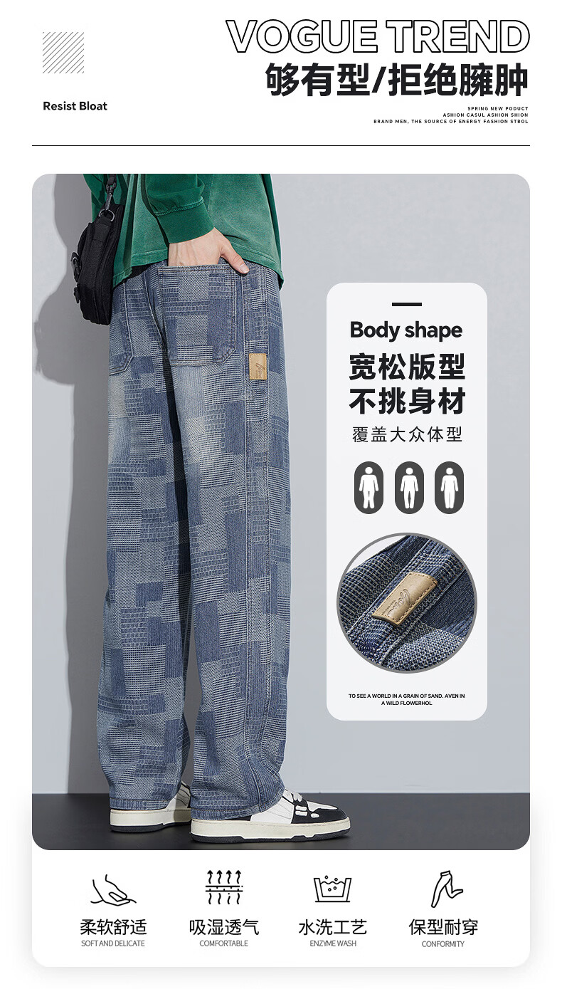 真维斯美式复古牛仔裤男士春夏新款阔腿长裤子宽松百搭港风休闲裤子男款 怀旧蓝 M