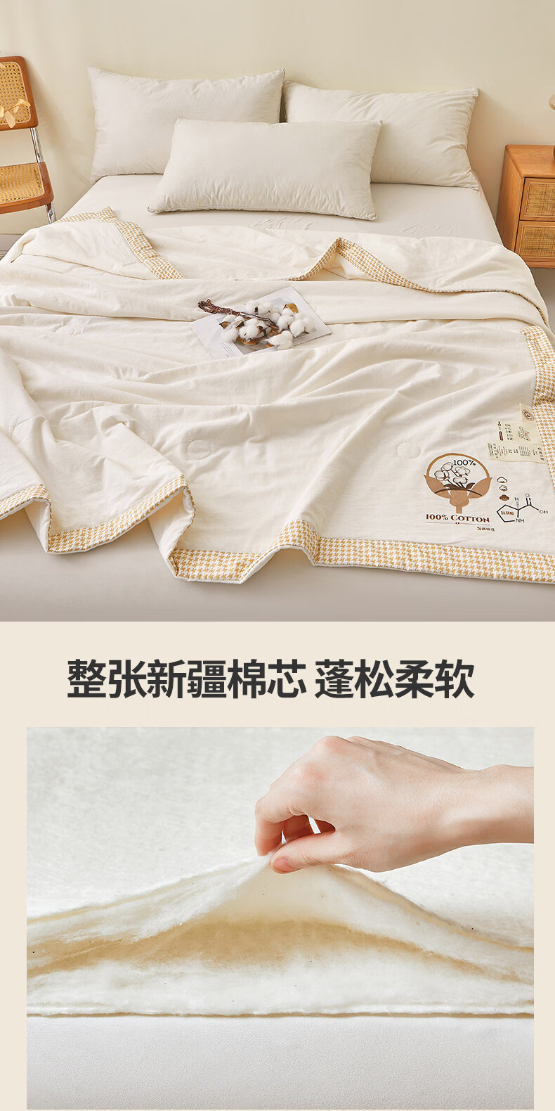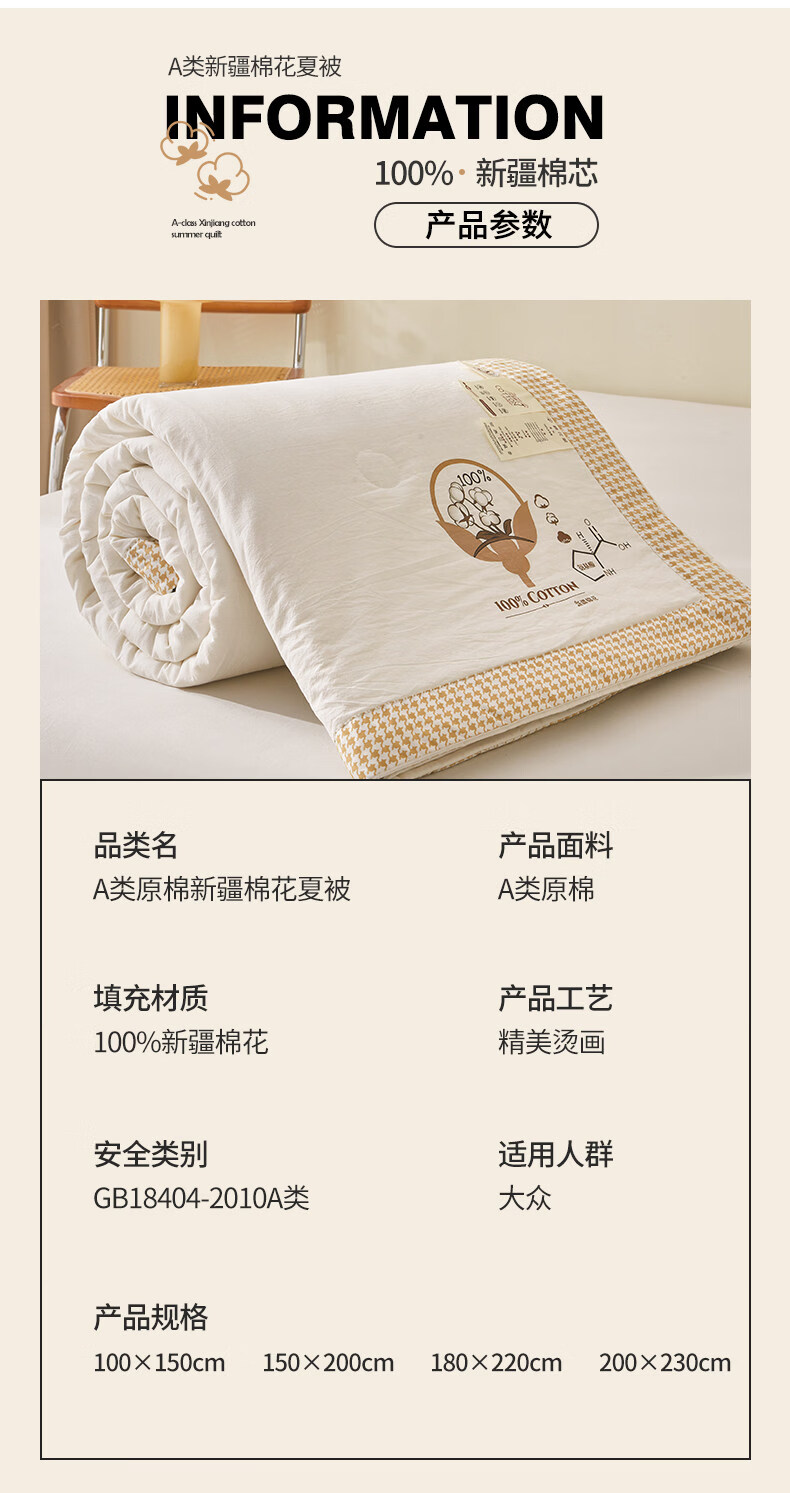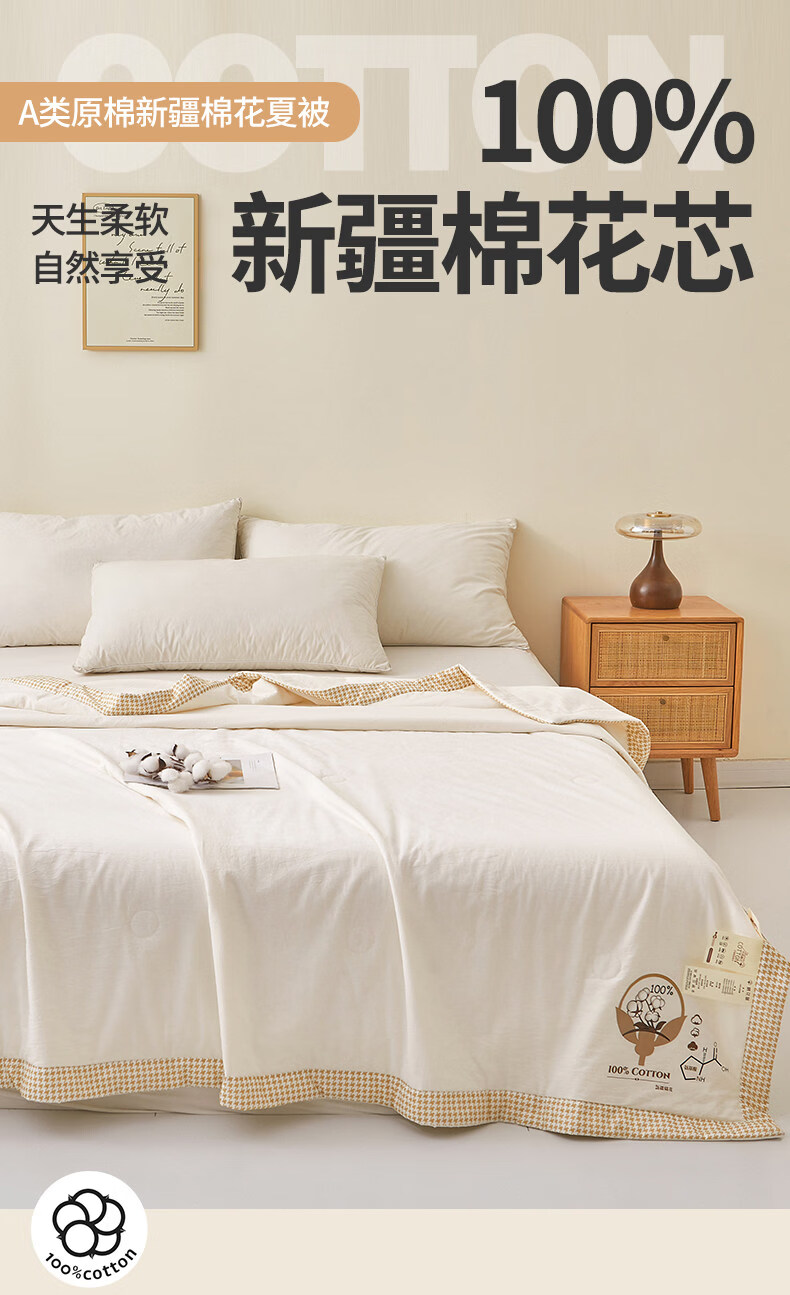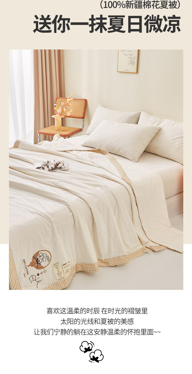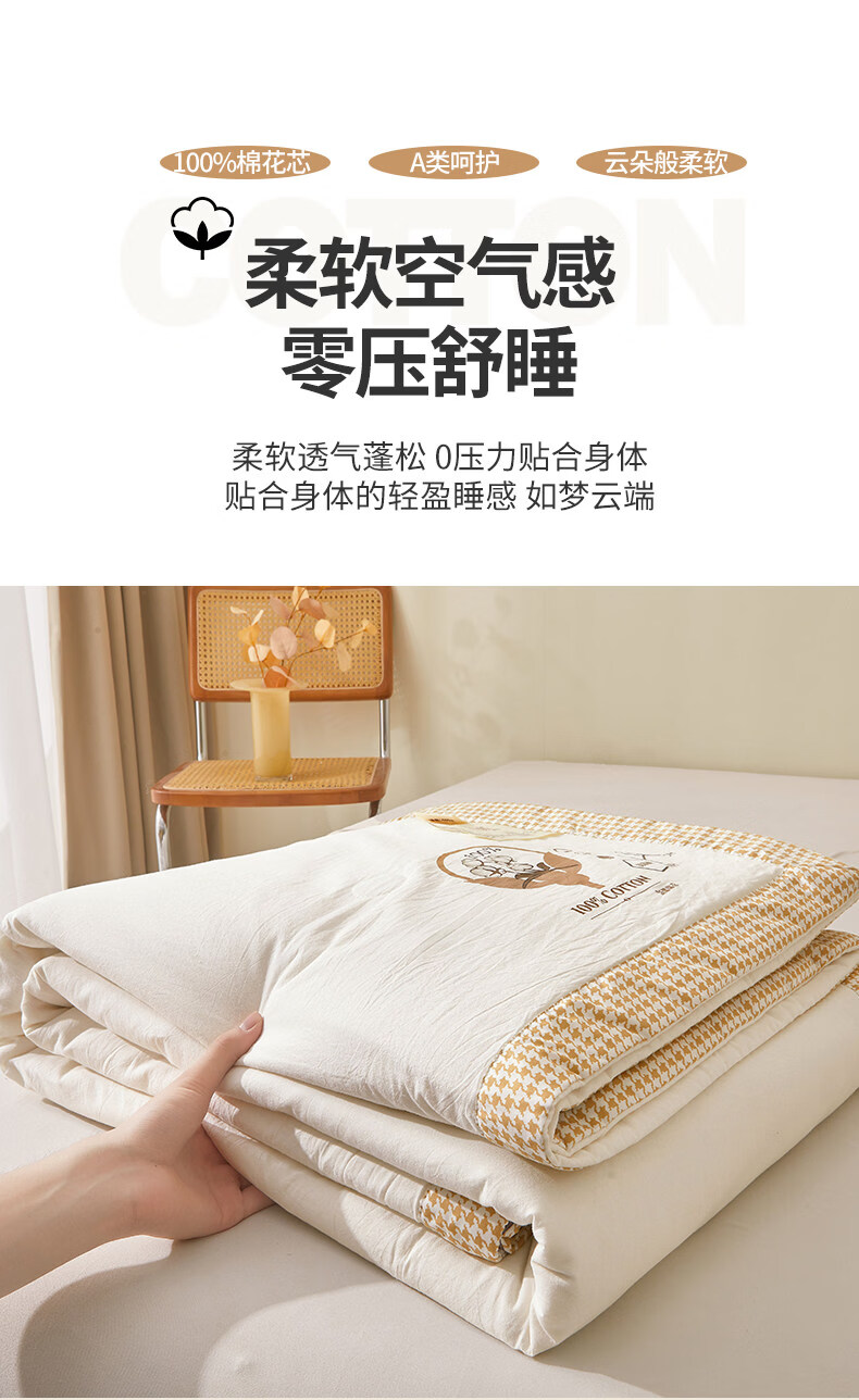阿尔皮纳袋鼠里外全棉新疆棉花被夏凉被纯棉空调被子被芯夏季学生宿舍单人被褥 棉语-云白【100%新疆棉可机洗水洗越洗越柔软】 儿童夏凉被:100x150cm【100%新疆棉花填充更柔软】