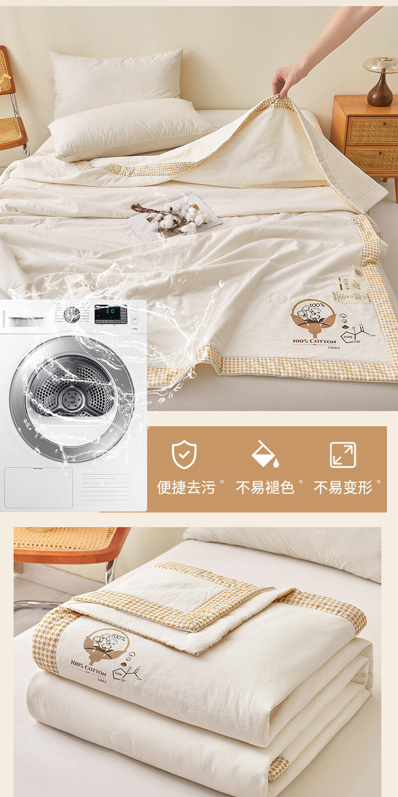 阿尔皮纳袋鼠A类提花泡泡纱大豆纤维夏被可机洗水洗空调被夏凉被单双人薄被子 奶油白【超柔大提花透气不压身】 110*150cm单夏被