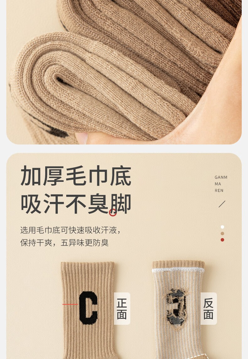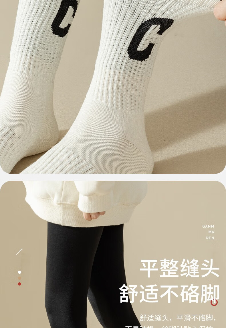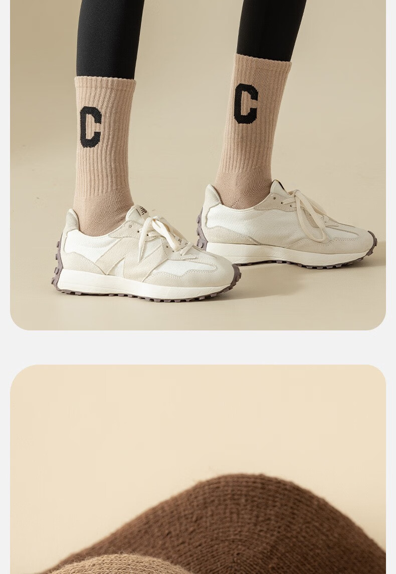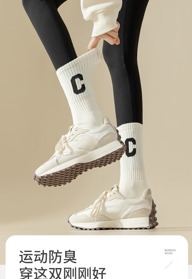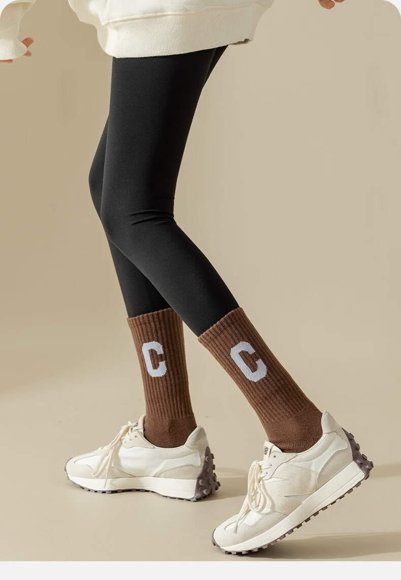 欧蓝薇雅加厚字母毛圈中筒袜少女士秋冬保暖月子居家长袜子休闲百搭潮袜子 颜色随机色 1双 均码