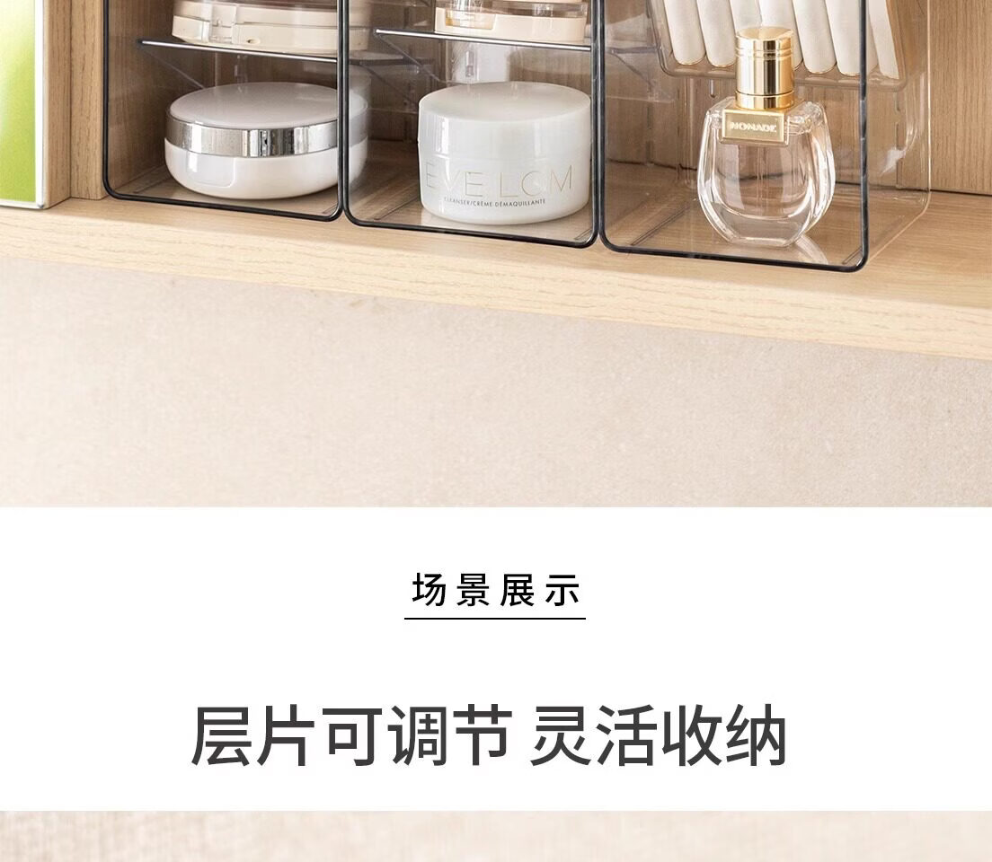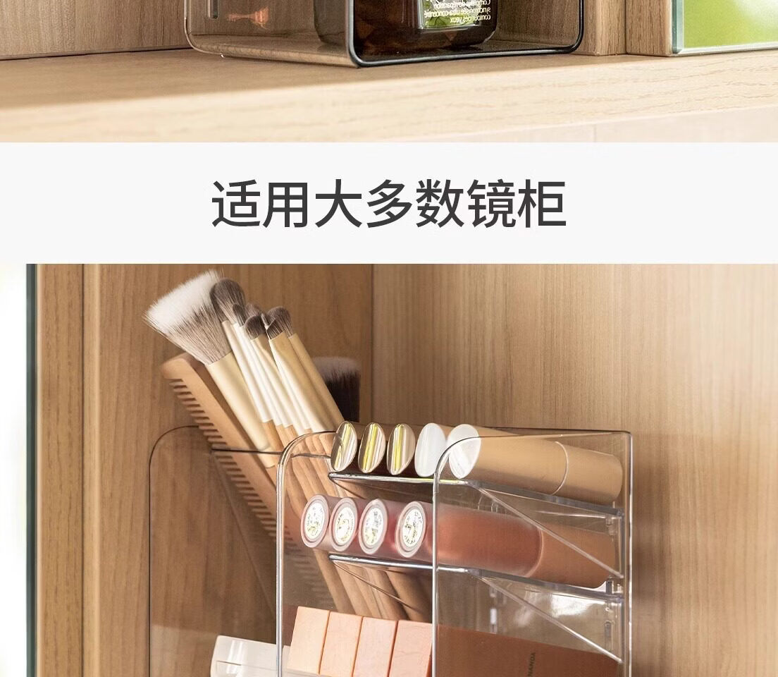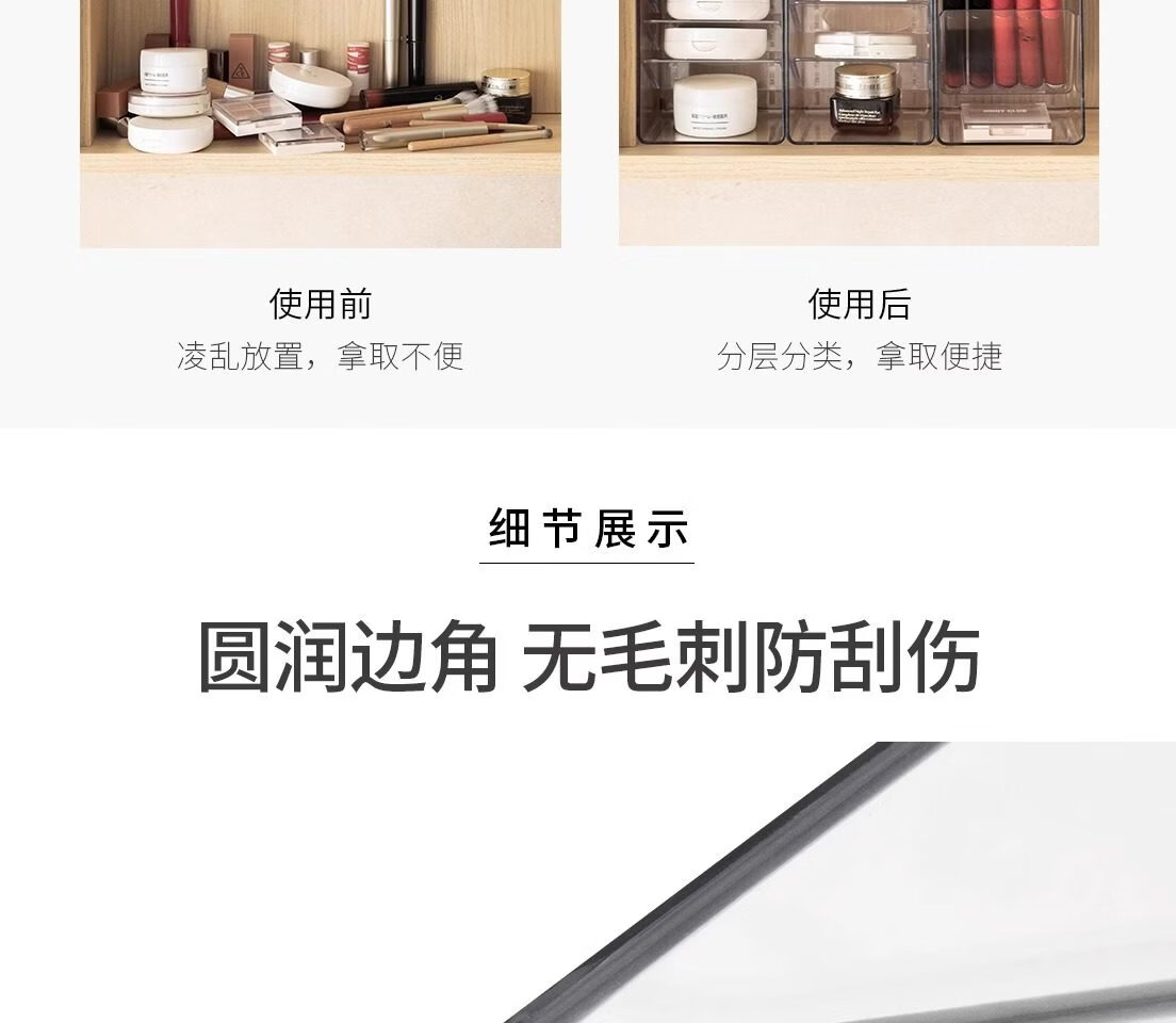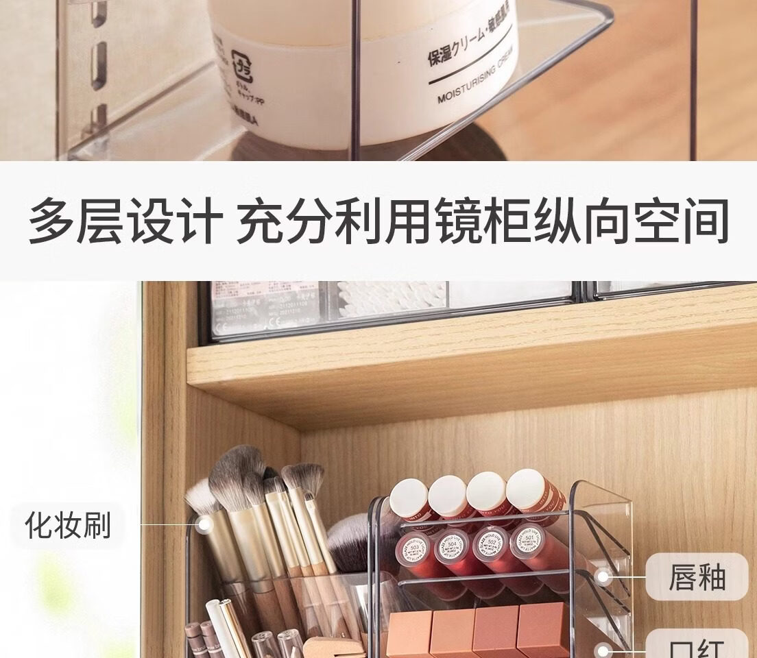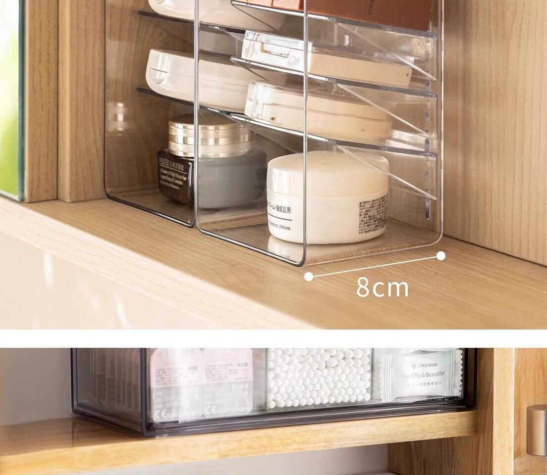 吱凡日本镜柜收纳盒化妆品杂物整理盒透明抽屉式桌面整理盒装口红面膜 主图款【抽屉分隔收纳盒】 1个装