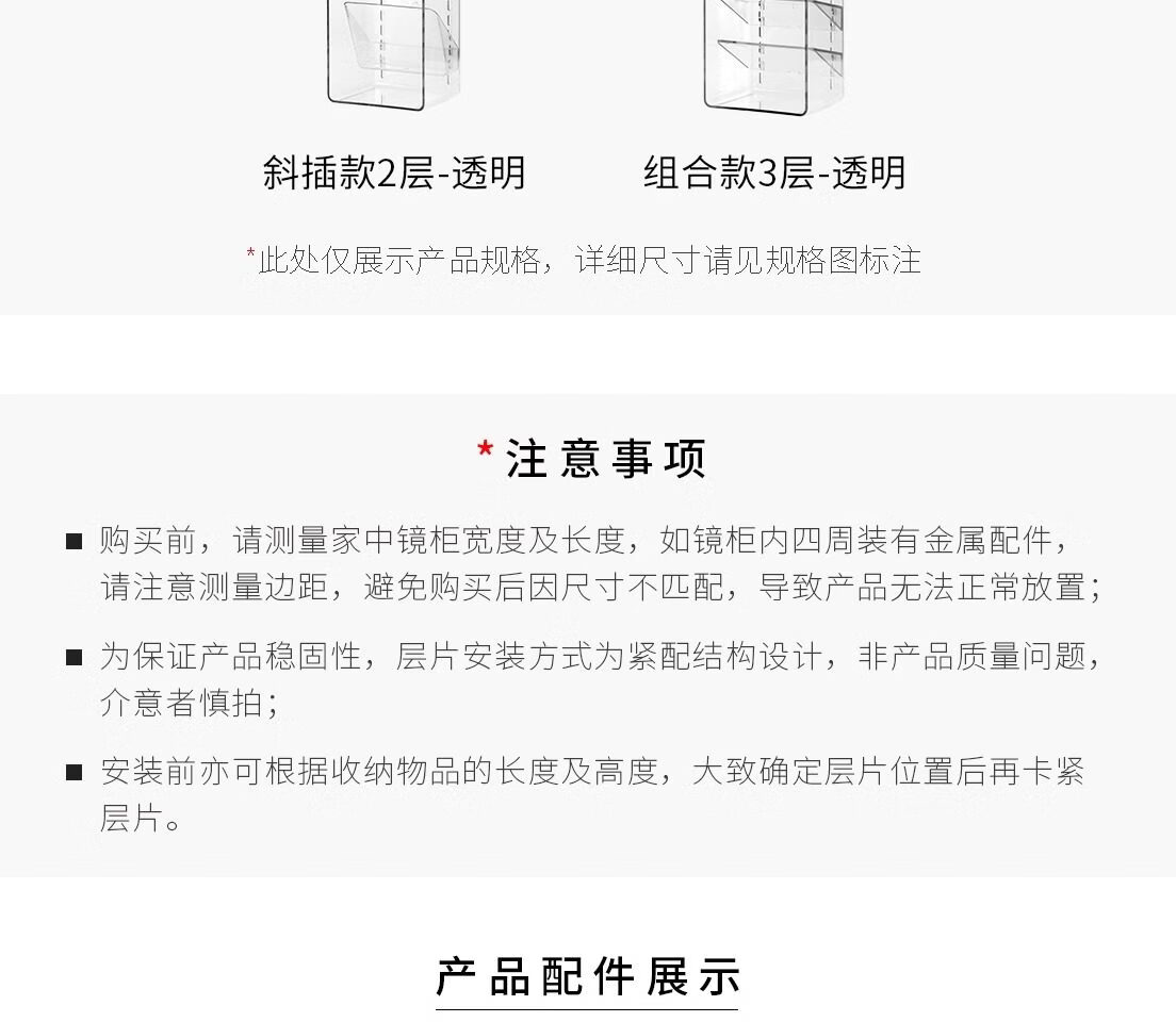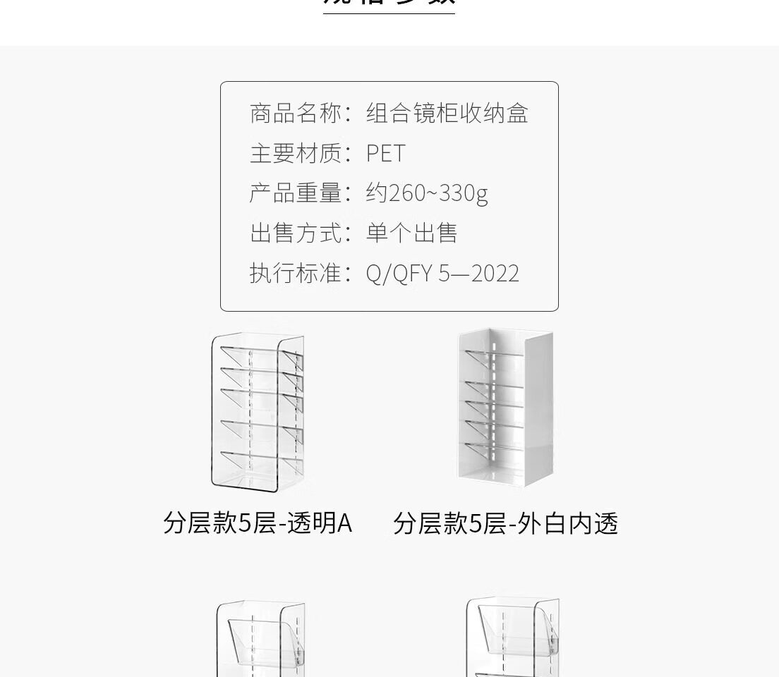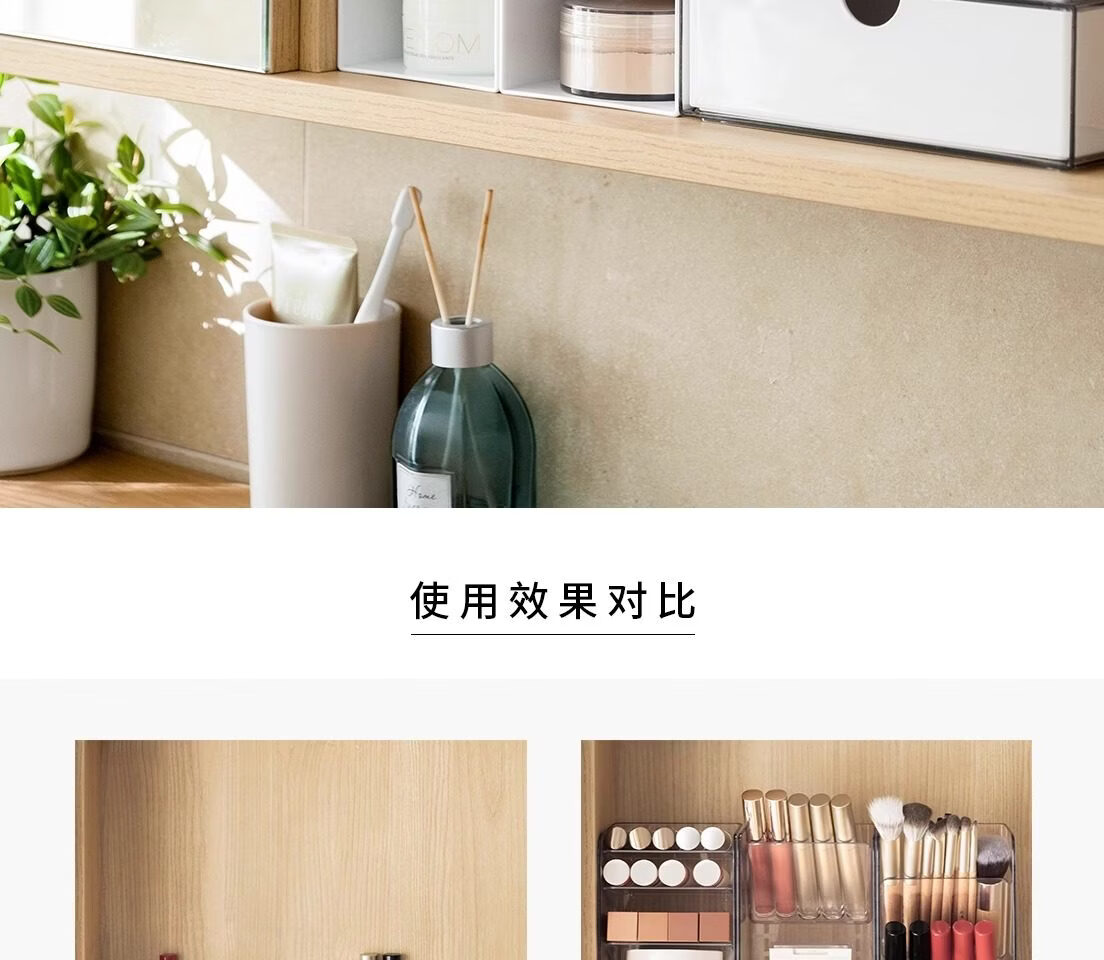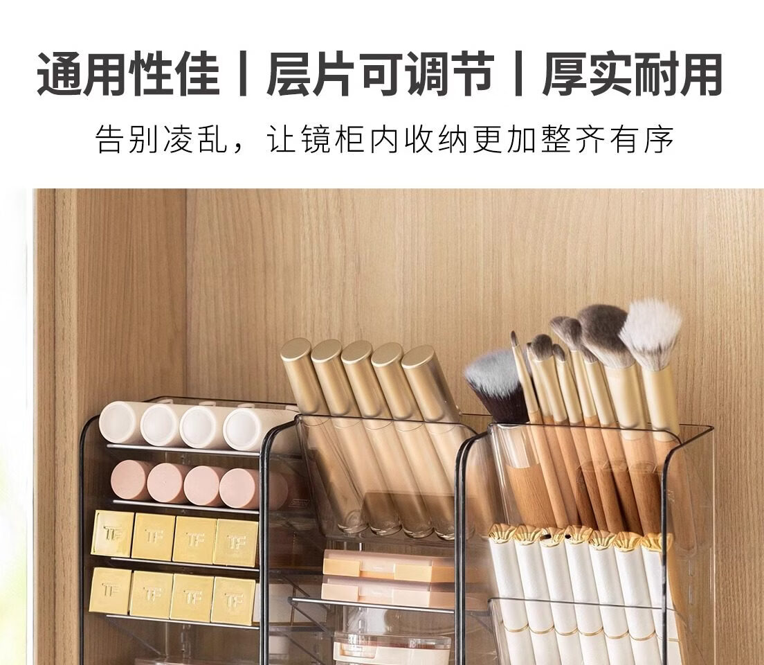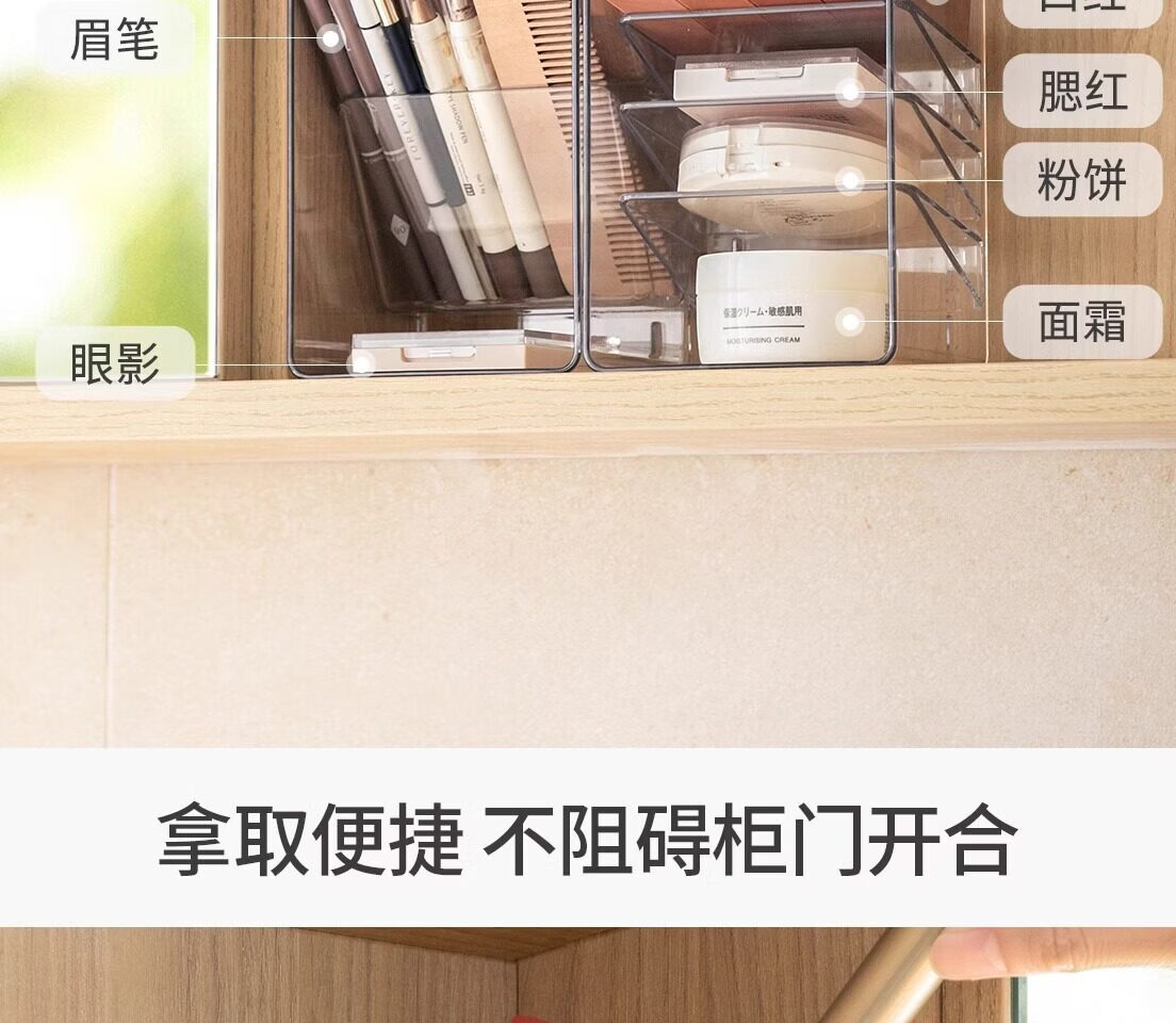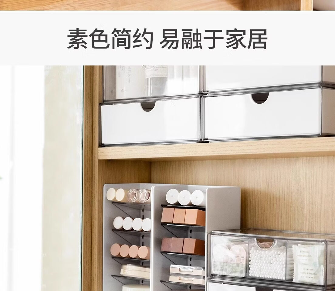 吱凡日本镜柜收纳盒化妆品杂物整理盒透明抽屉式桌面整理盒装口红面膜 主图款【抽屉分隔收纳盒】 1个装
