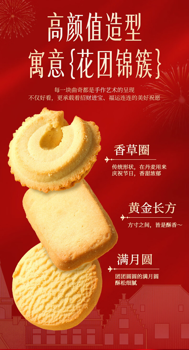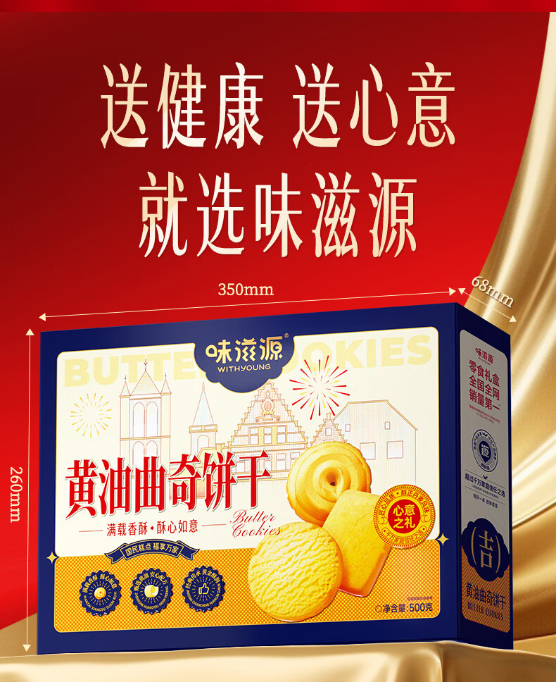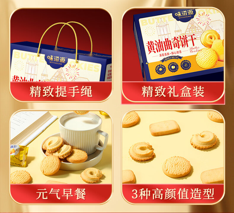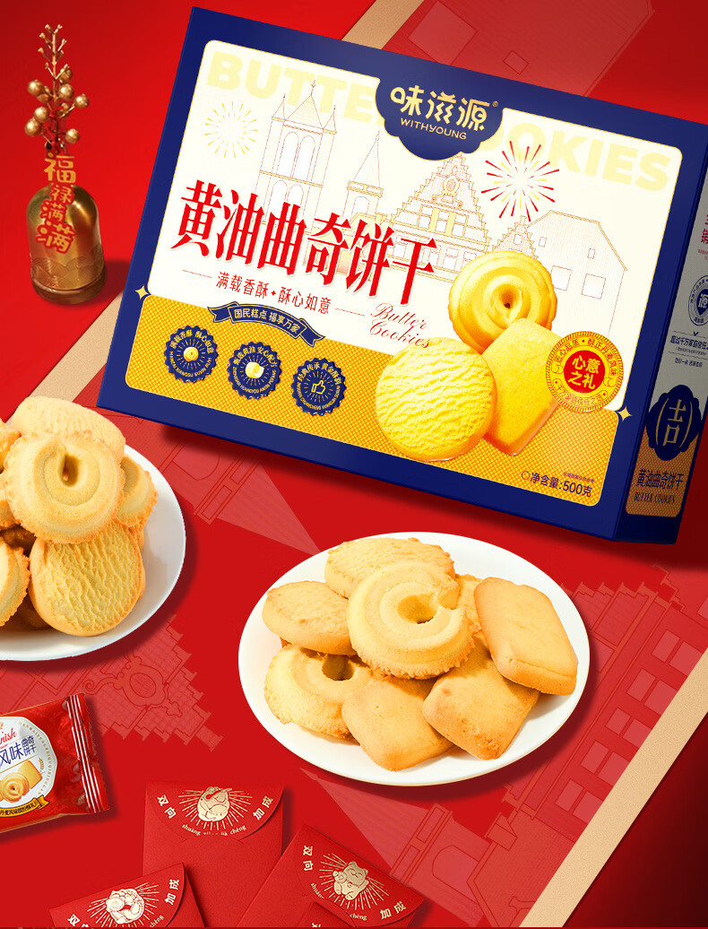 味滋源丹麦风味曲奇饼干营养早餐代餐饼干办公室休闲零食小吃Q 黄油曲奇饼干礼盒500g*2盒
