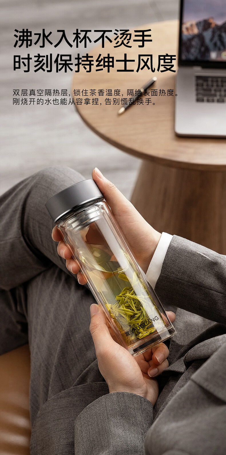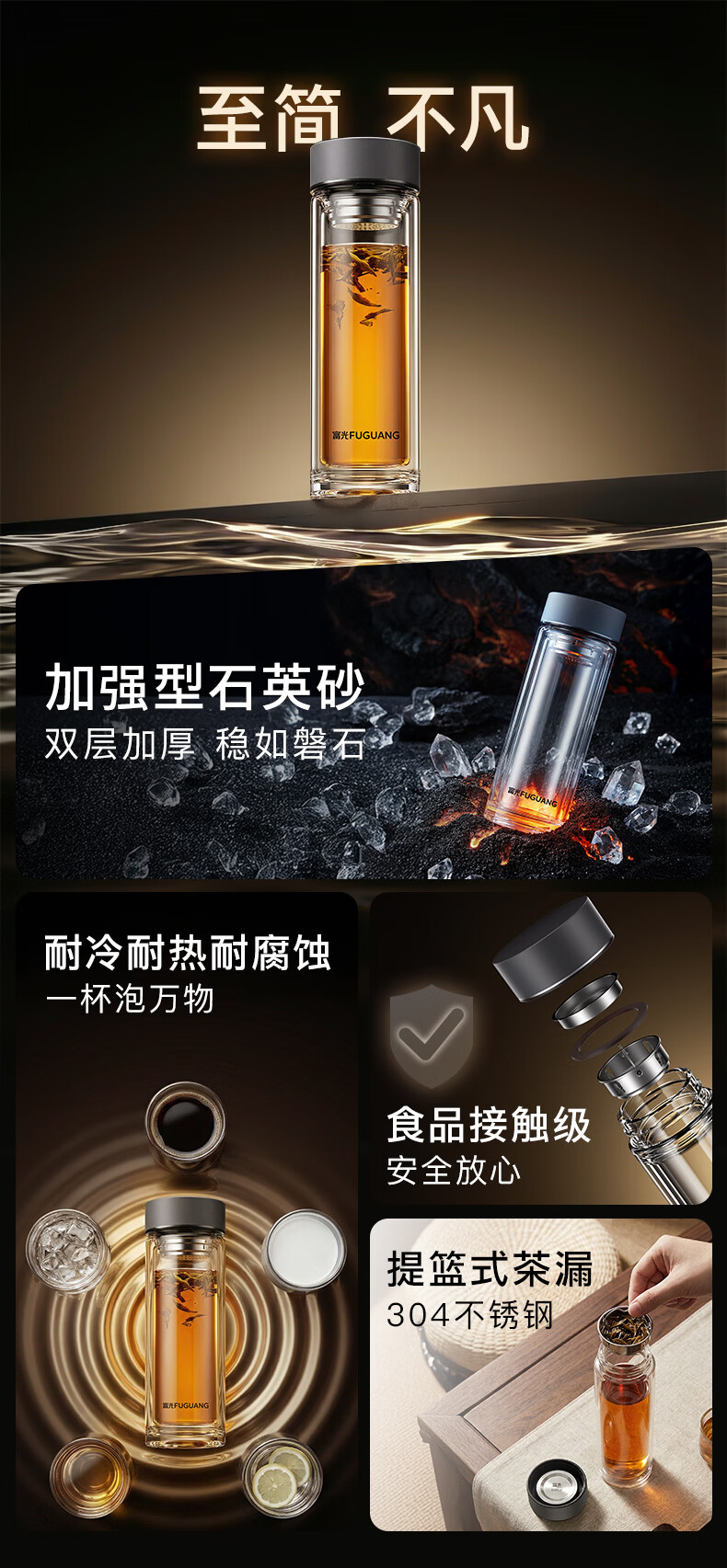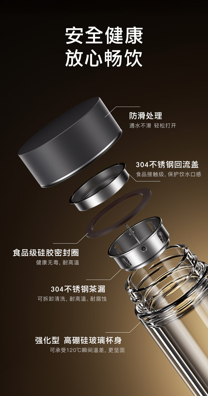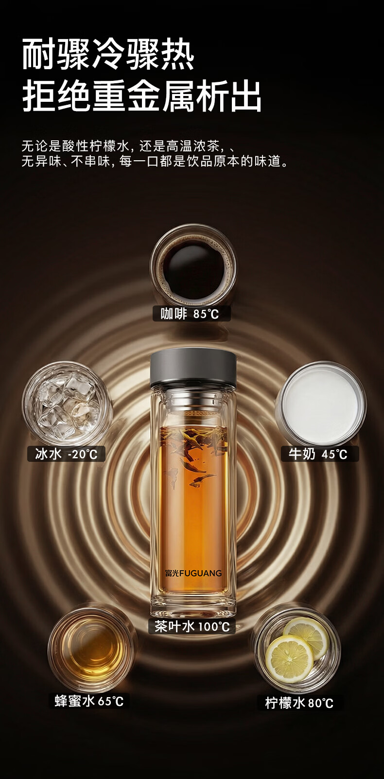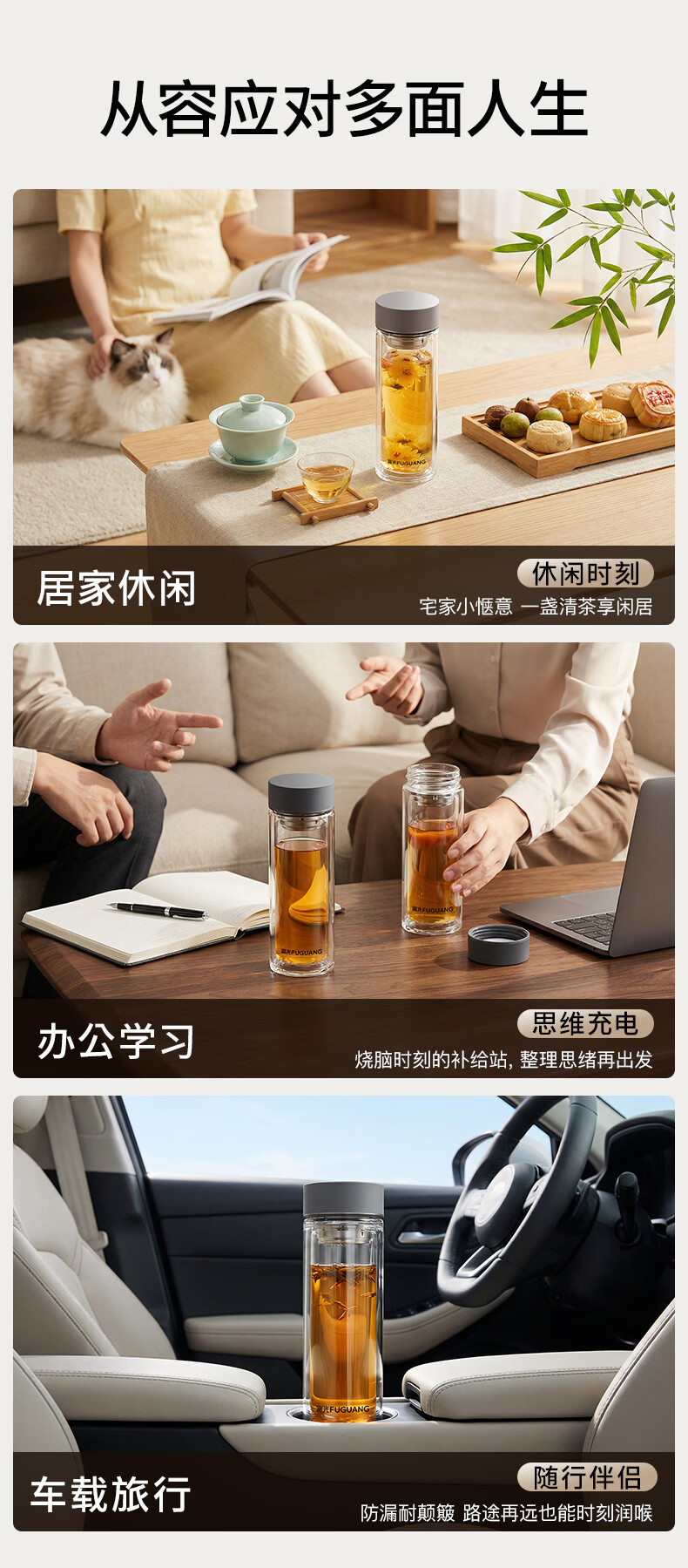 富光双层玻璃杯高硼硅 便携办公隔热杯 茶水分离泡茶杯 双层加厚便携防烫 400ML瓷釉蓝