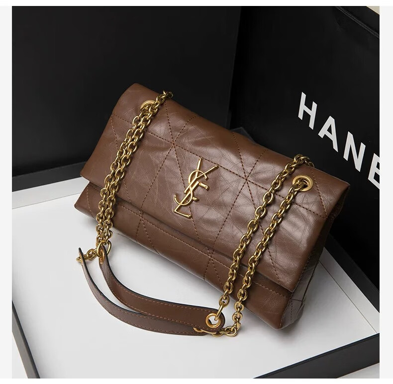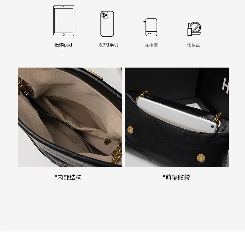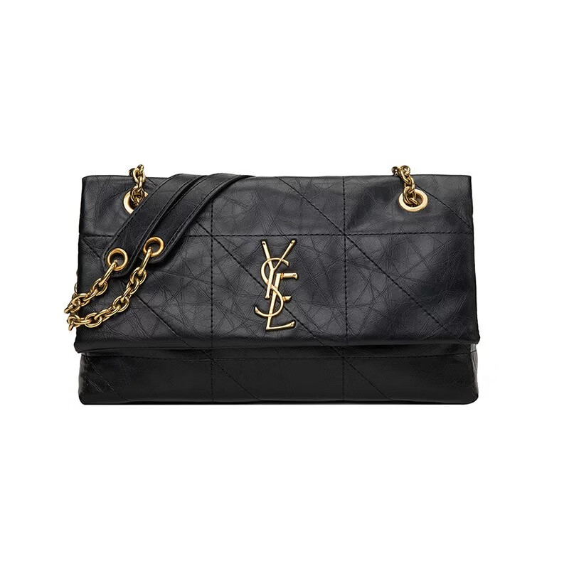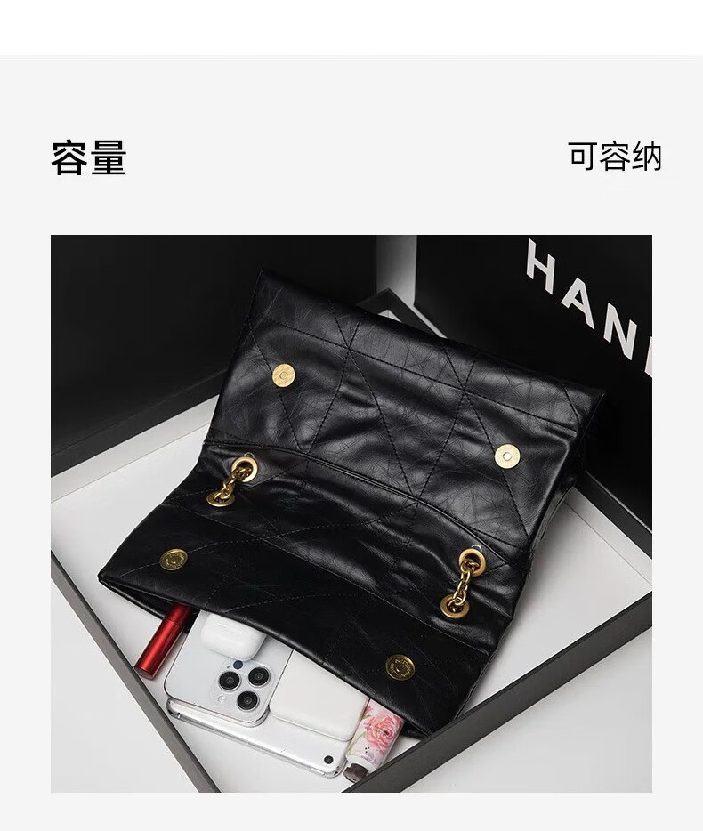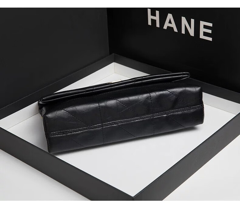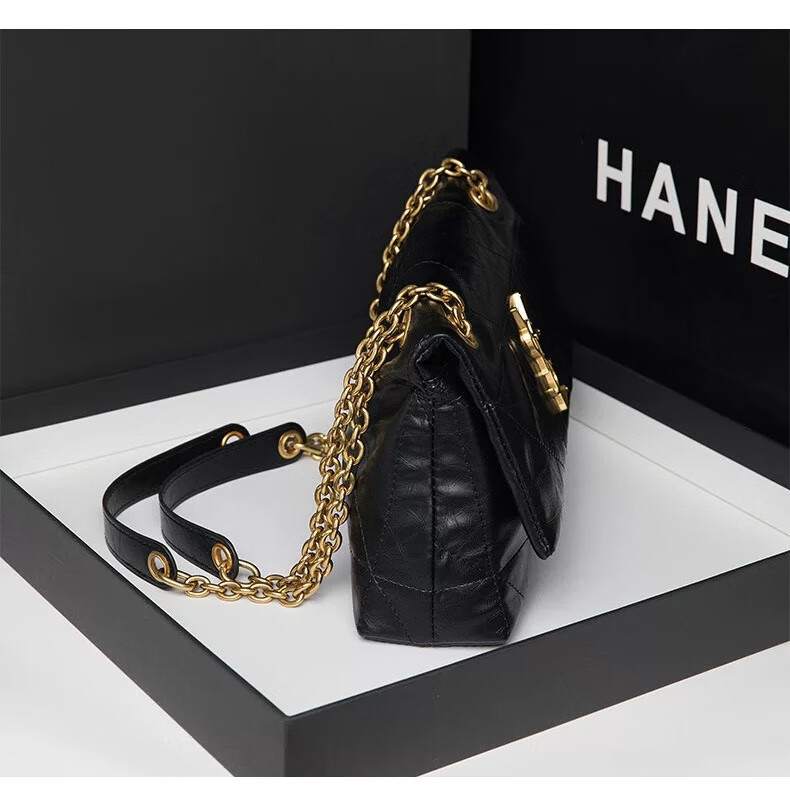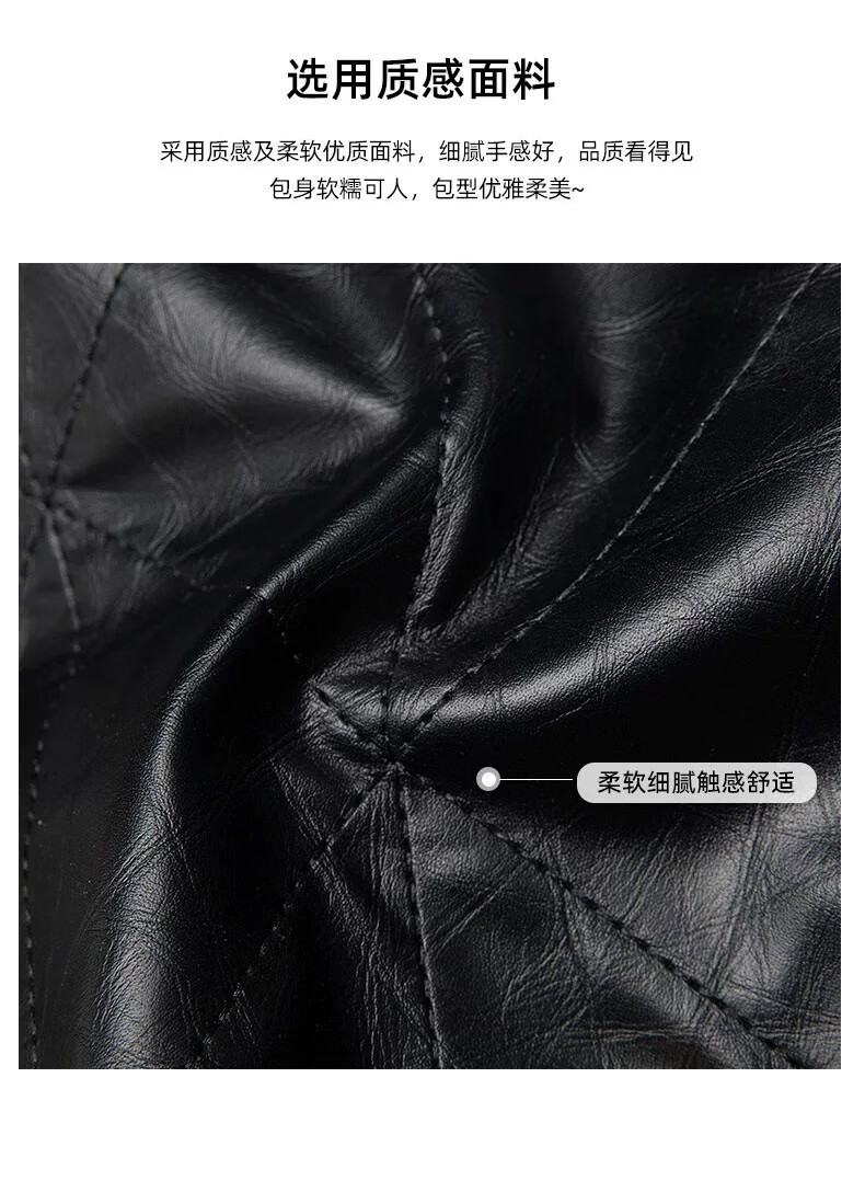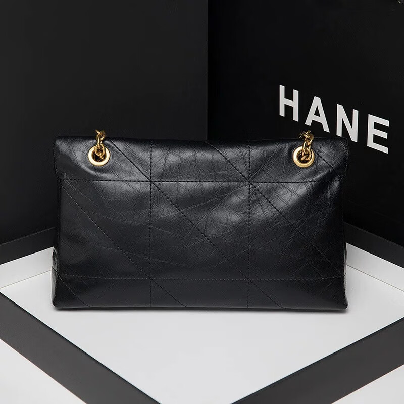 复古林杨树链条包包2025菱格新款斜挎包真皮女包单肩腋下女士 黑色现货