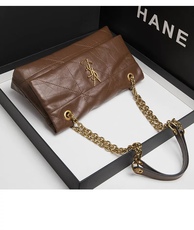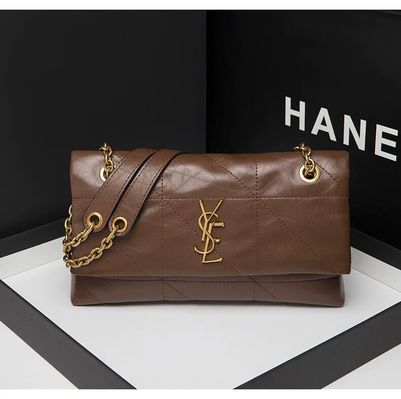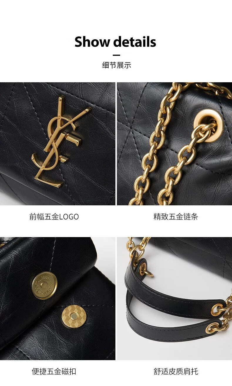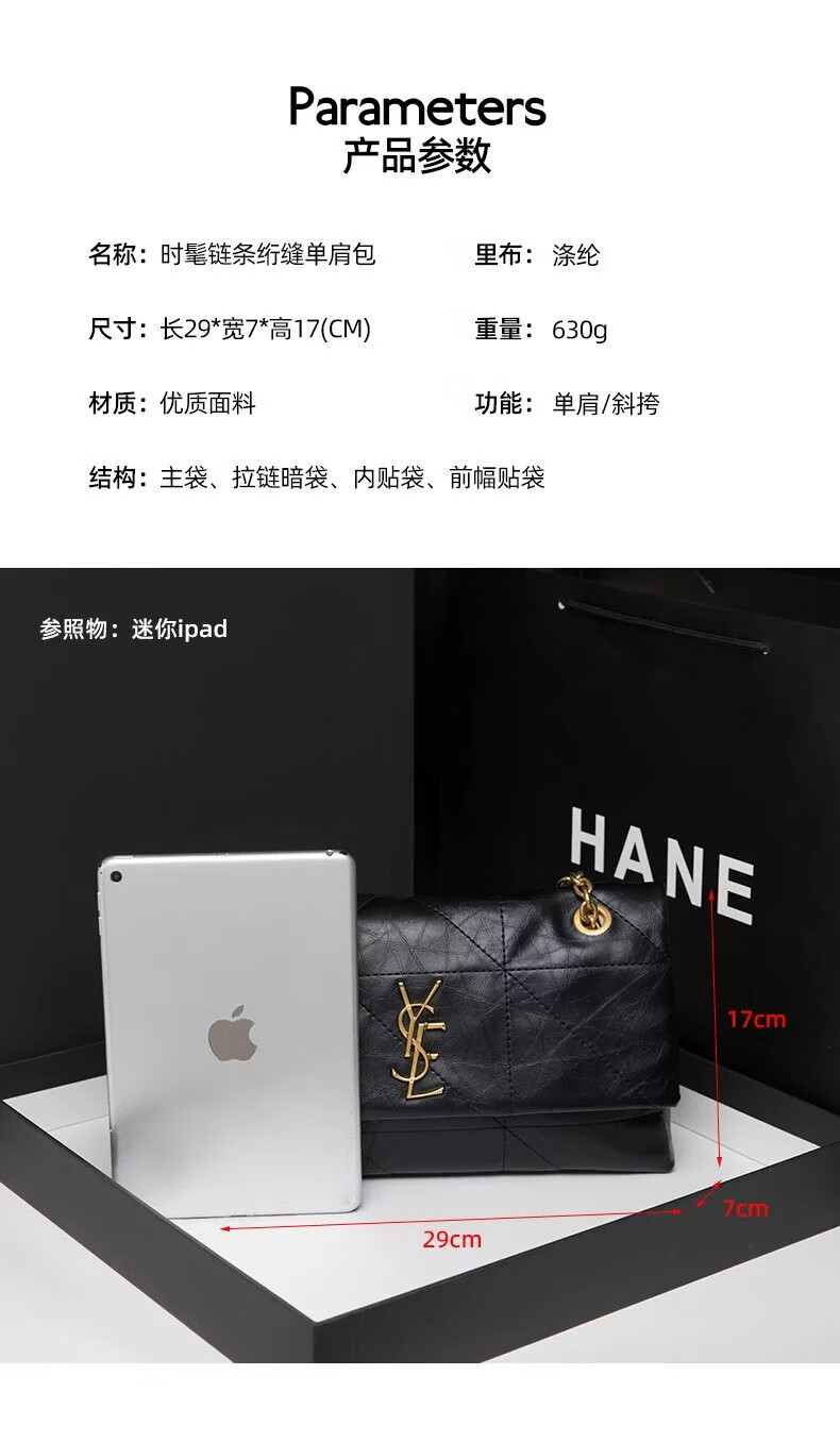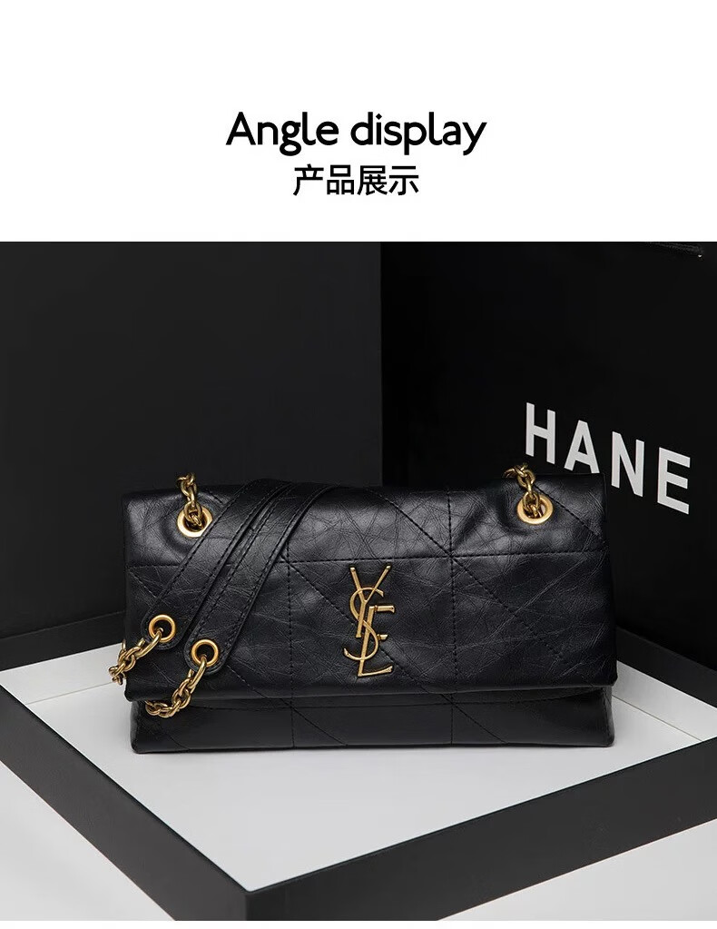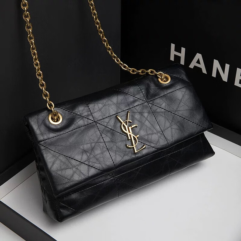复古林杨树链条包包2025菱格新款斜挎包真皮女包单肩腋下女士 黑色现货