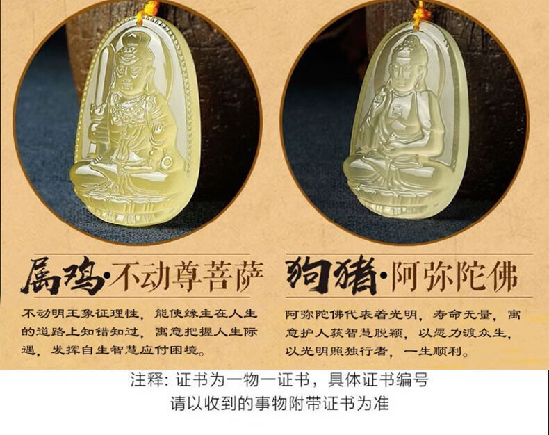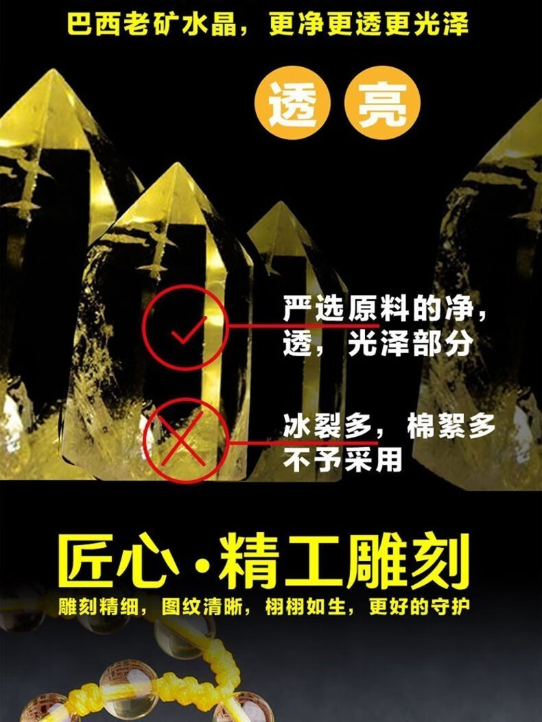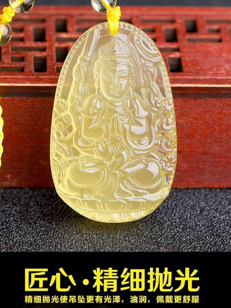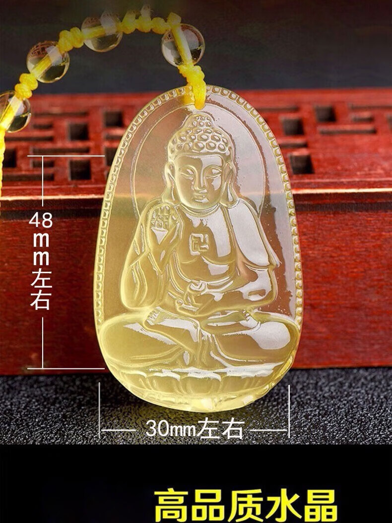 初缘 天然黄水晶吊坠男女款本命佛生肖守护神项链本命年礼物送男女友 钥匙扣款【下单请备注生肖】