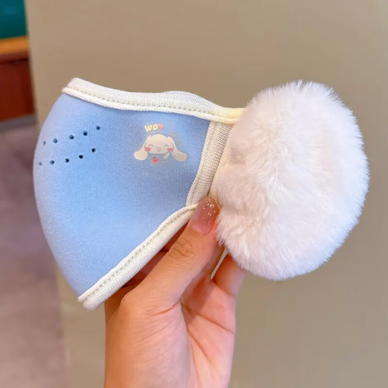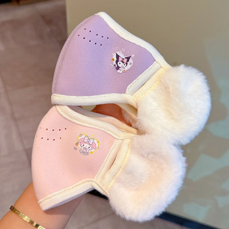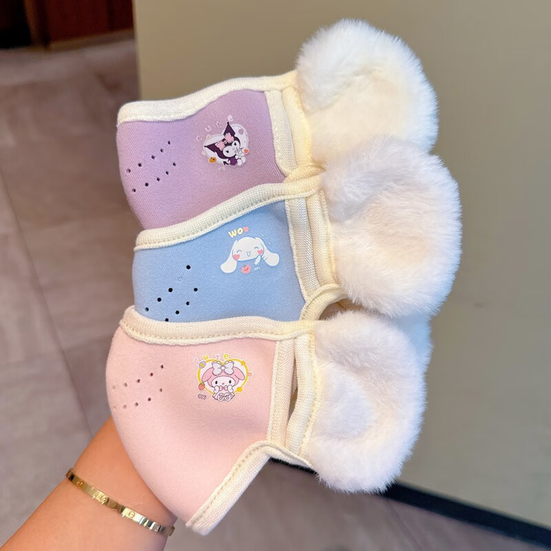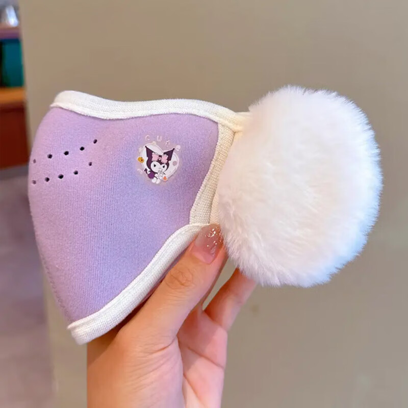 【甄选厂家】儿童冬季护耳口罩一体男童女童保暖防风耳套学生耳暖 儿童卡通款-紫色库洛米