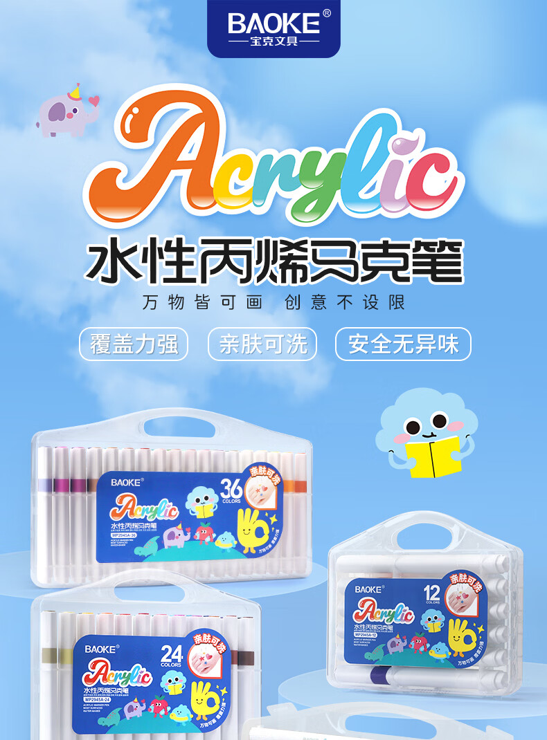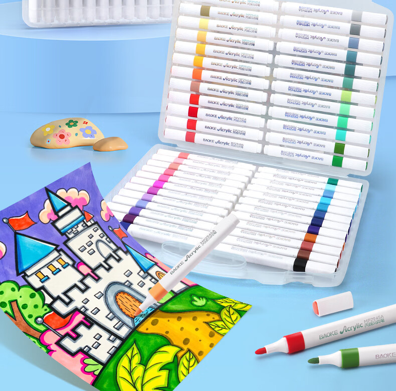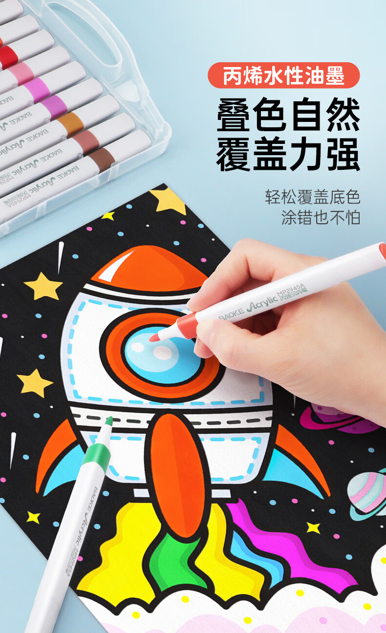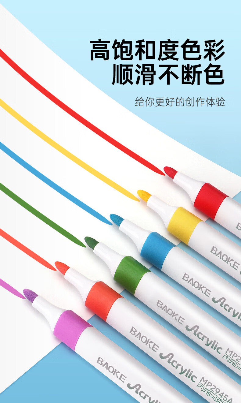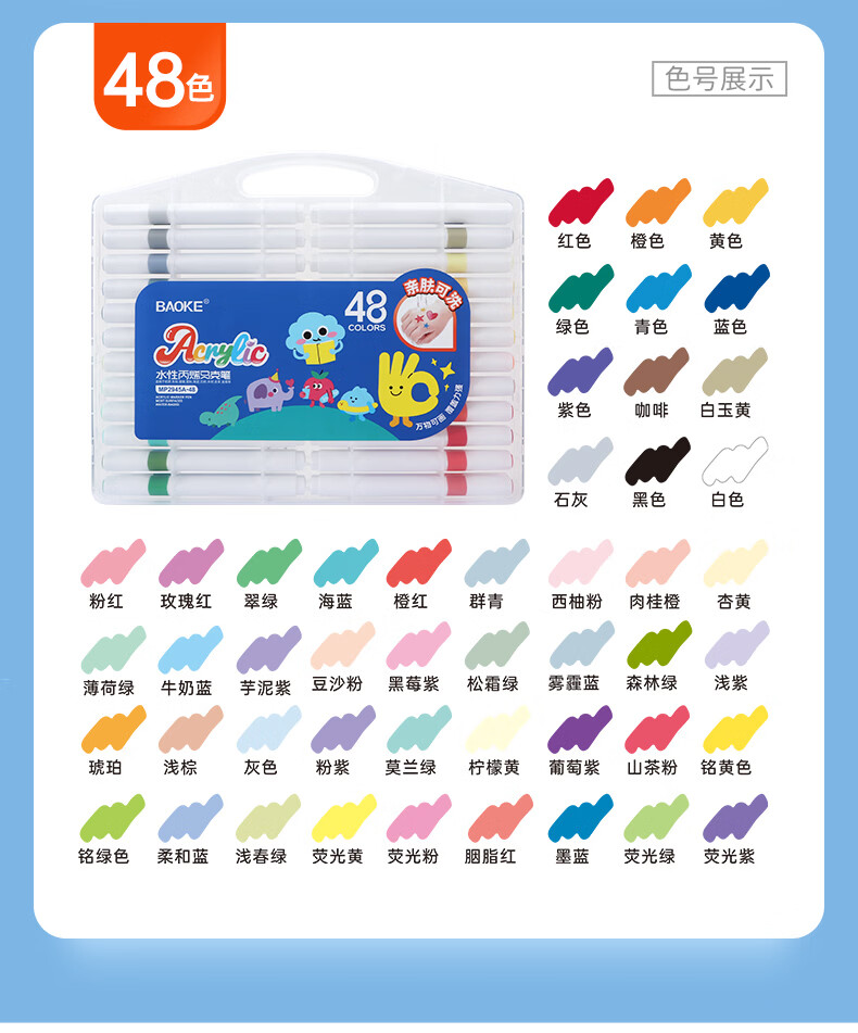 宝克(BAOKE)丙烯马克笔 水性画笔 美术生专用手绘画笔 DIY、涂鸦、手账、笔记、贺卡多功能填色 【亲肤可洗】48色套装 丙烯水性马克笔 彩绘套装