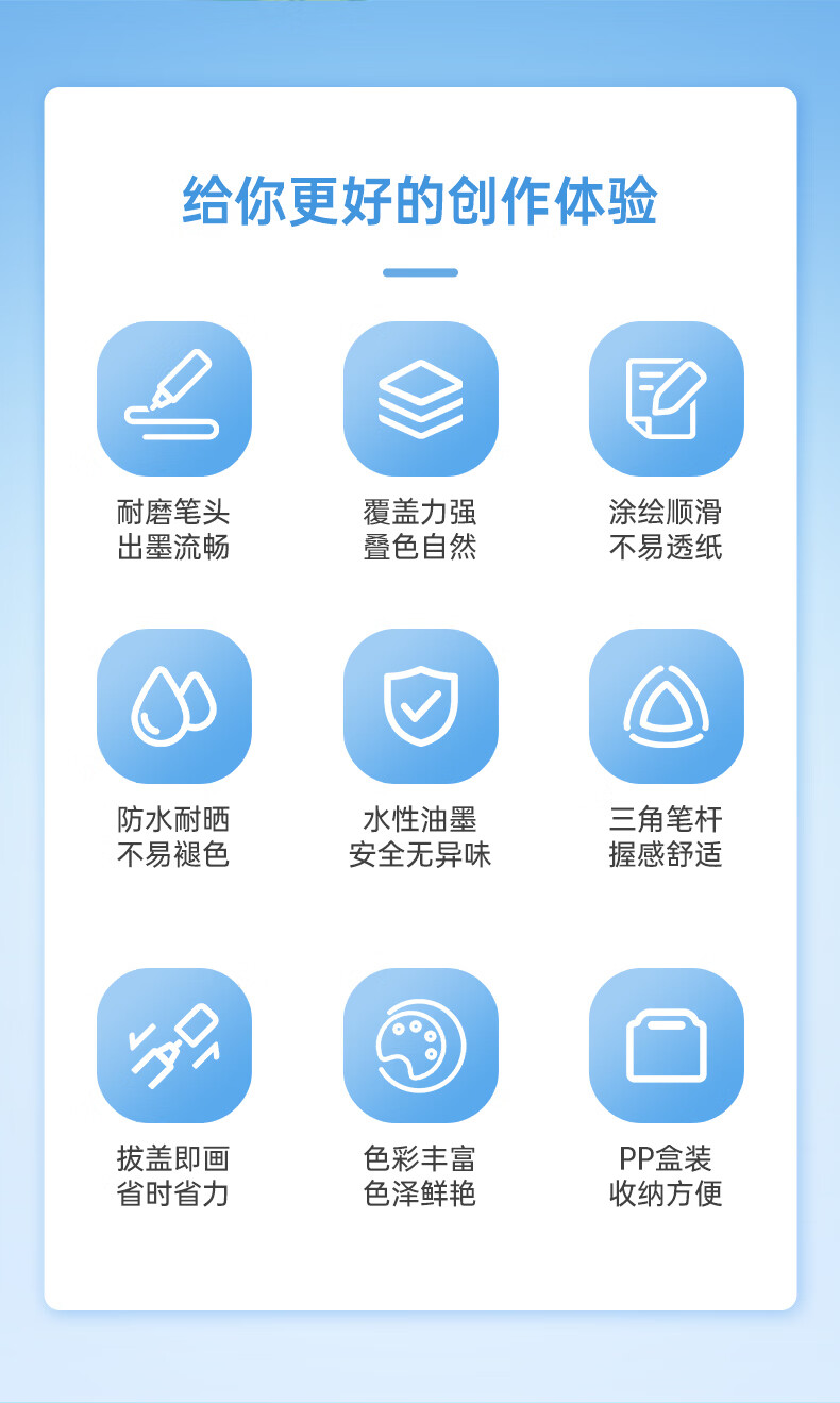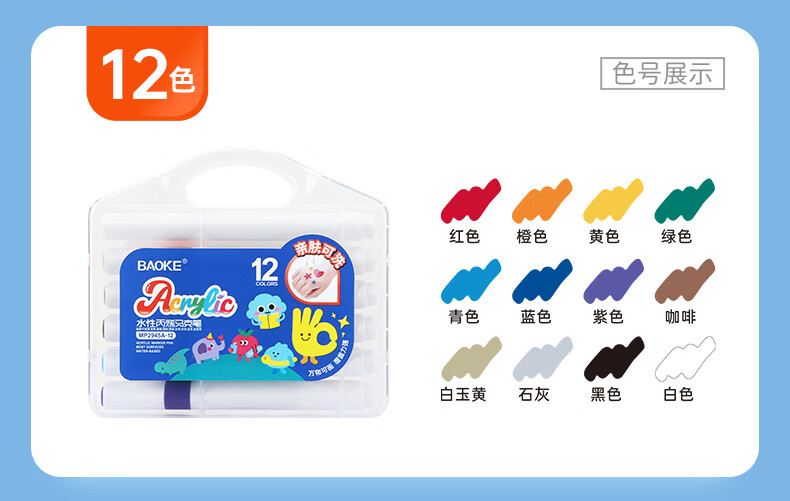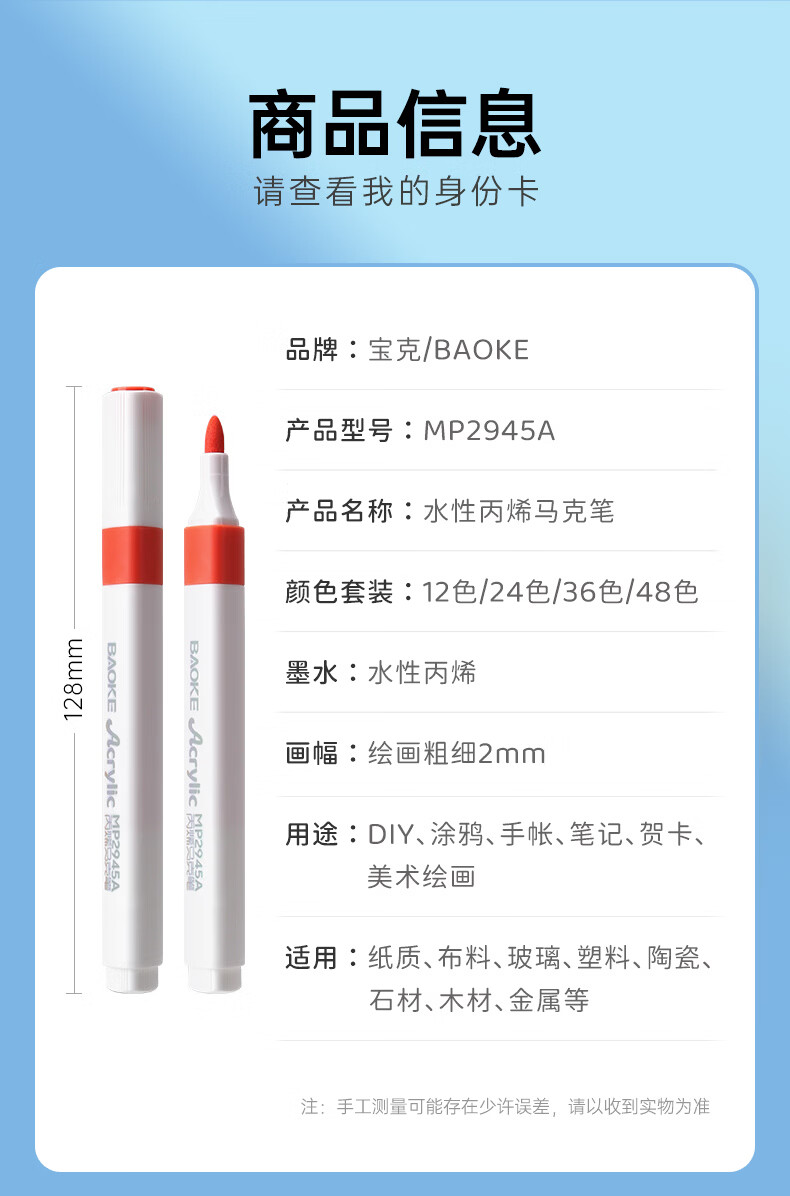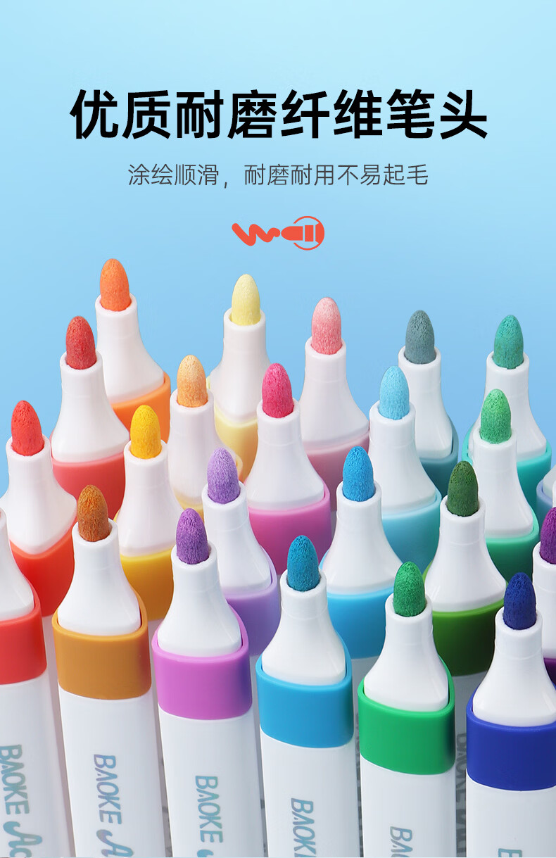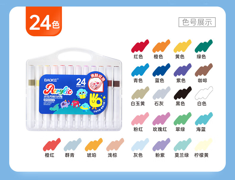 宝克(BAOKE)丙烯马克笔 水性画笔 美术生专用手绘画笔 DIY、涂鸦、手账、笔记、贺卡多功能填色 【亲肤可洗】48色套装 丙烯水性马克笔 彩绘套装